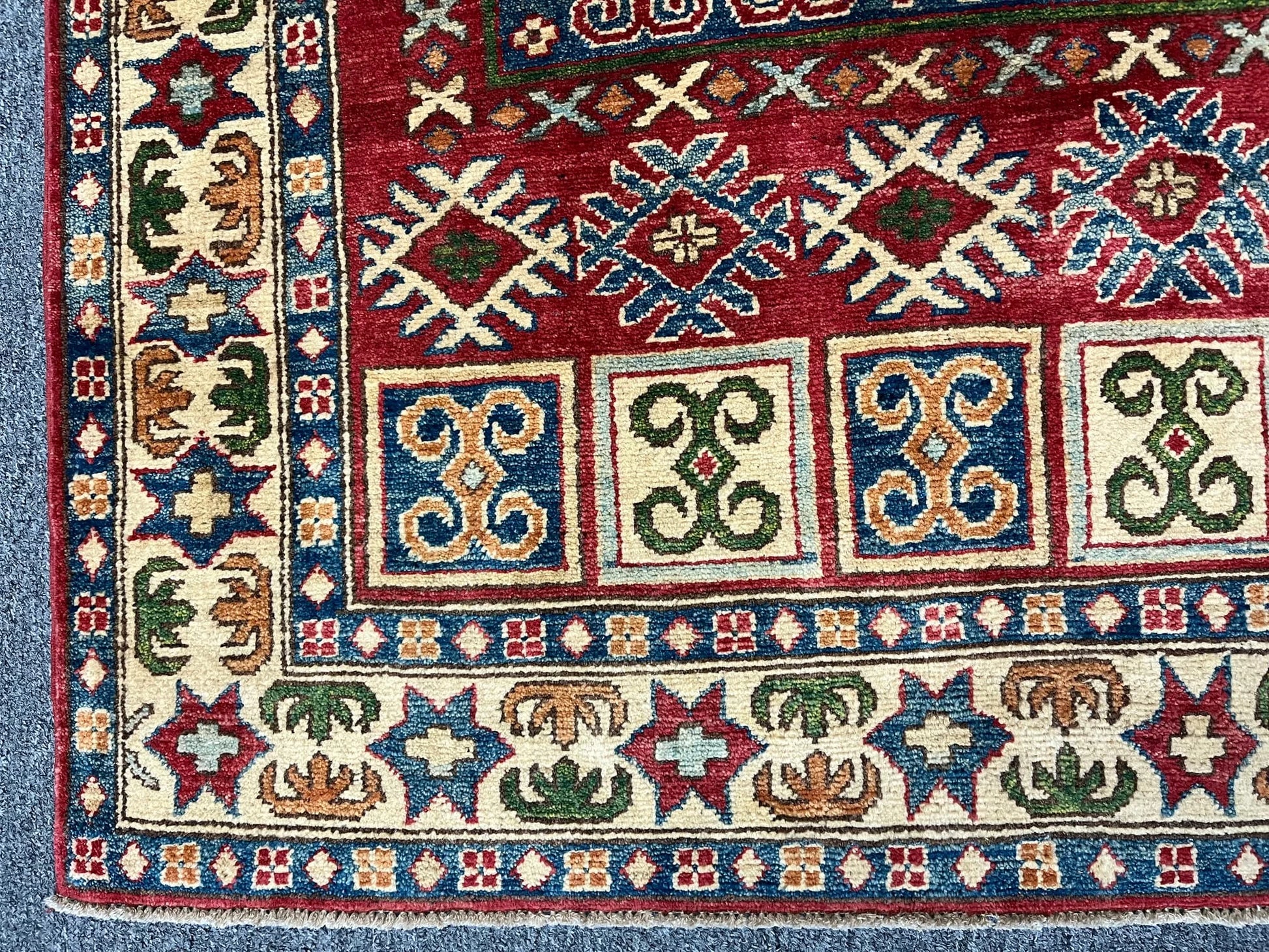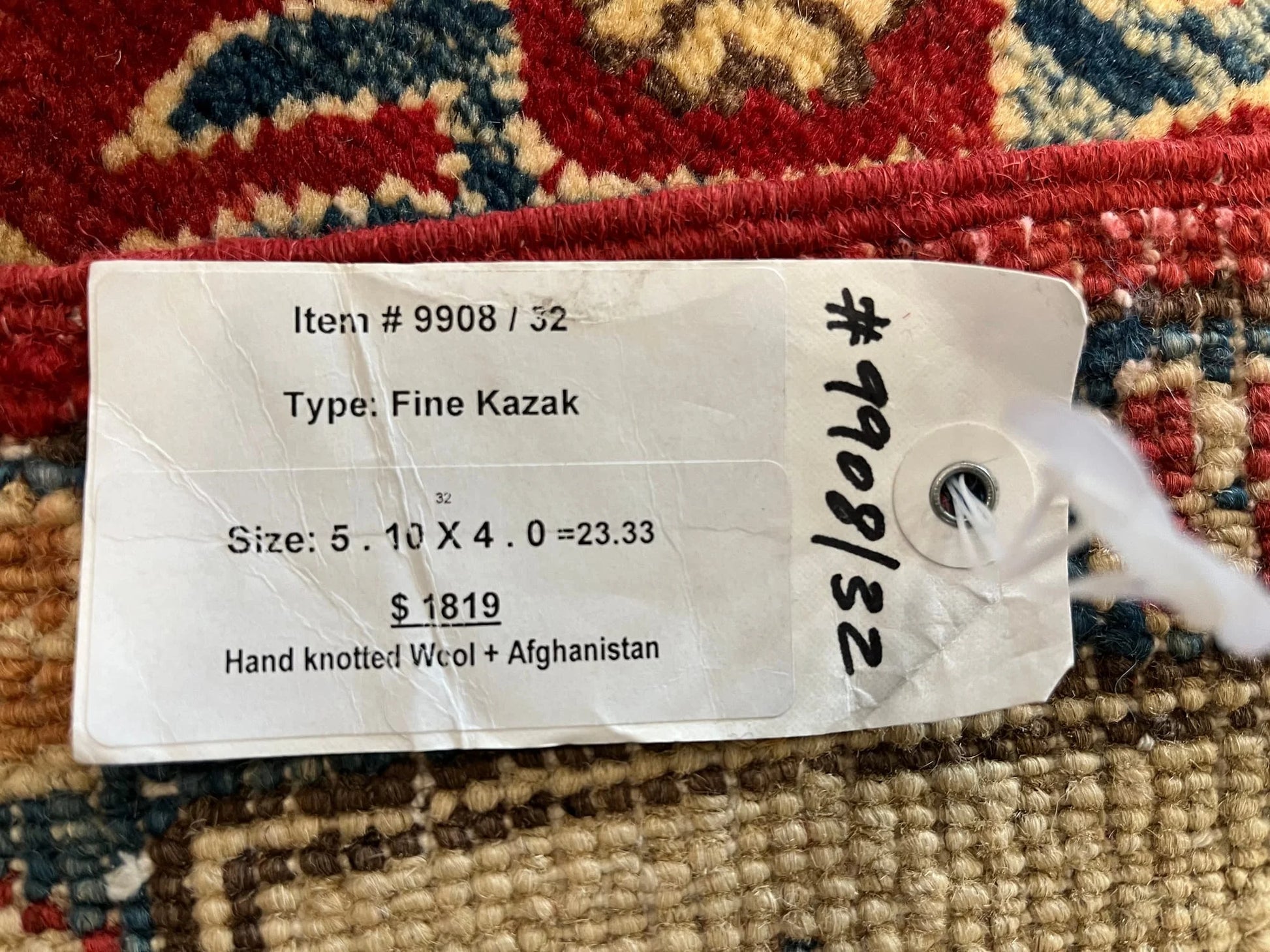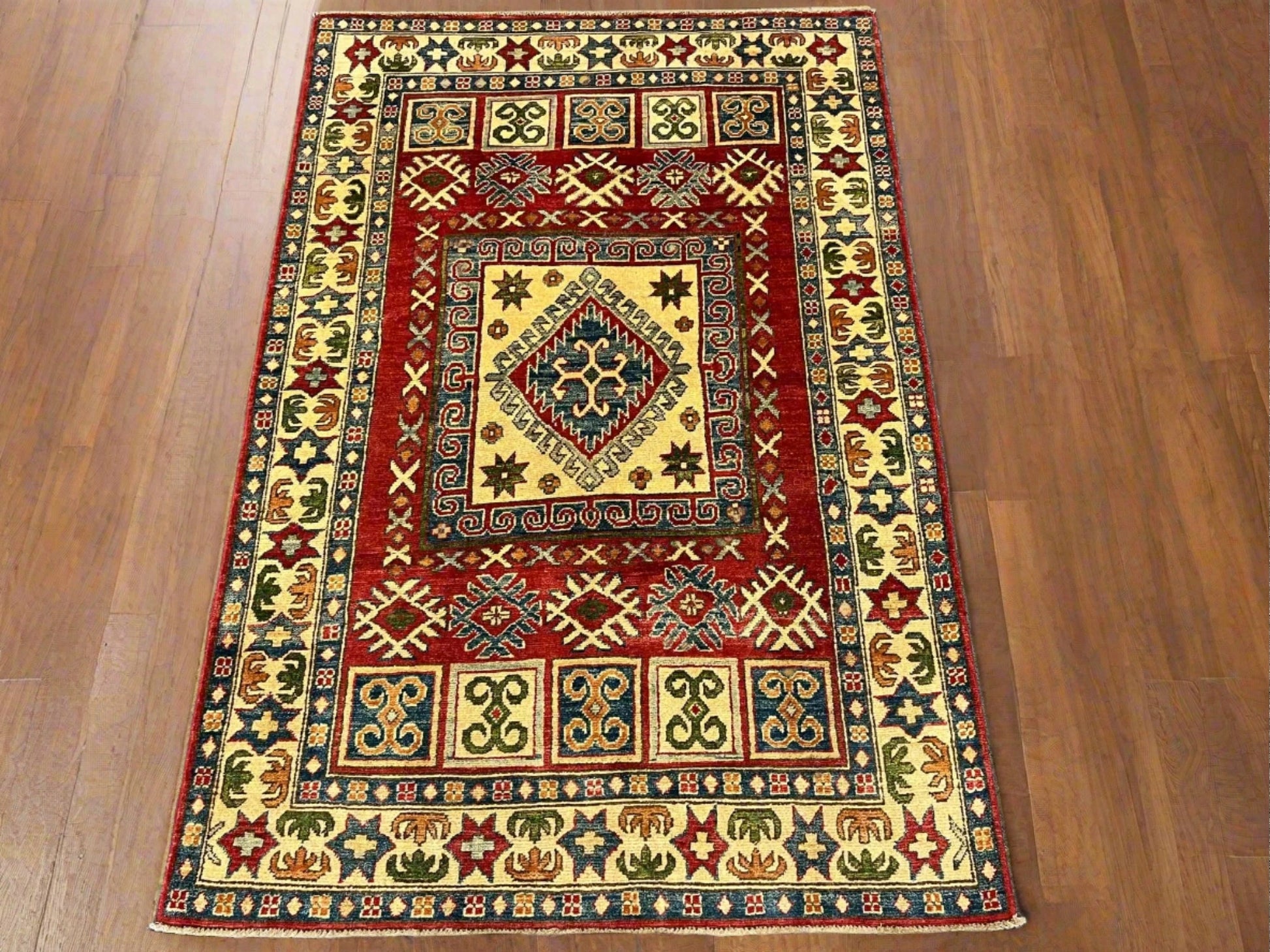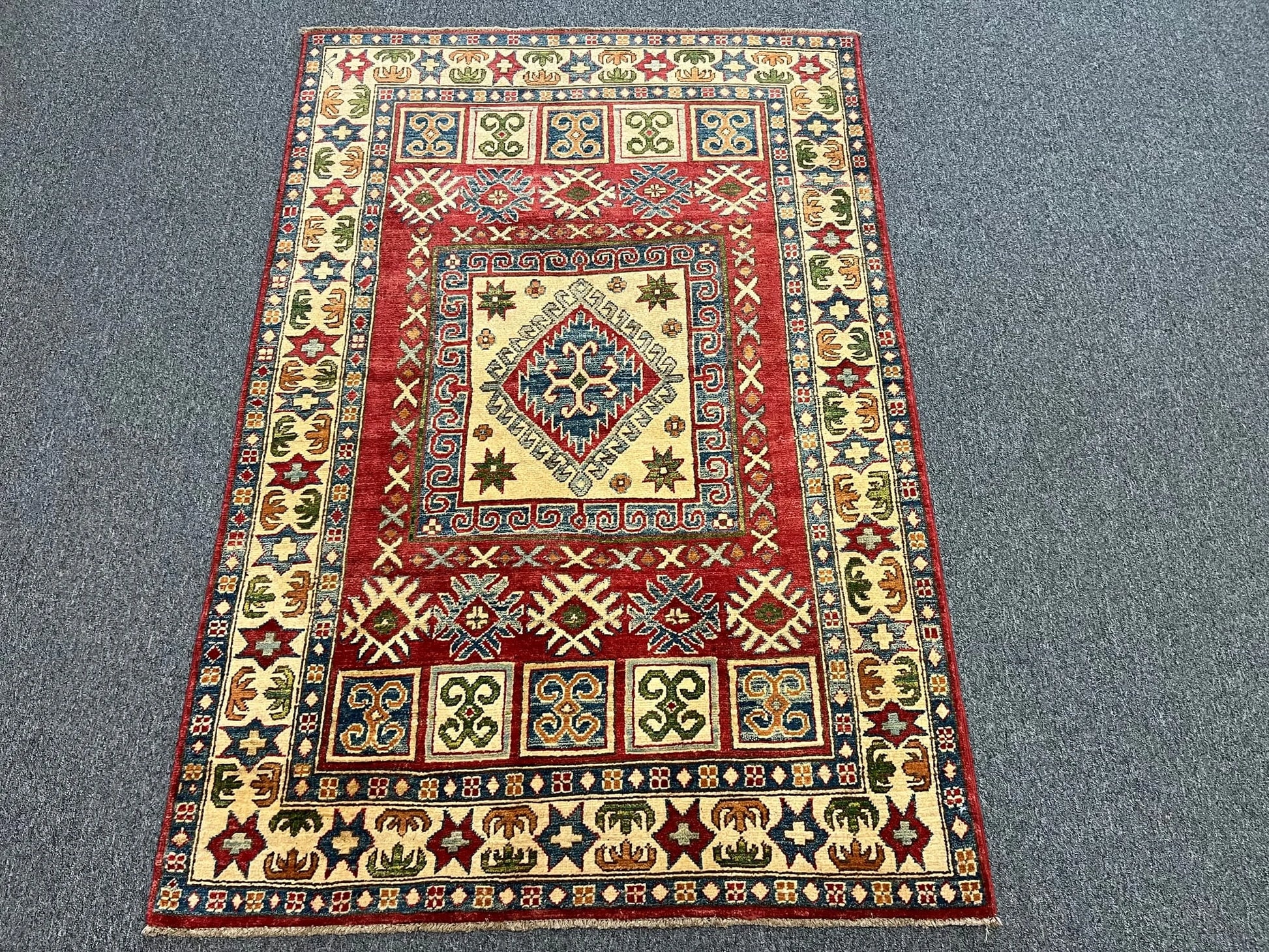 Kazak Geometric Multicolor 4X6 Handmade Wool Rug # 9908
