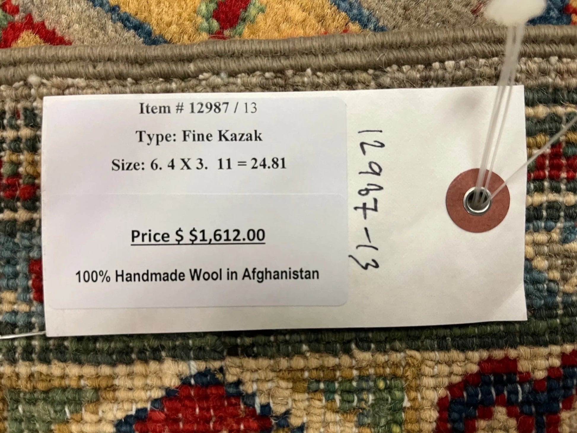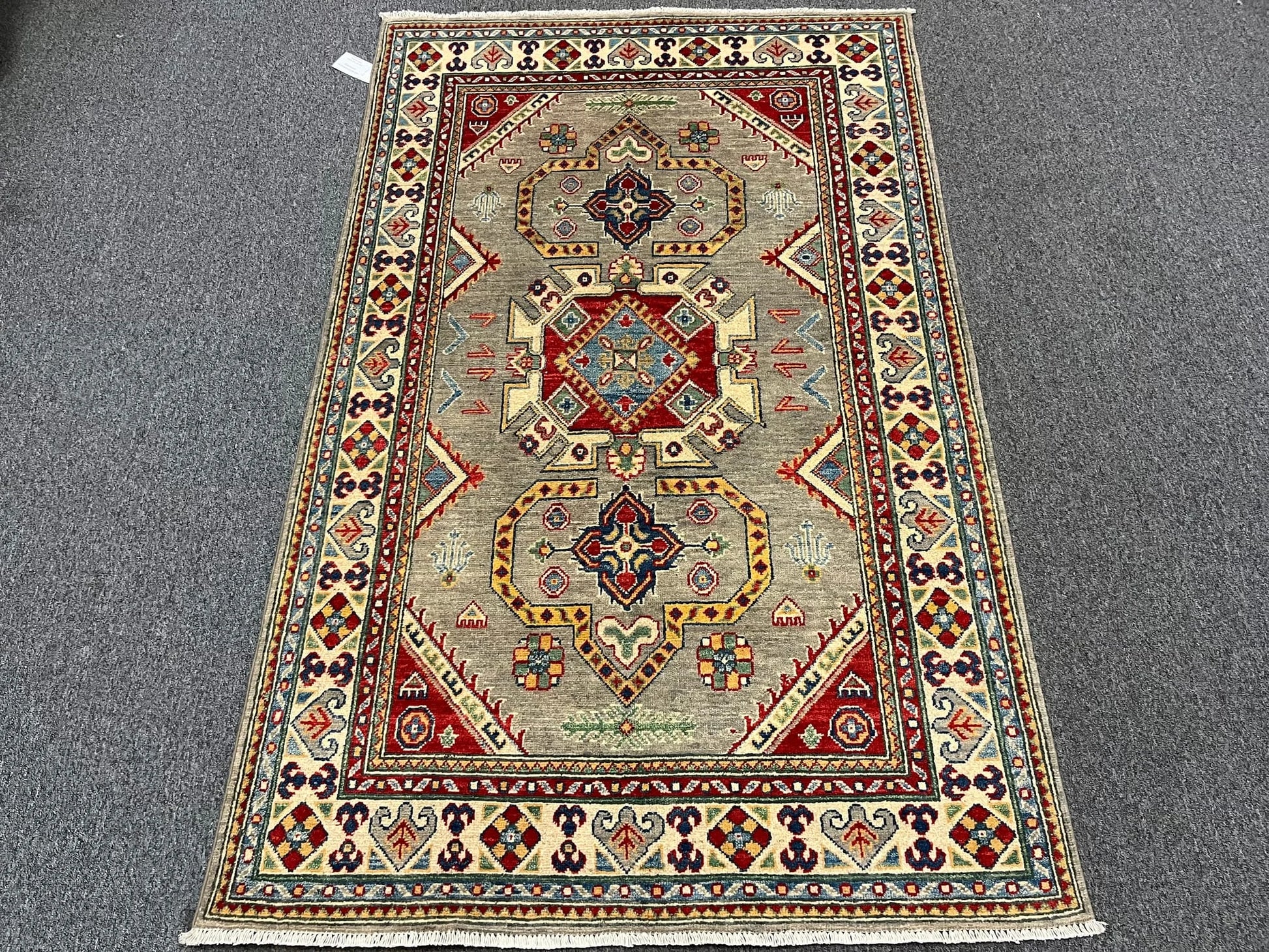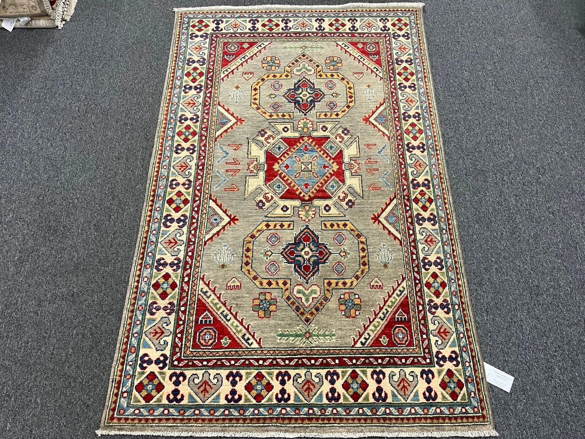 Kazak Gray/Brown Geometric 4X6 Handmade Wool Rug # 12987