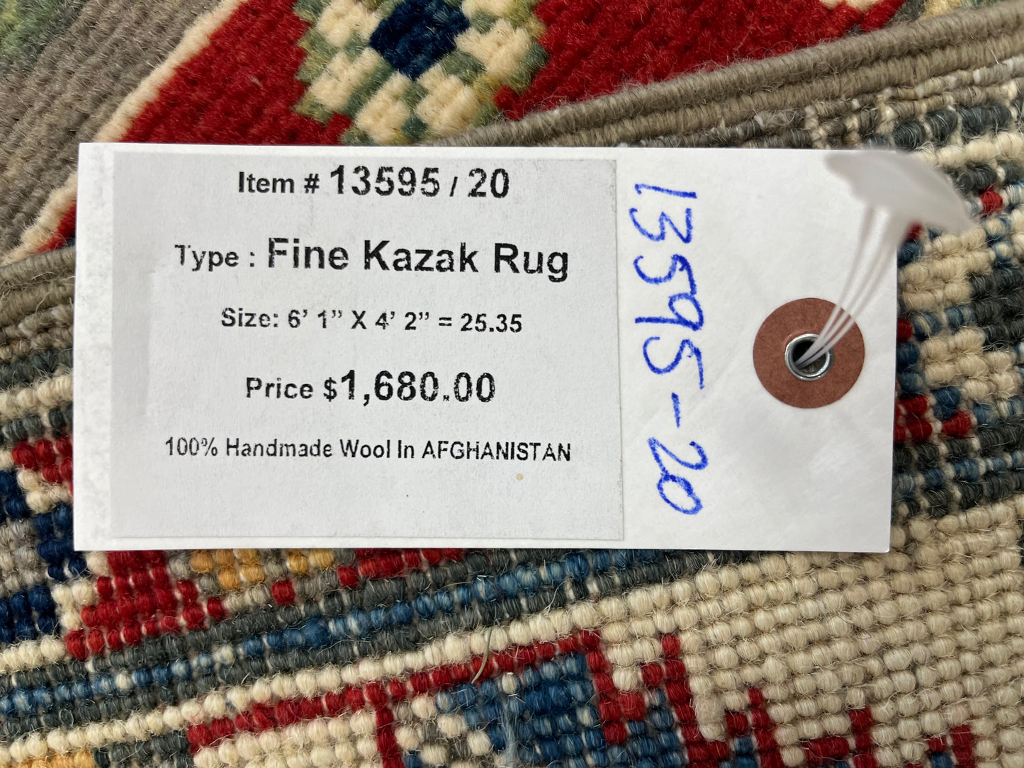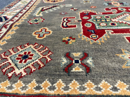 Kazak Gray Geometric 4X6 Handmade Wool Rug # 13595