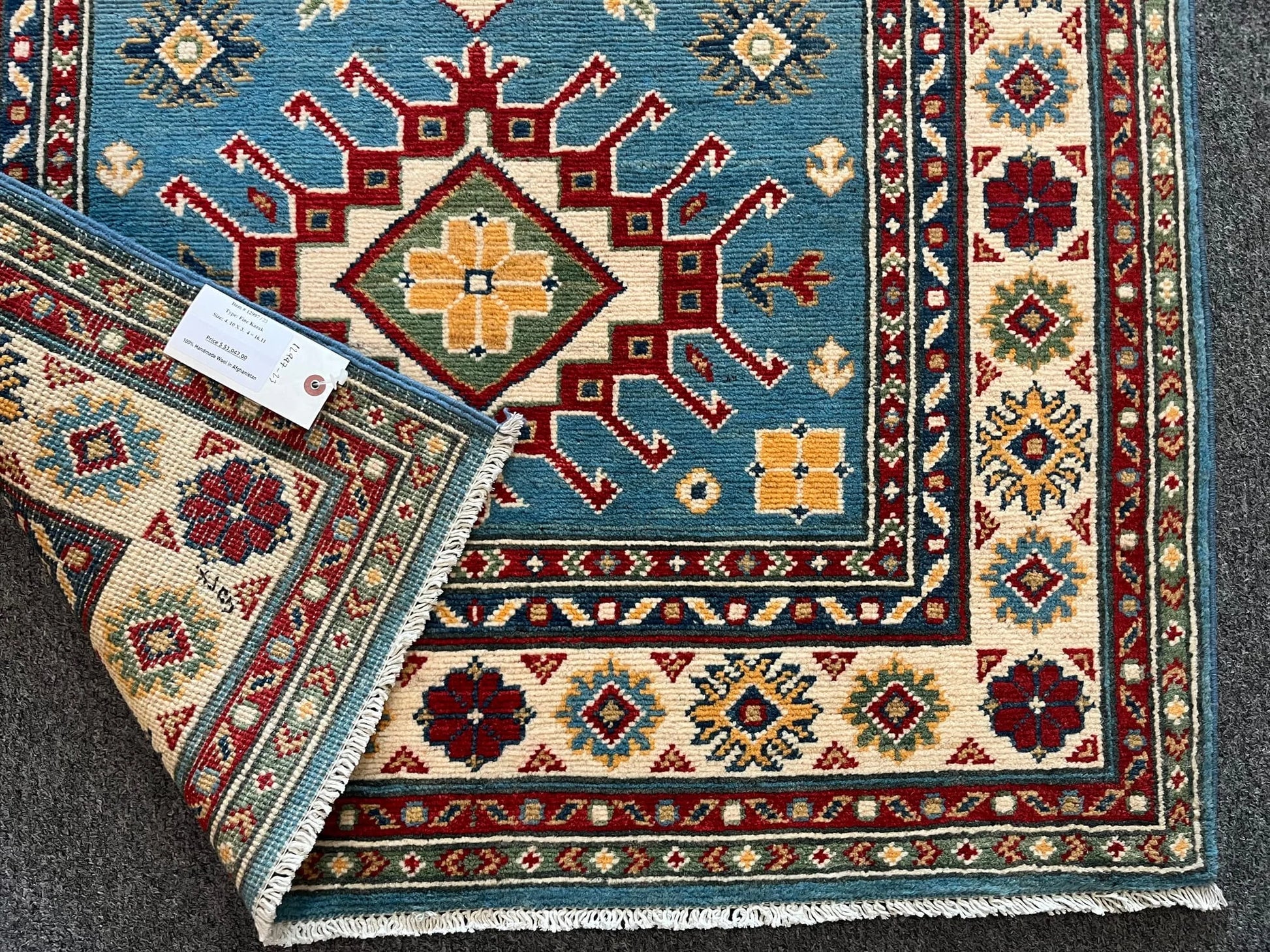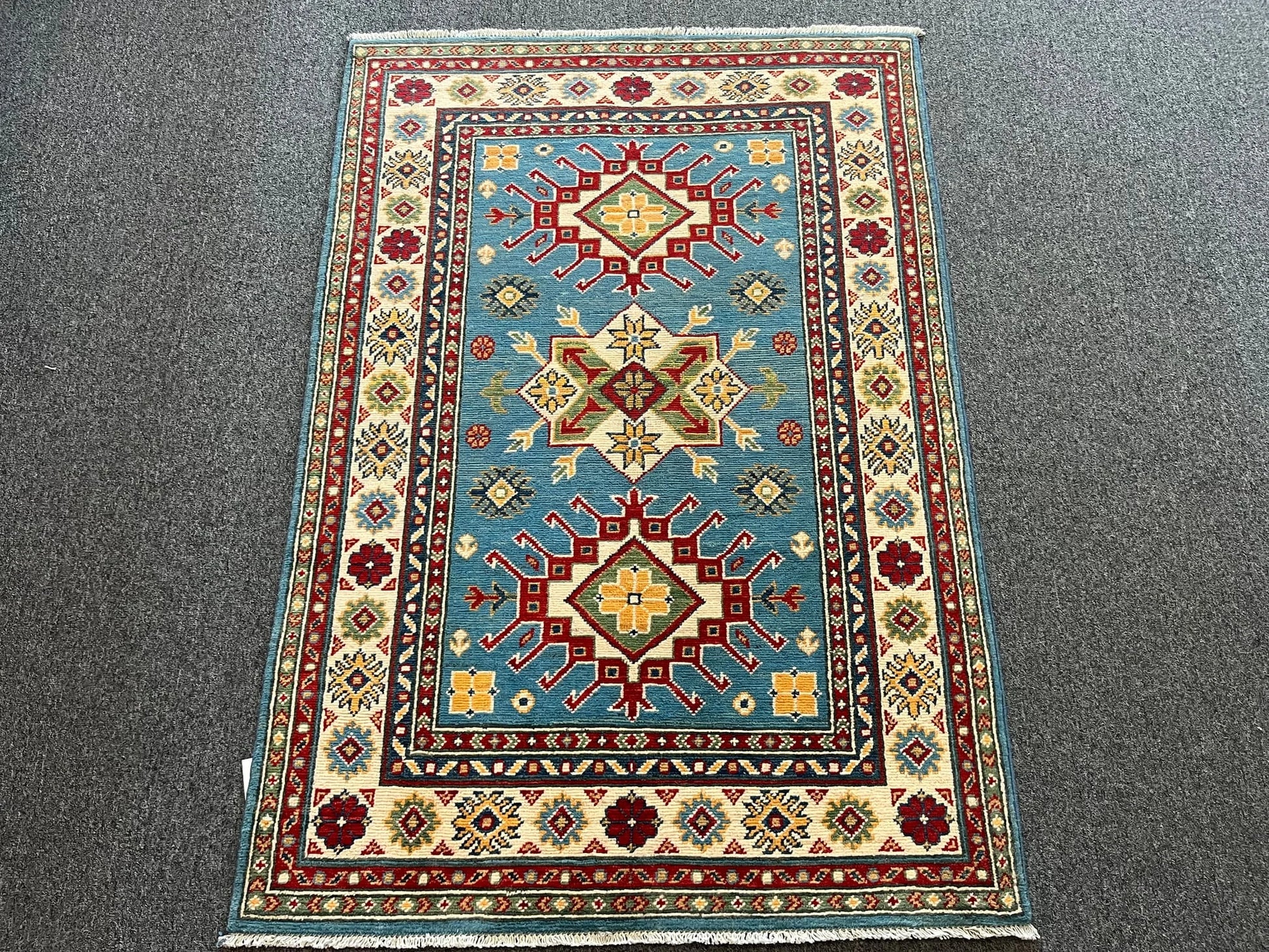Kazak Light Blue 3X5 Handmade Wool Rug # 12997