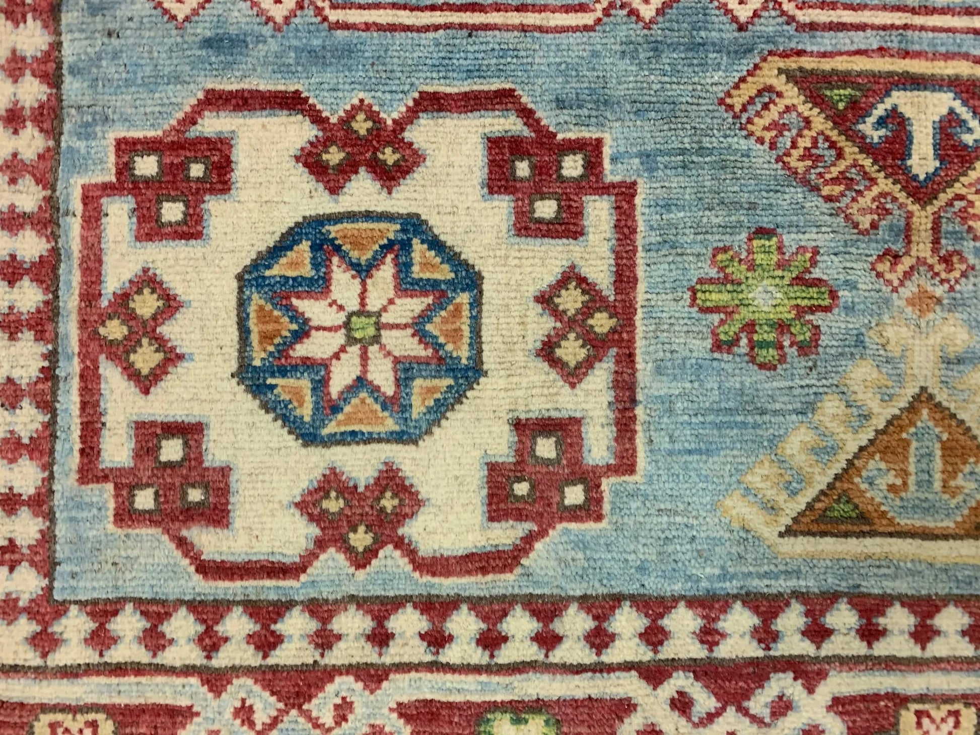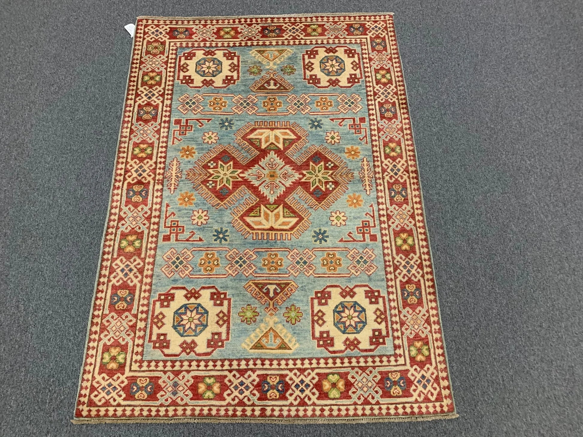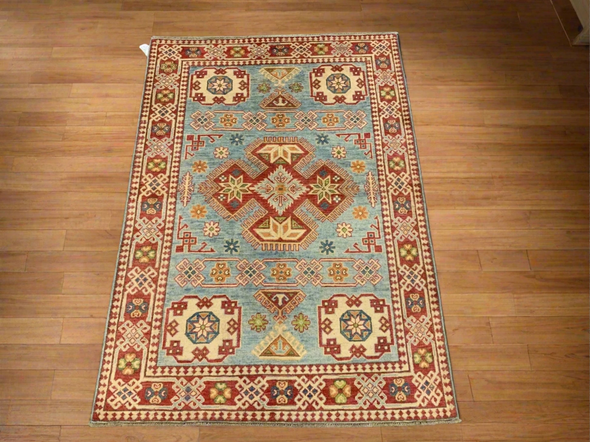 Kazak Light Blue 4X6 Handmade Wool Rug # 9492