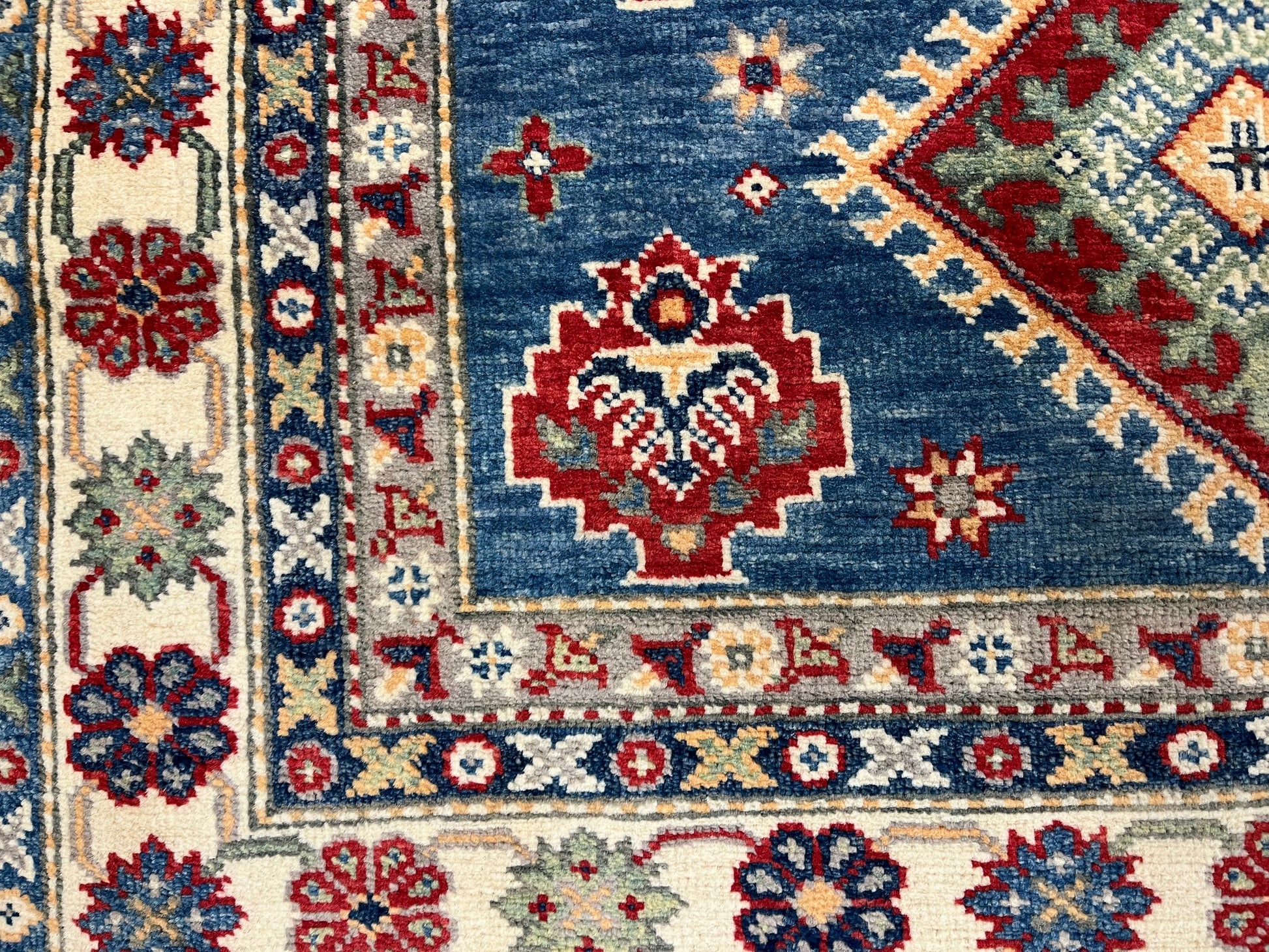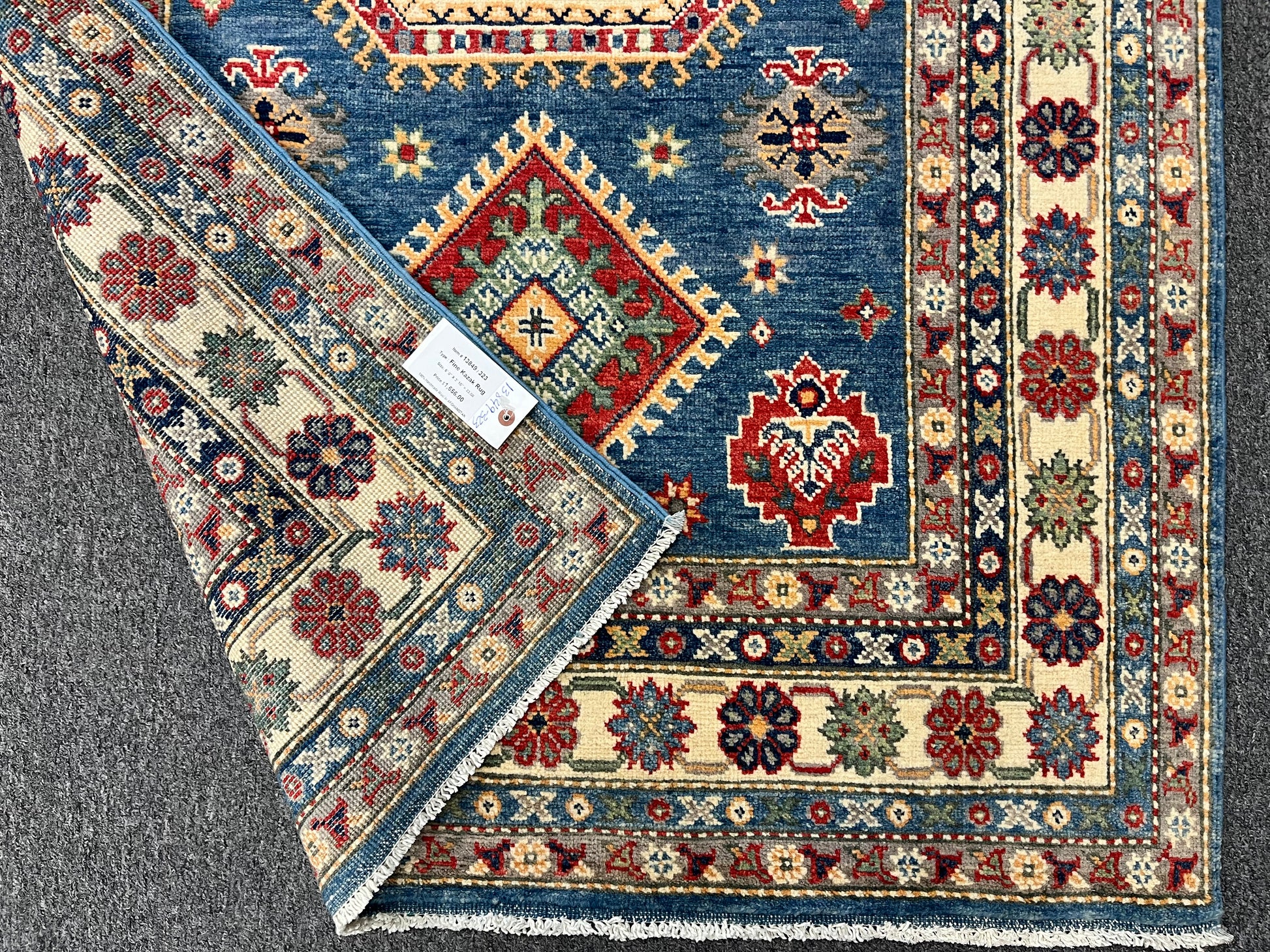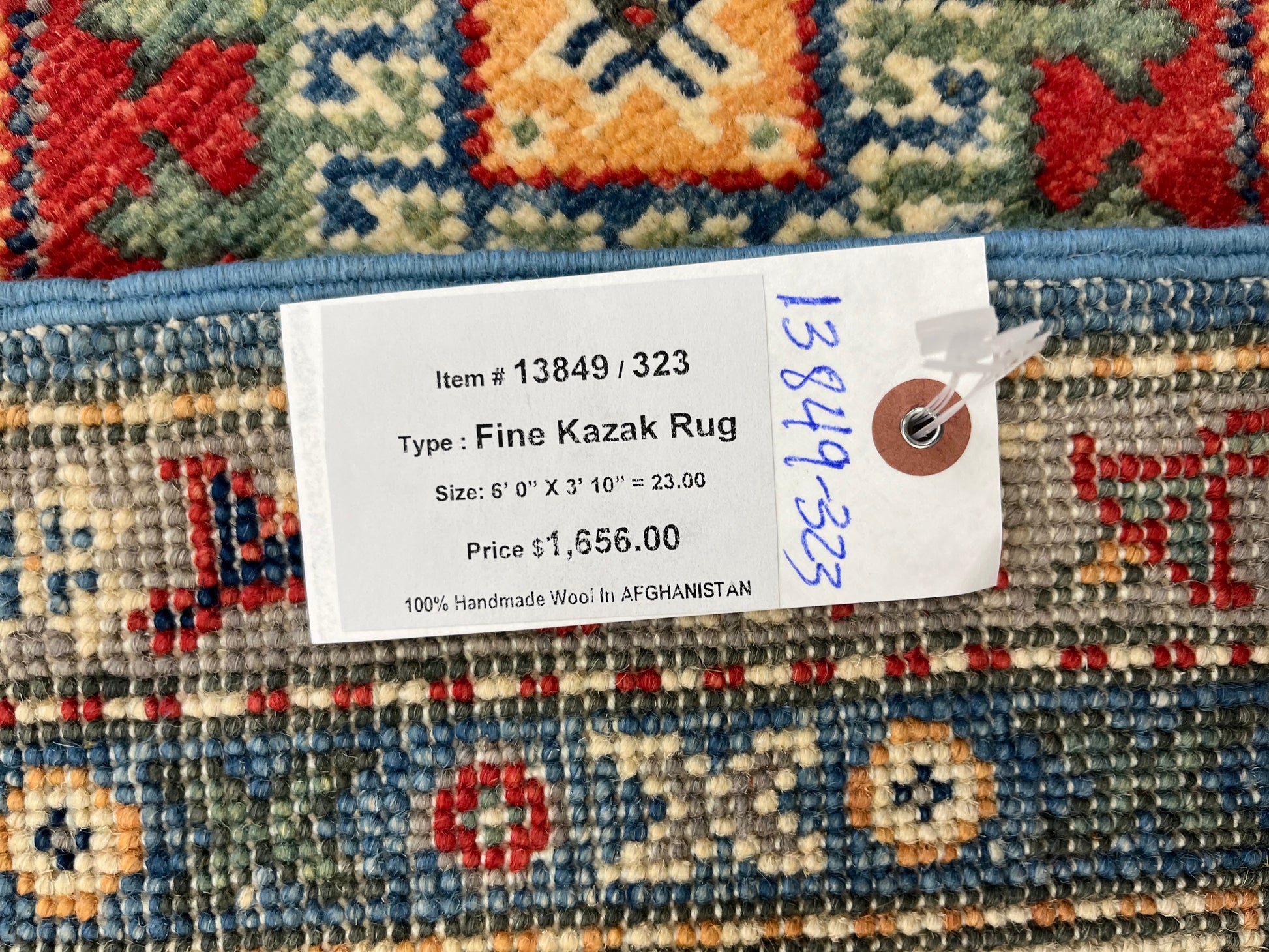 Kazak Light Blue 4X6 Wool Handmade Rug # 13849