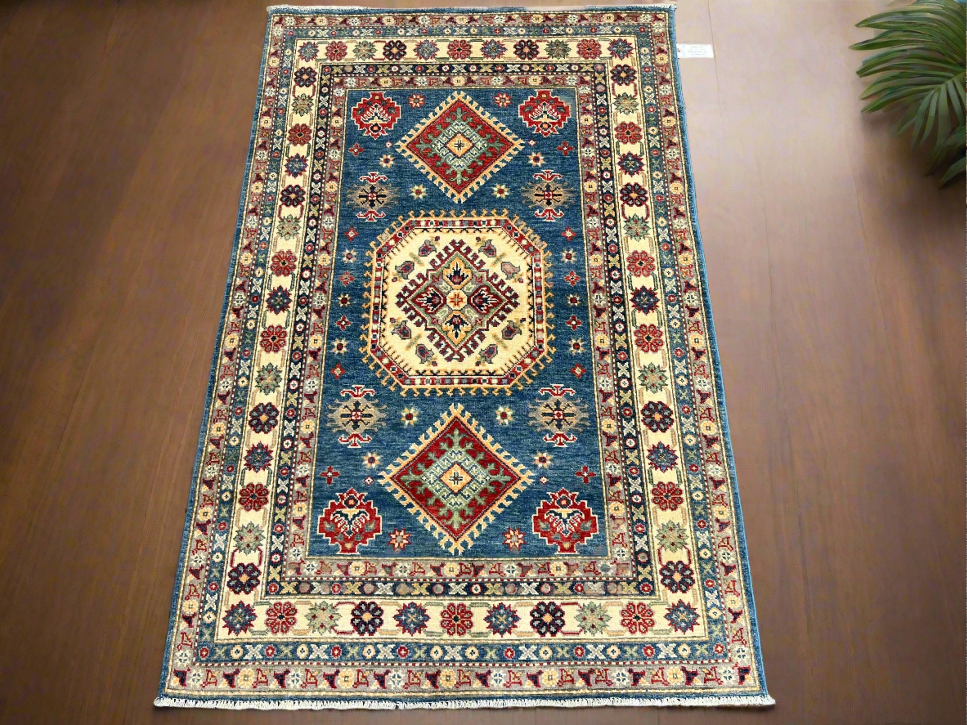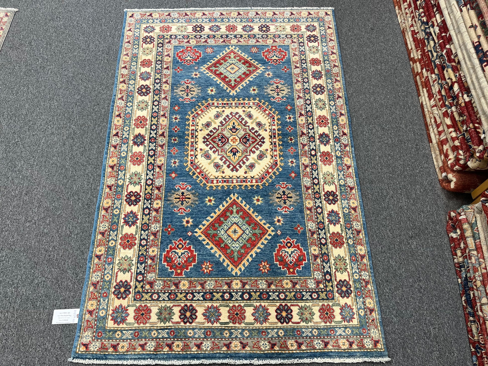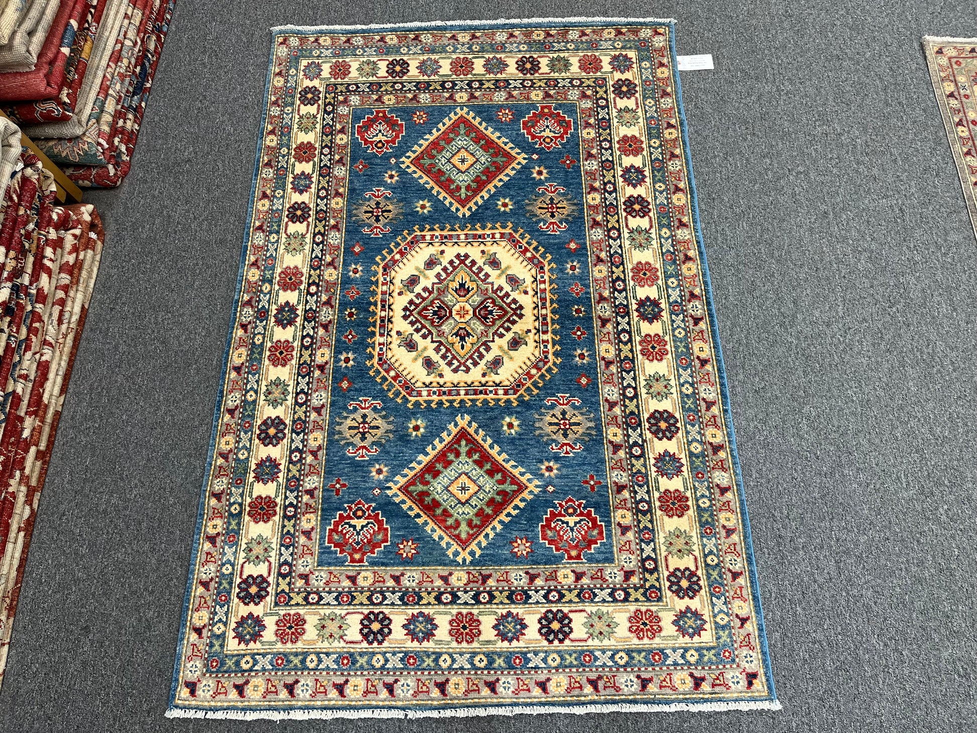 Kazak Light Blue 4X6 Wool Handmade Rug # 13849