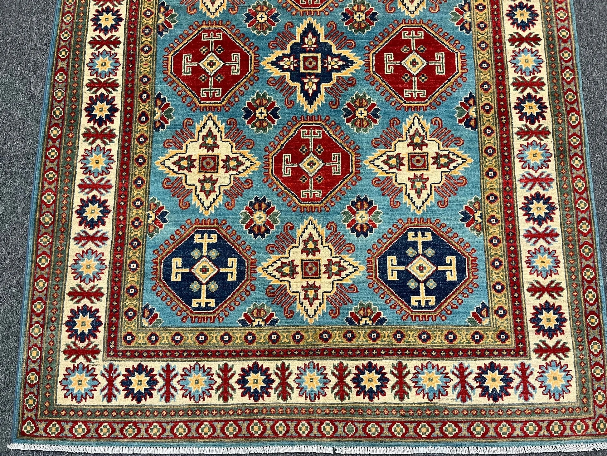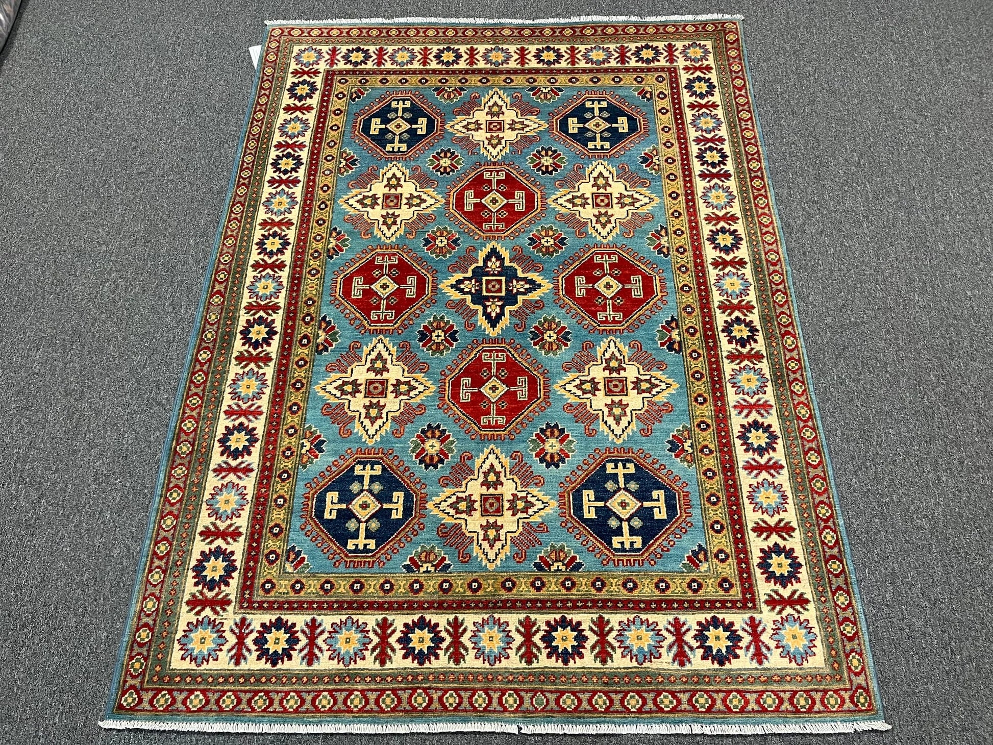 Kazak Light Blue 5X7 Handmade Wool Rug # 13035