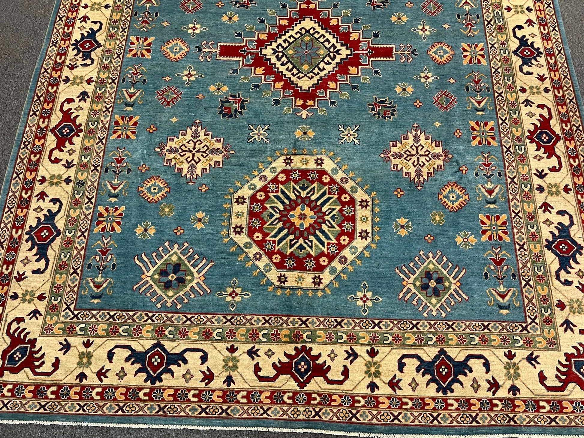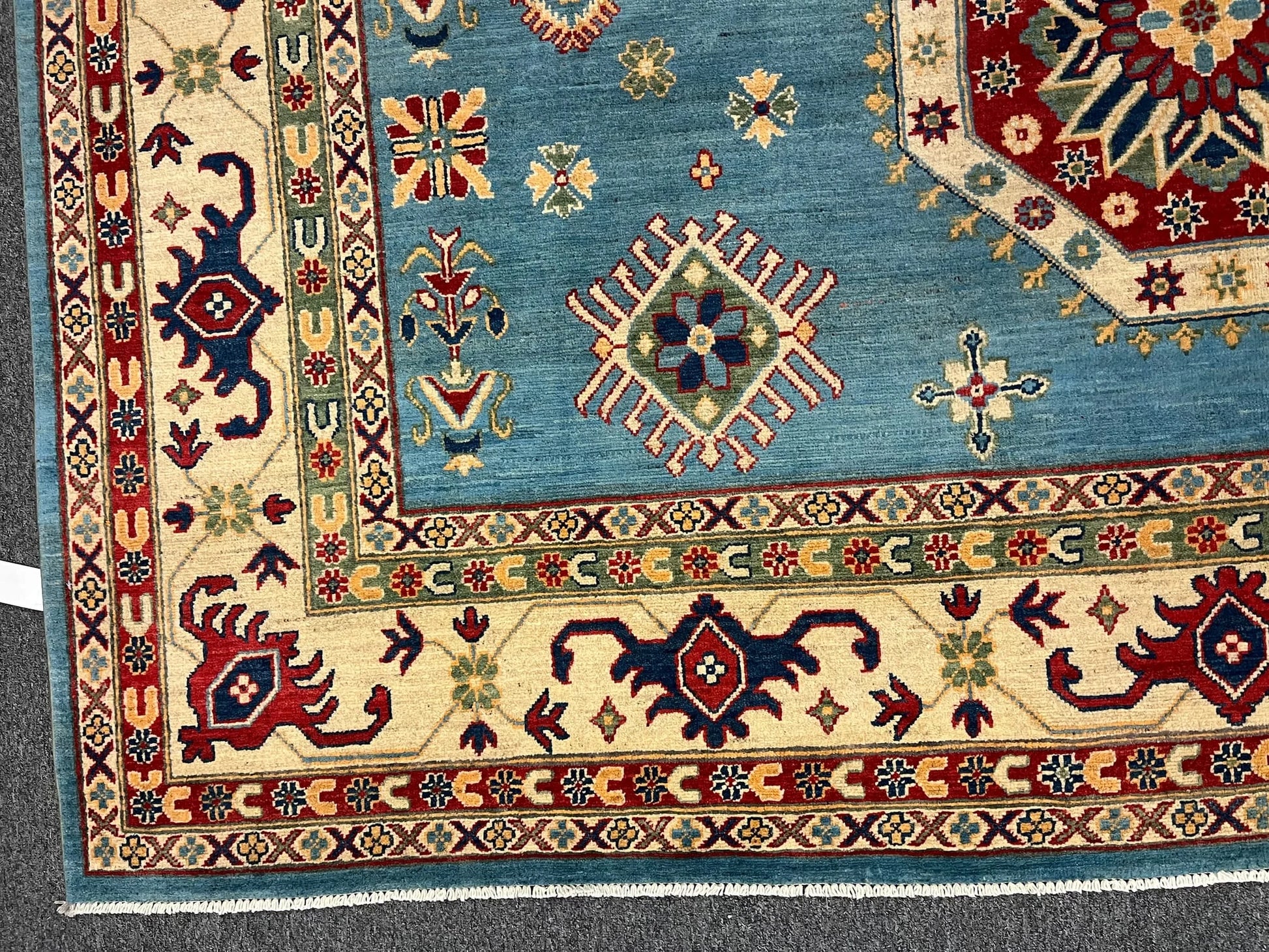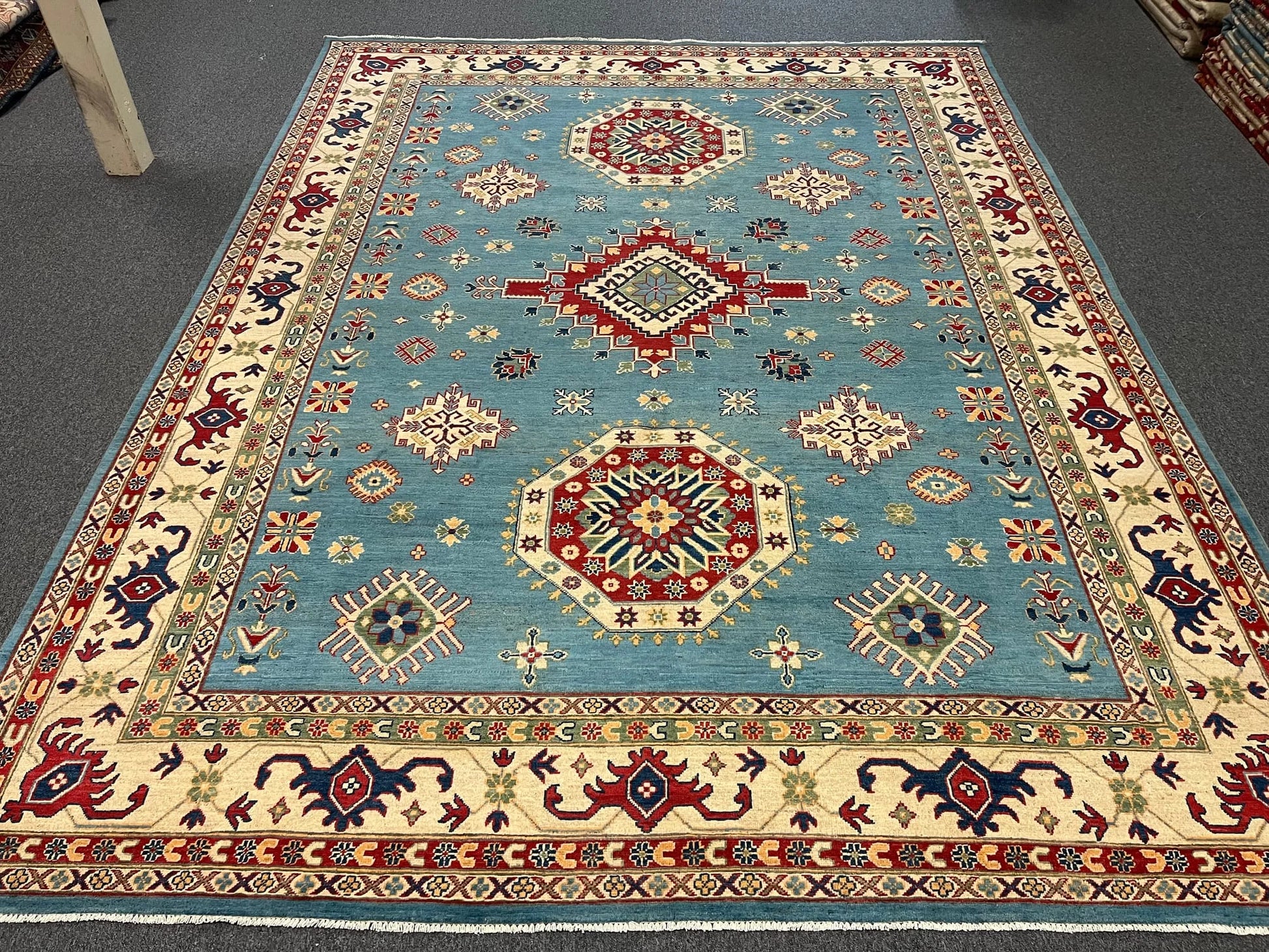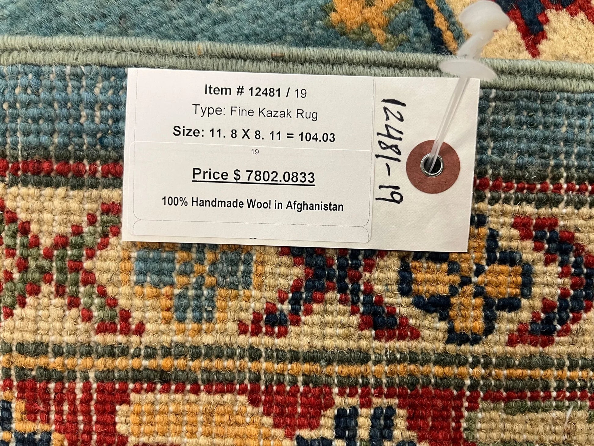 Kazak Light Blue 9X12 Handmade Wool Rug # 12481
