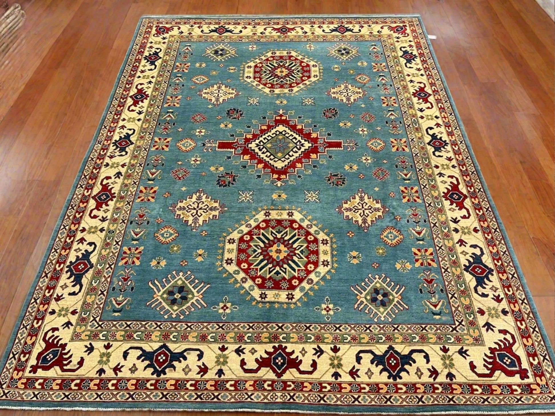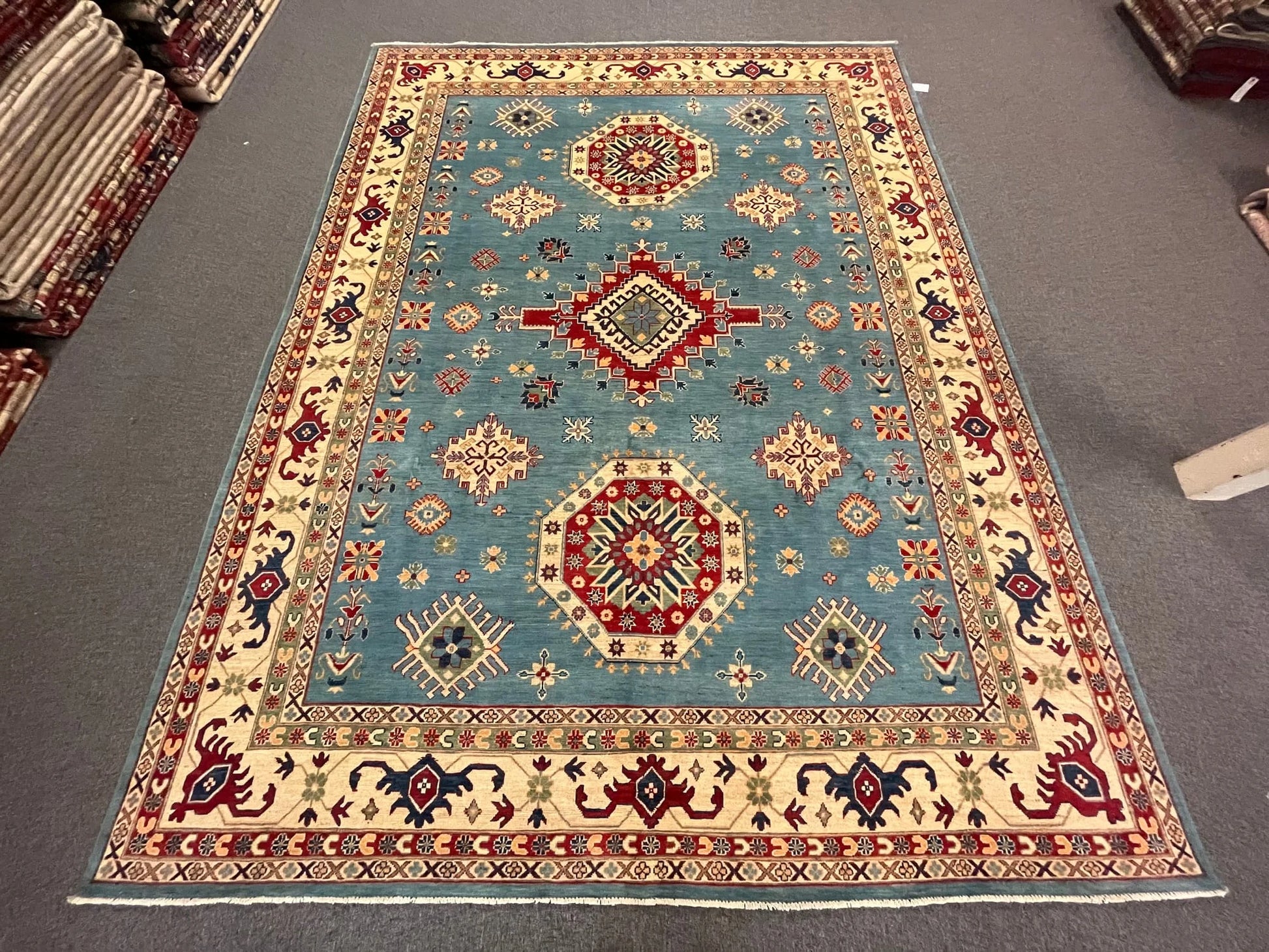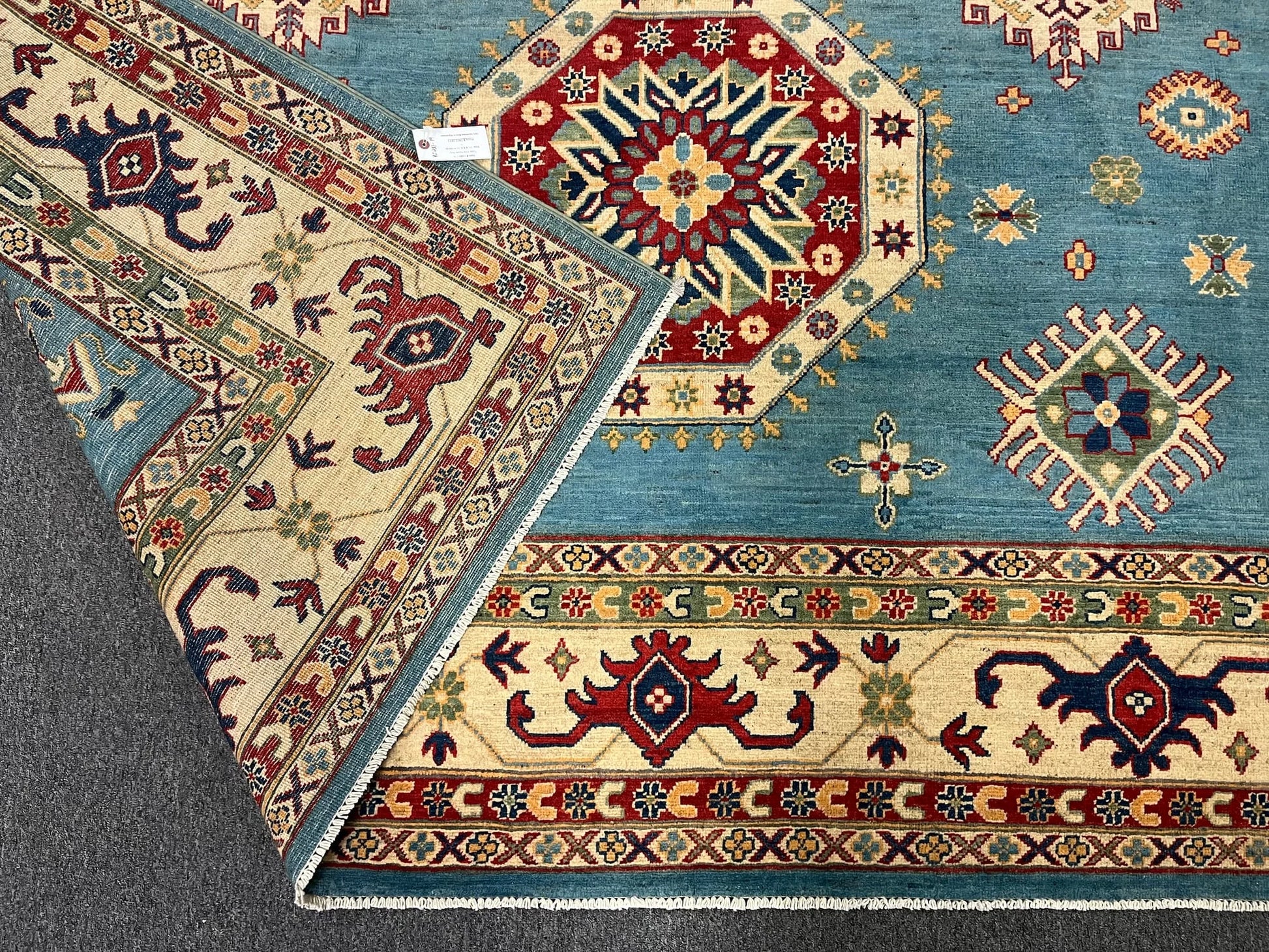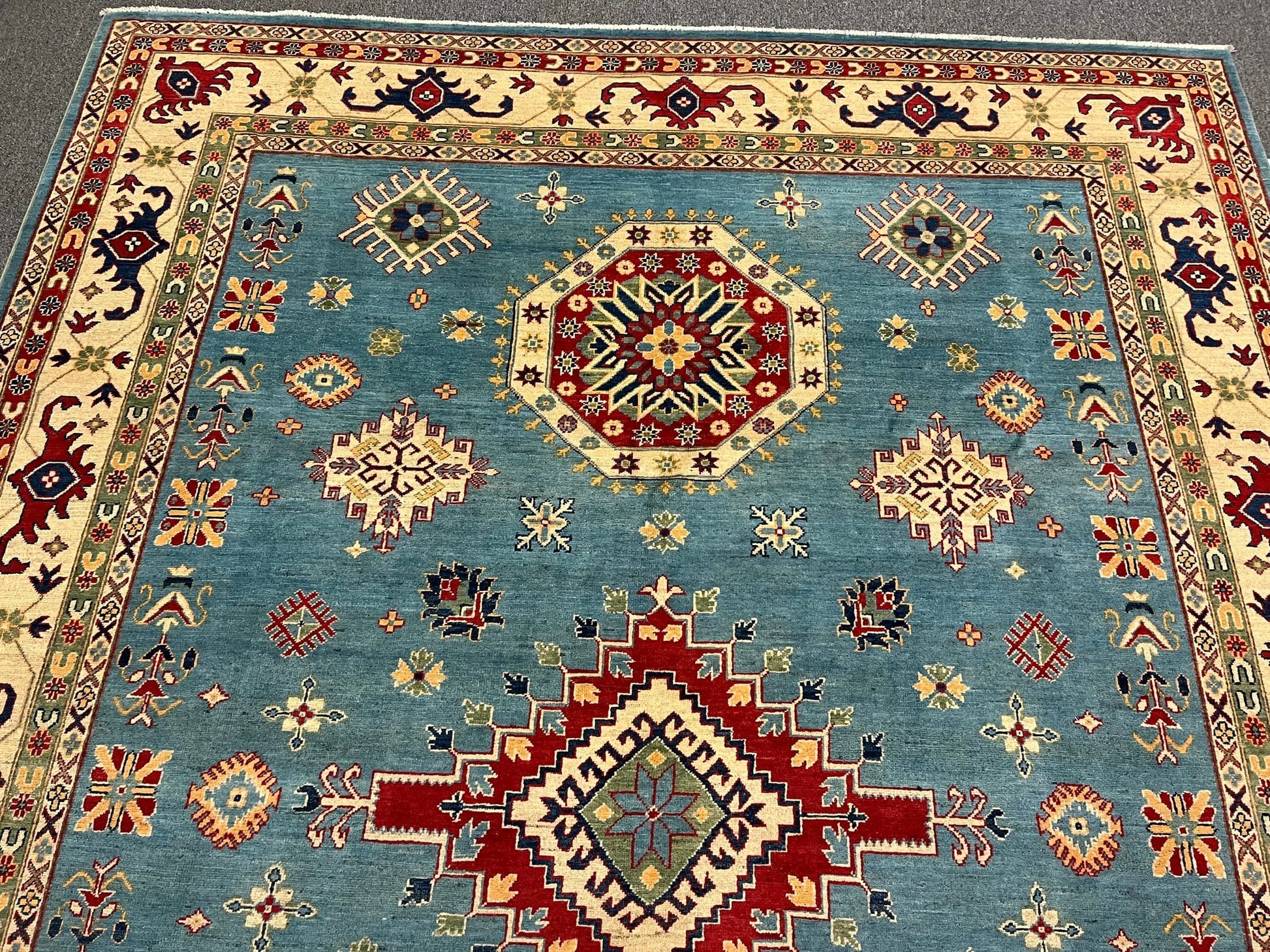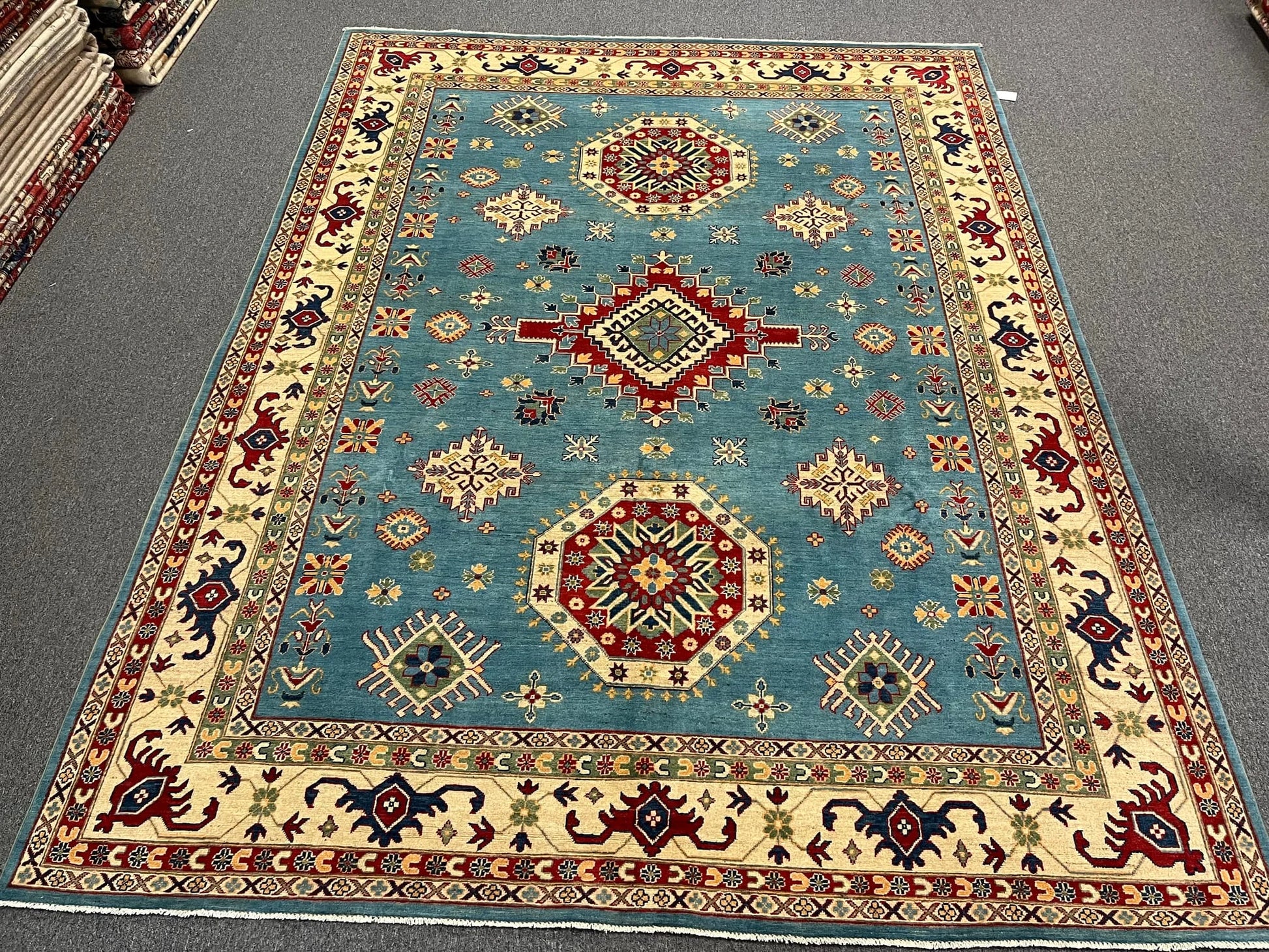 Kazak Light Blue 9X12 Handmade Wool Rug # 12481