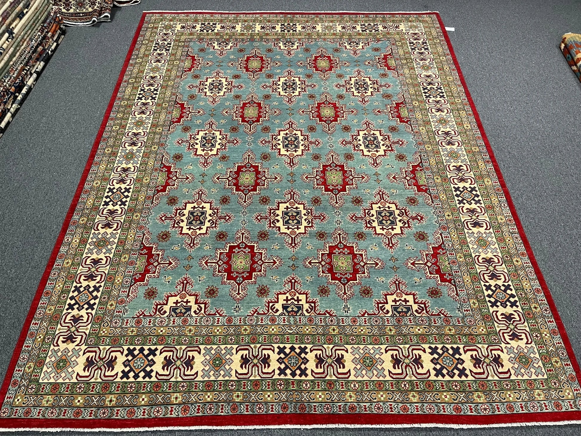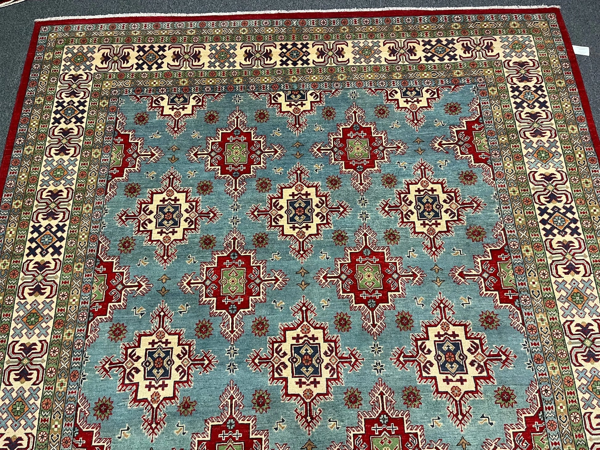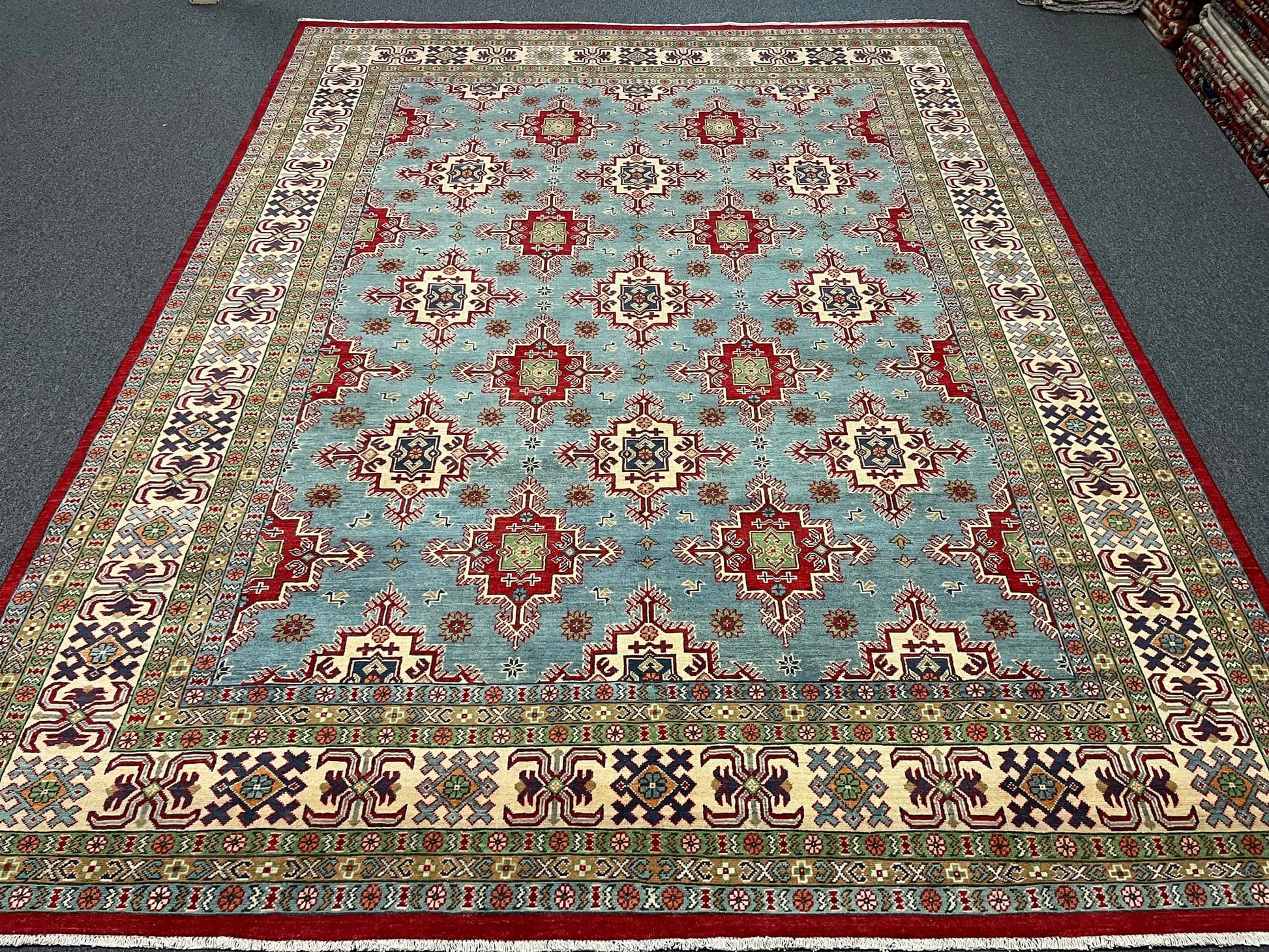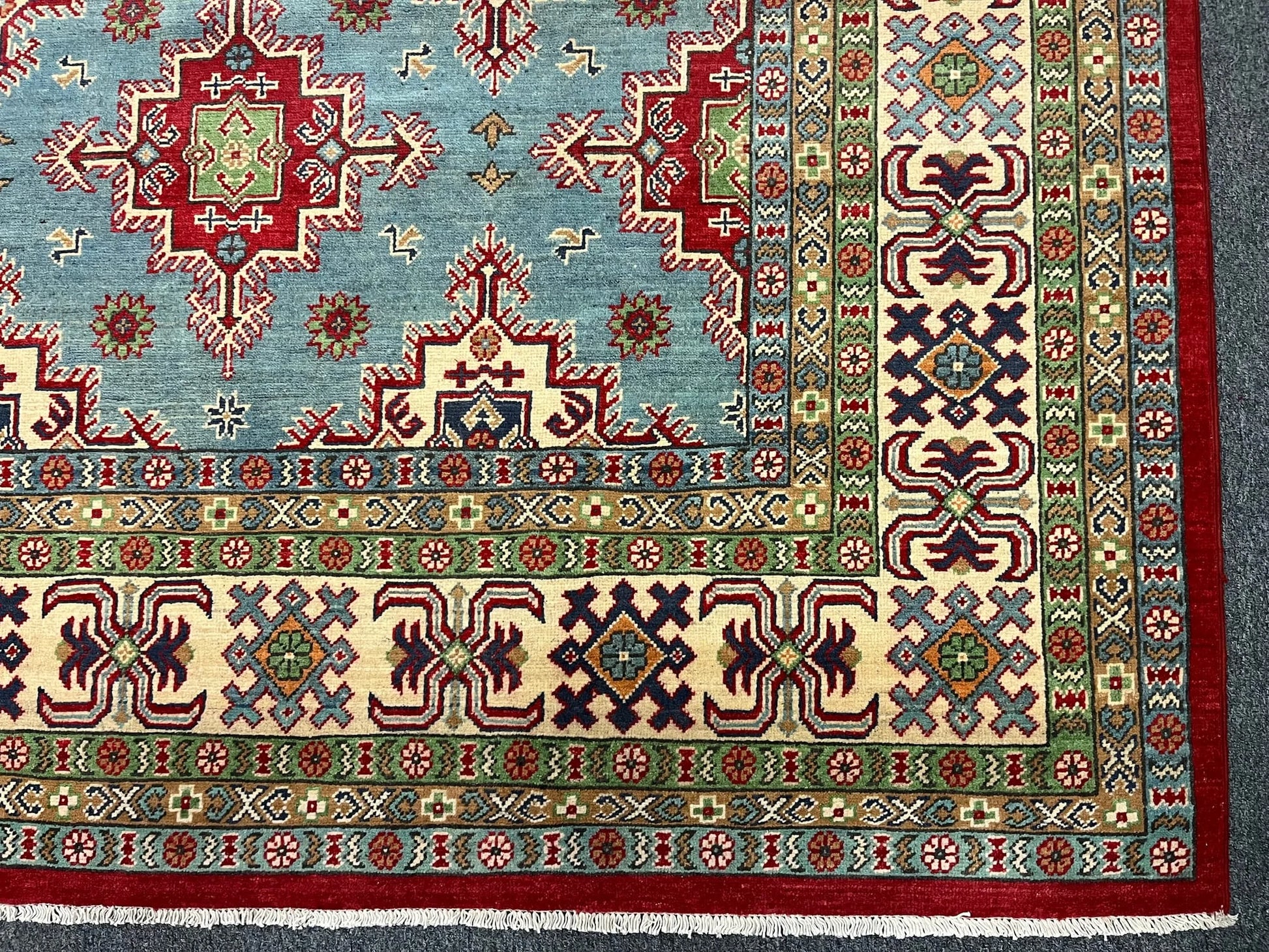 Kazak Light Blue 9X12 Handmade Wool Rug # 13048