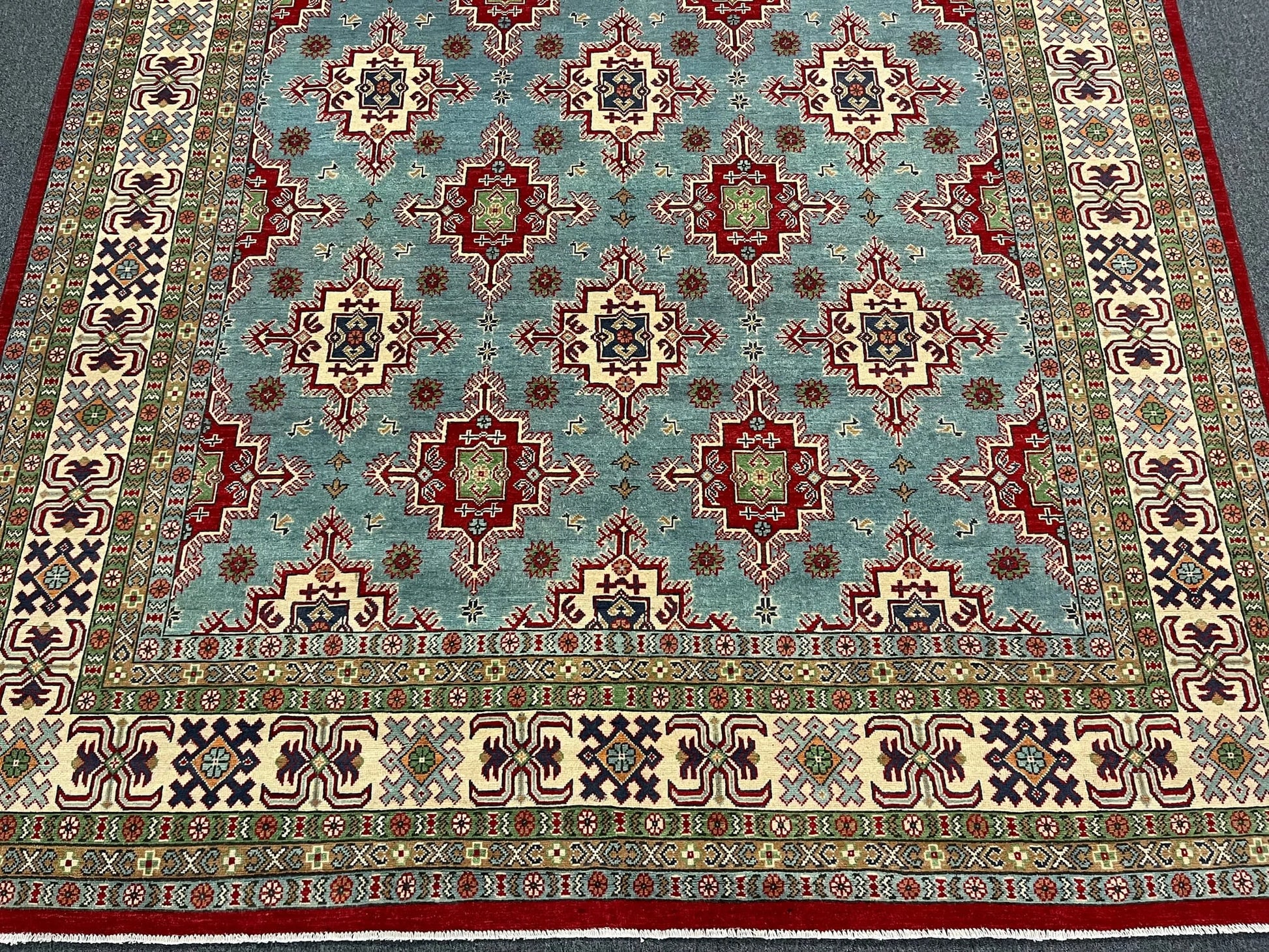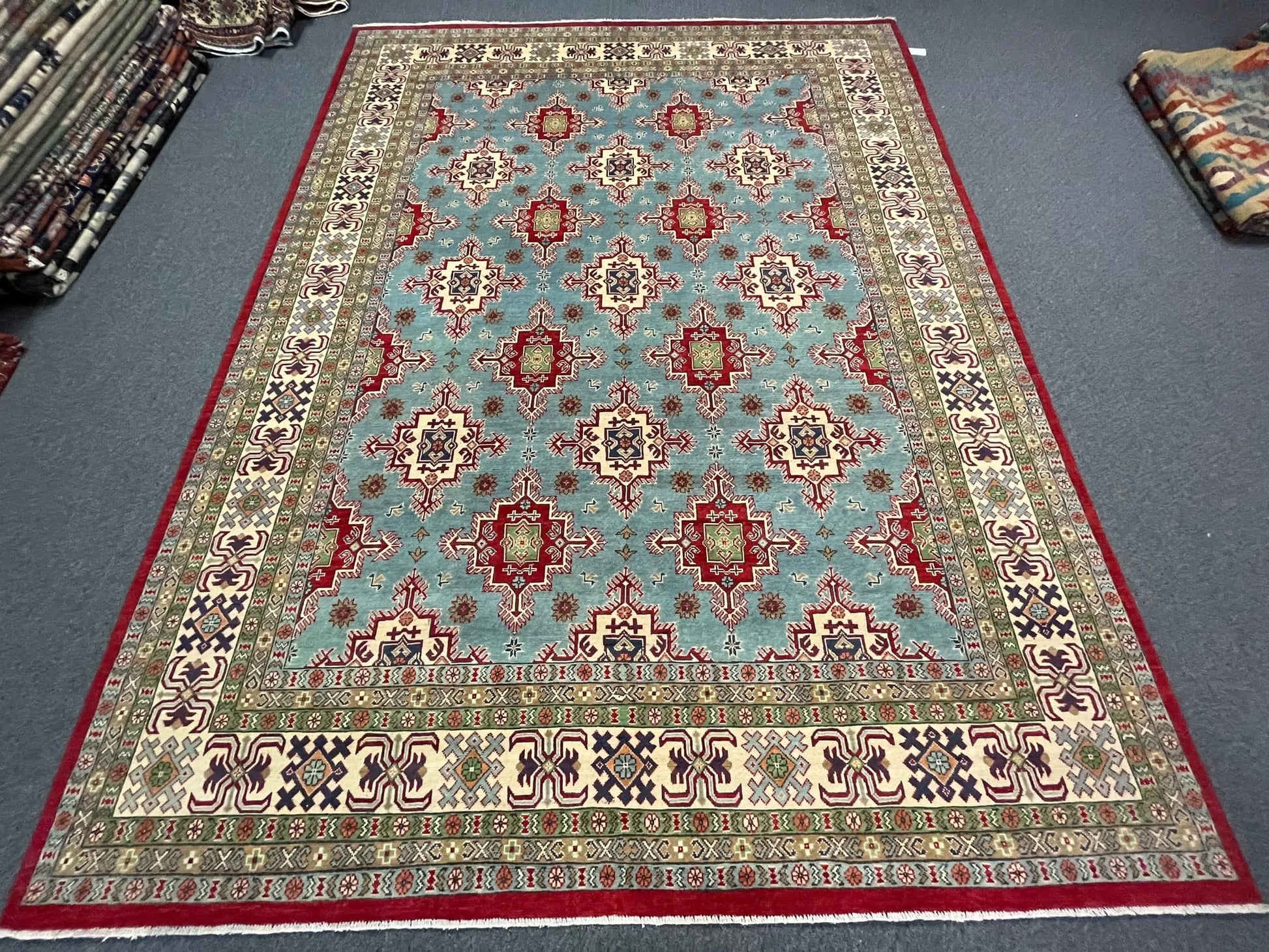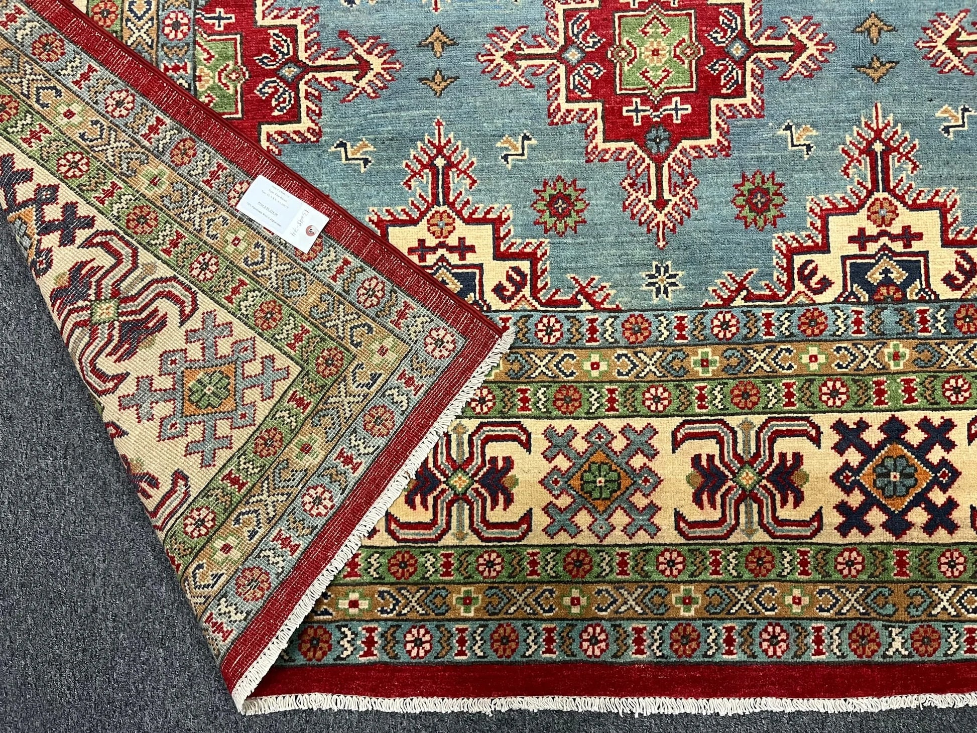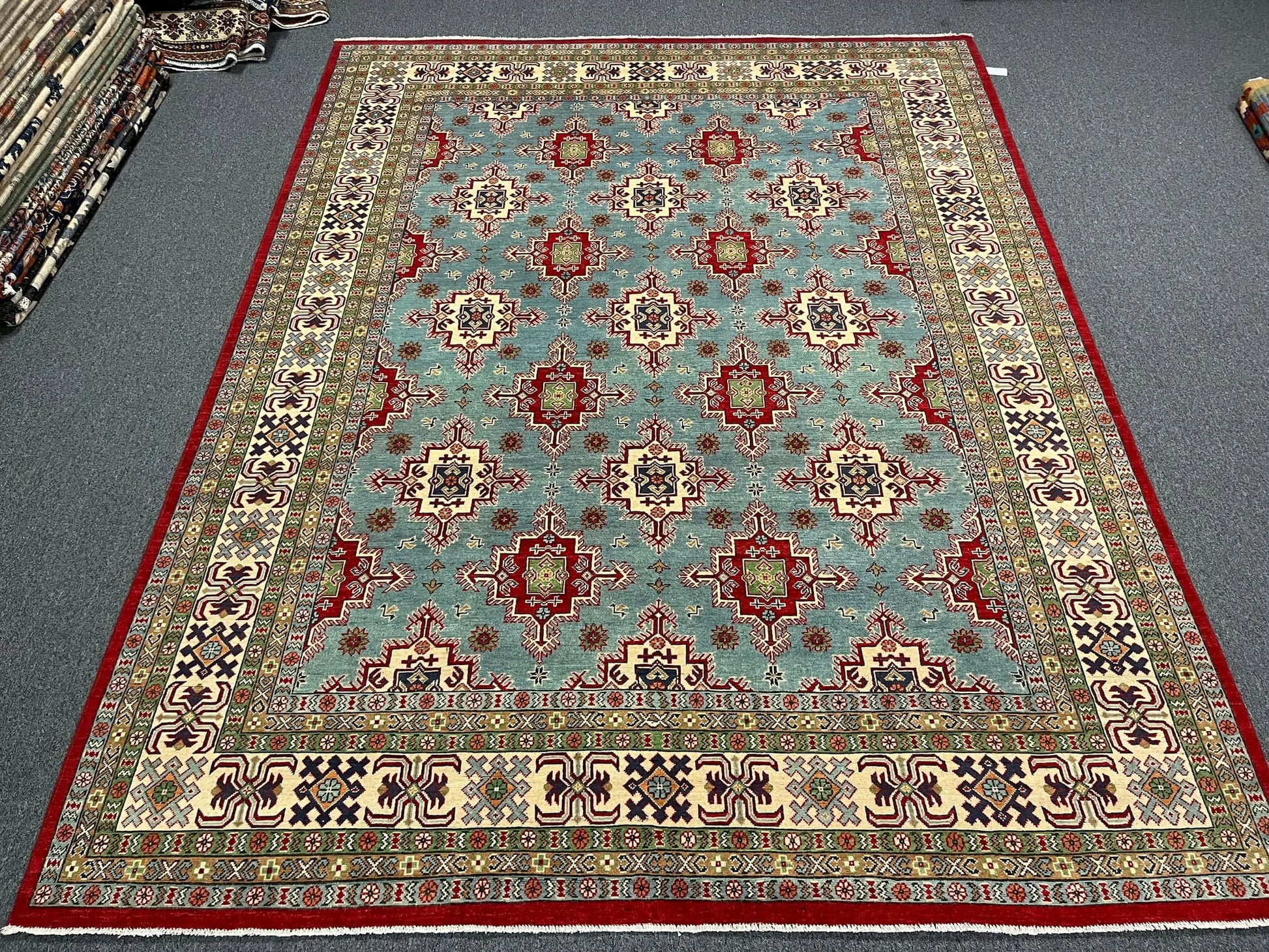 Kazak Light Blue 9X12 Handmade Wool Rug # 13048