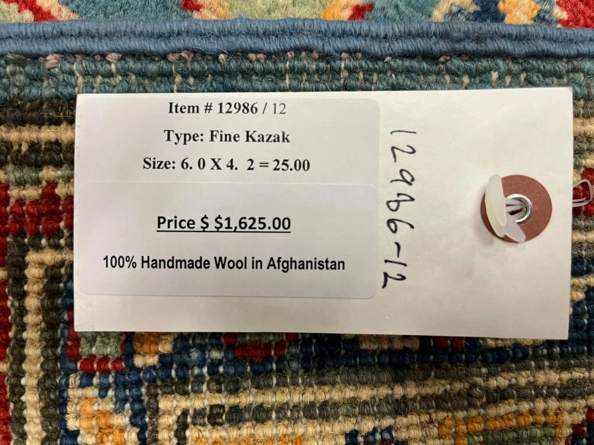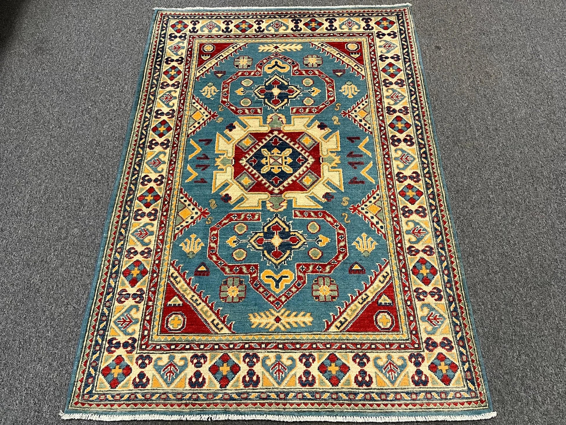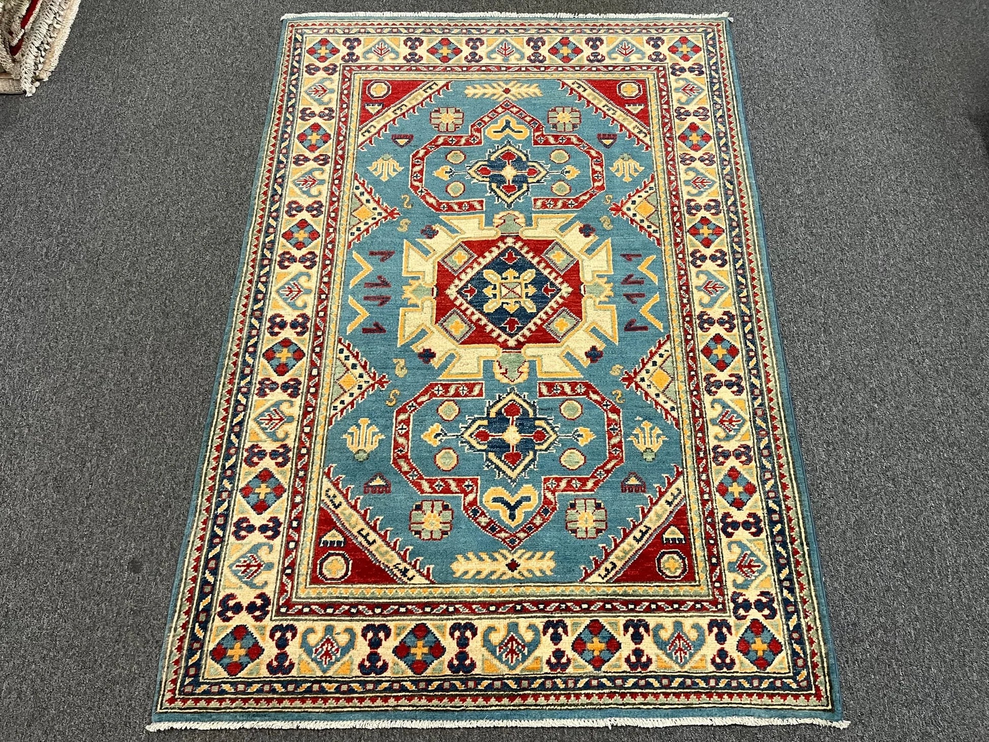 Kazak Light Blue Geometric 4X6 Handmade Wool Rug # 12986