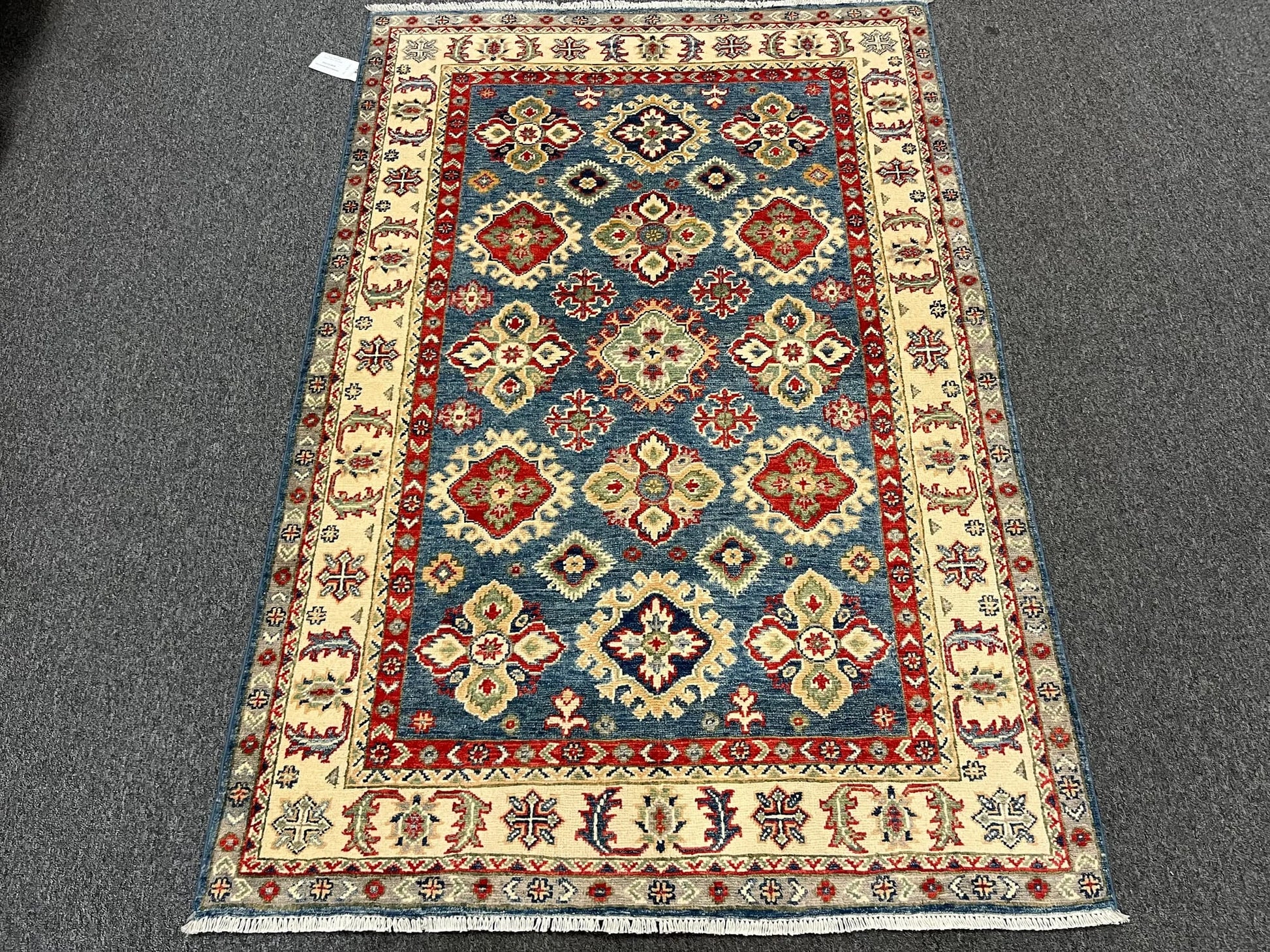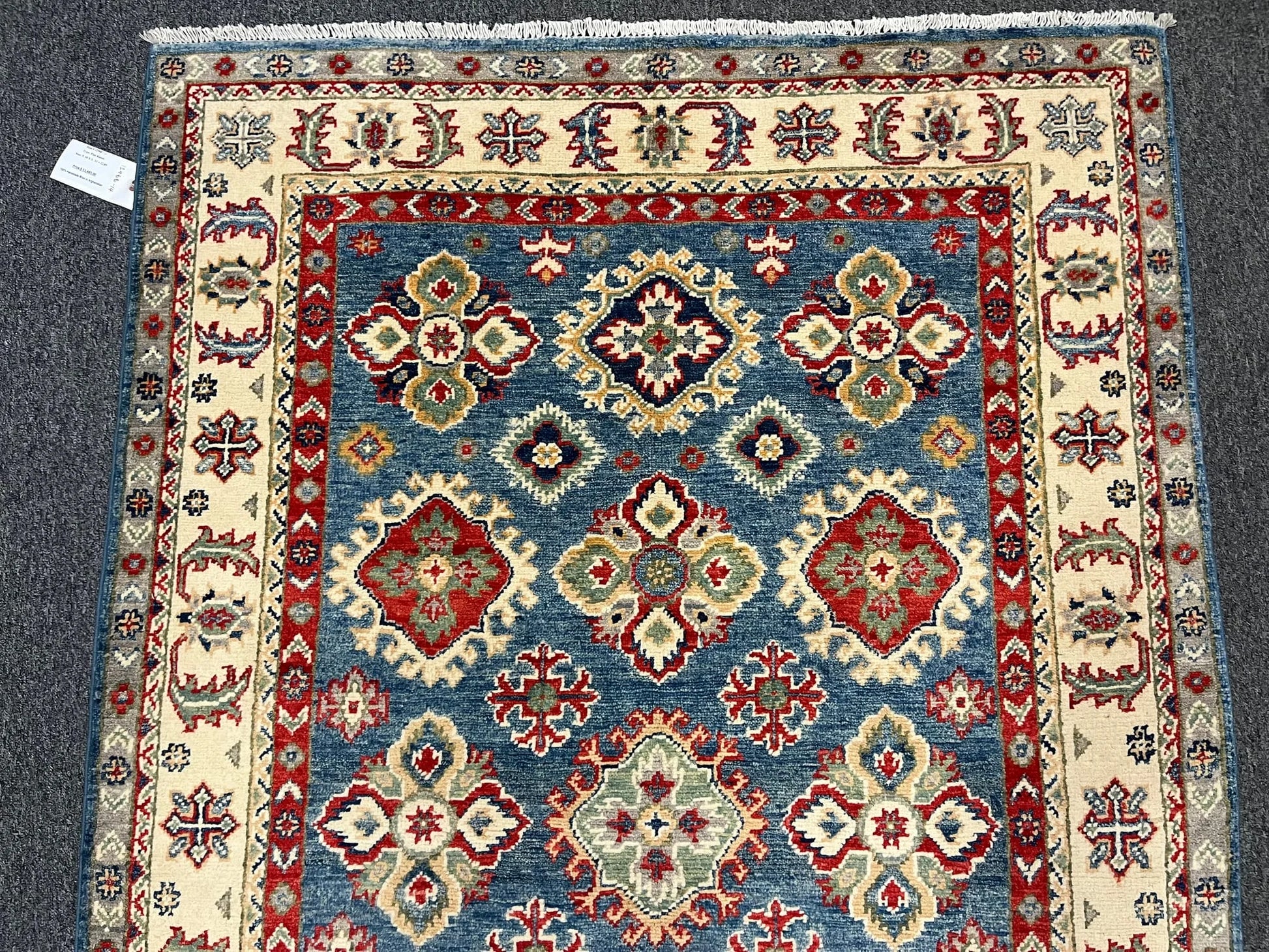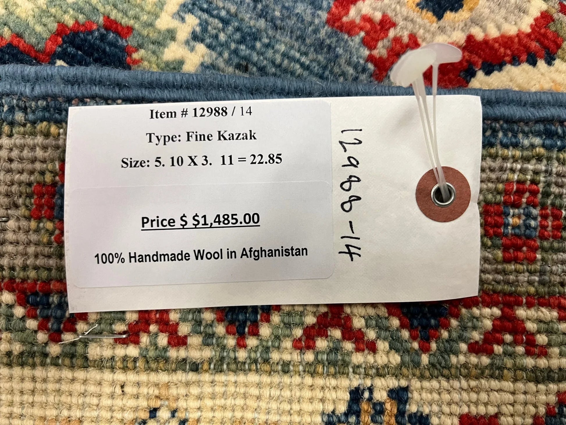 Kazak Light Blue Geometric 4X6 Handmade Wool Rug # 12988