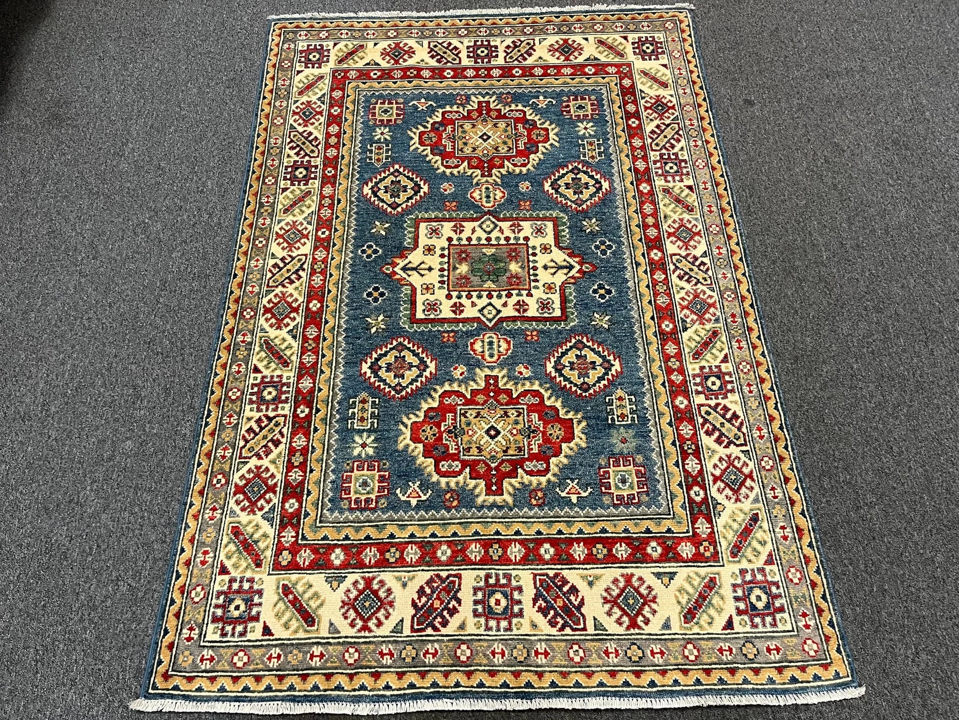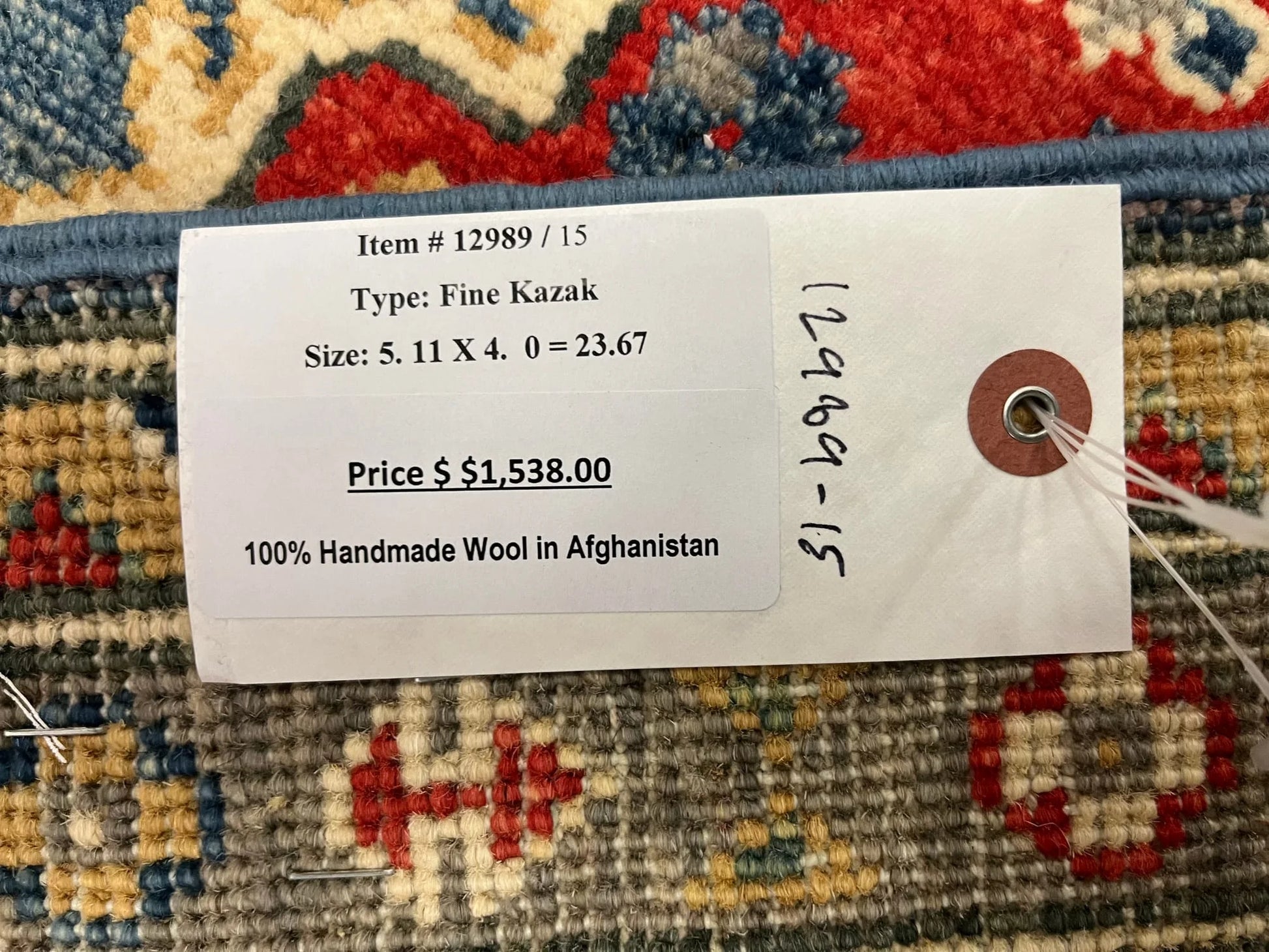 Kazak Light Blue Geometric 4X6 Handmade Wool Rug # 12989