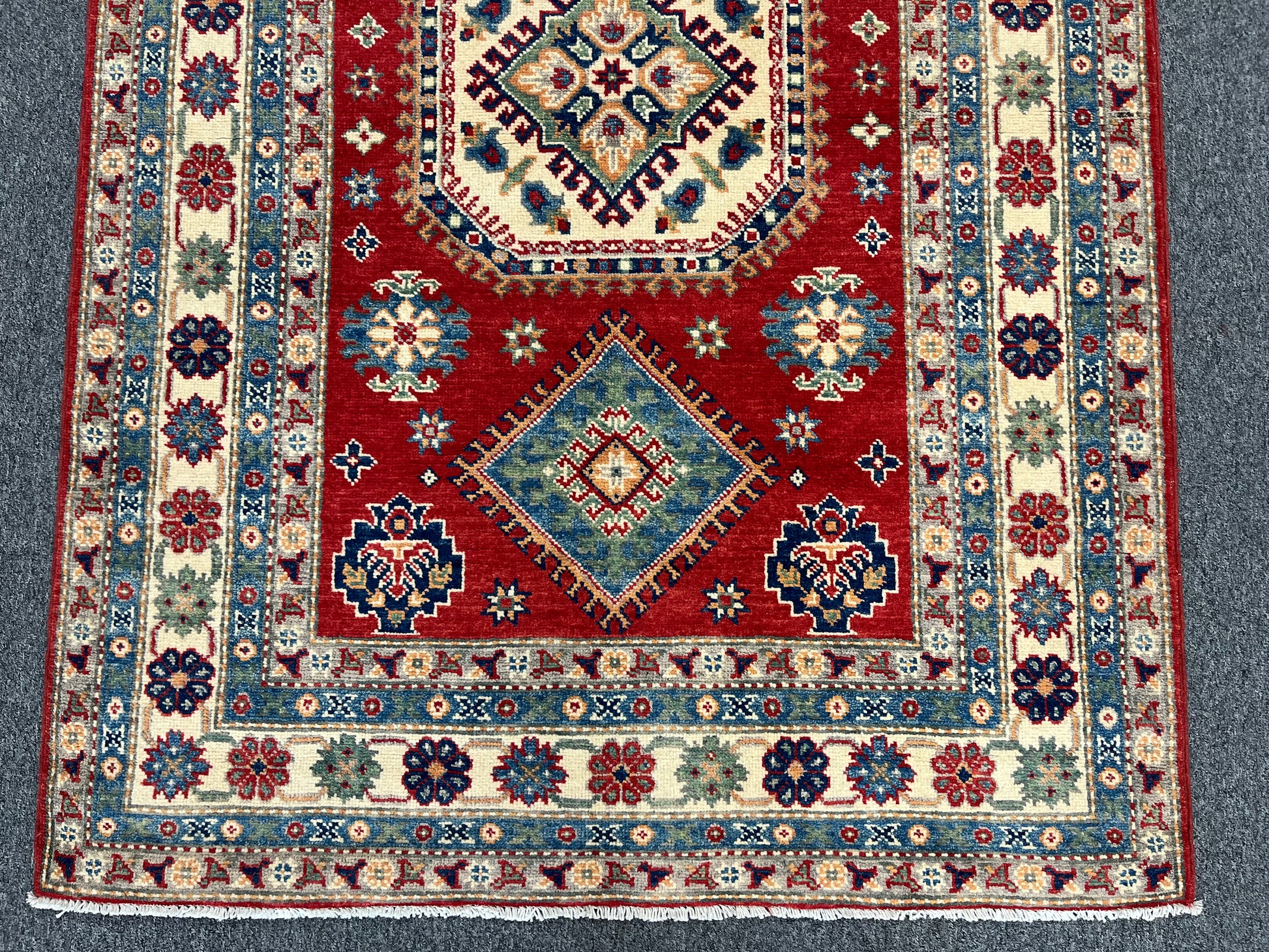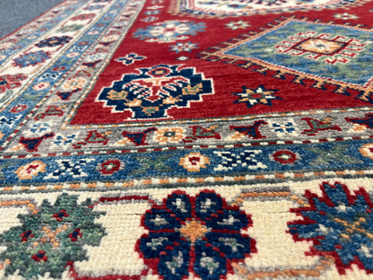 Kazak Red Geometric 4X6 Wool Handmade Rug # 13770
