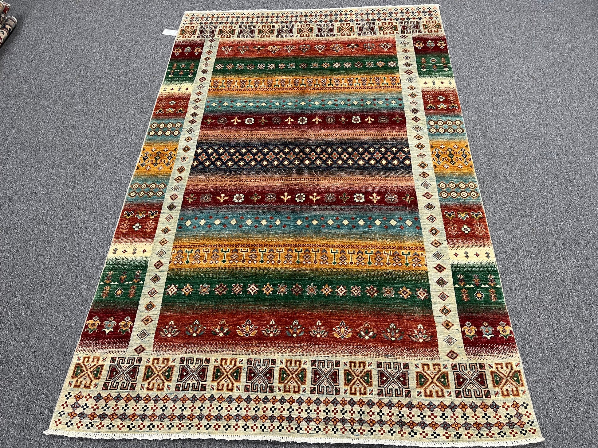 Khorjin Tribal Gabbeh 6X8 Handmade Wool Rug # 14047