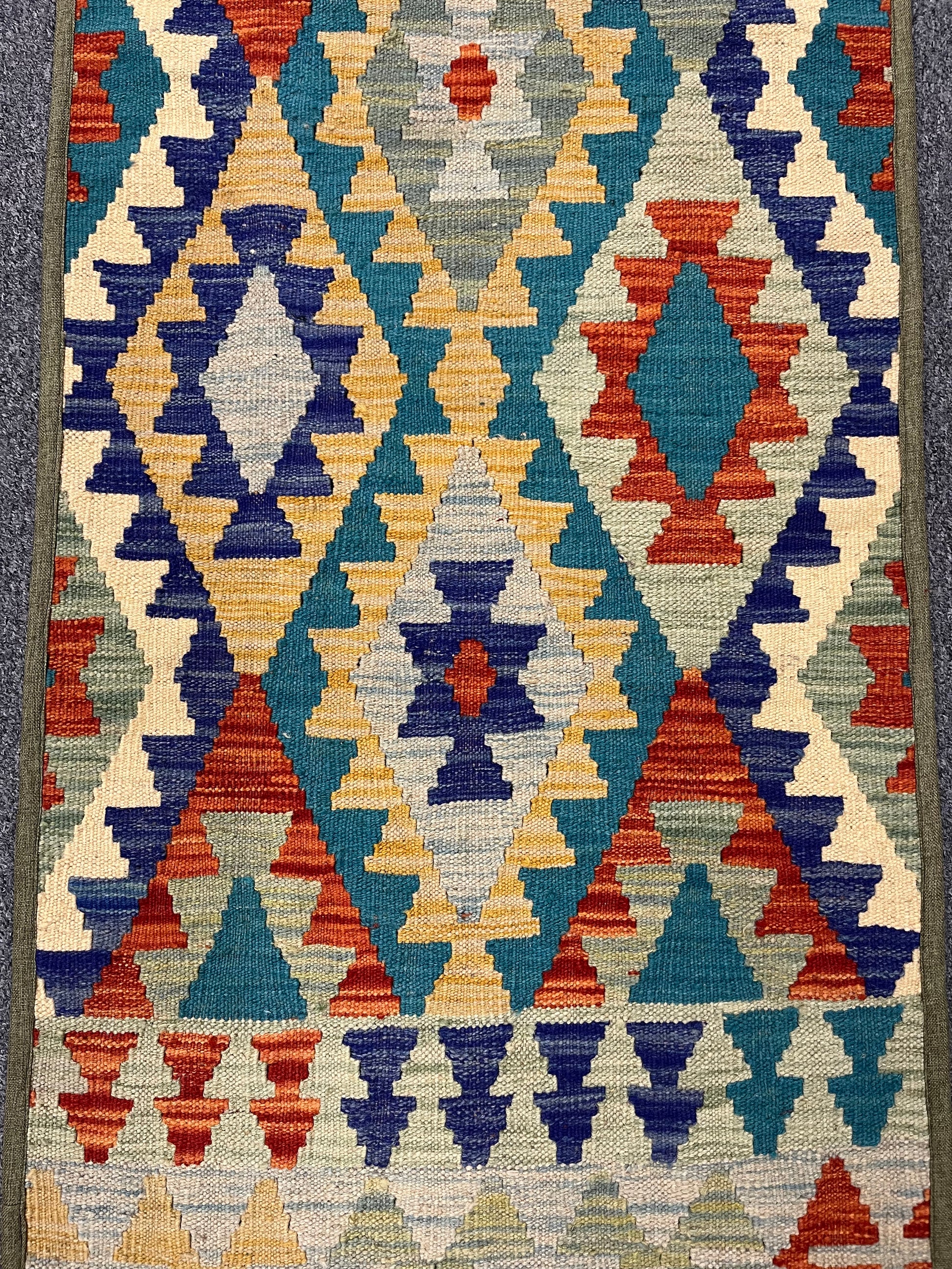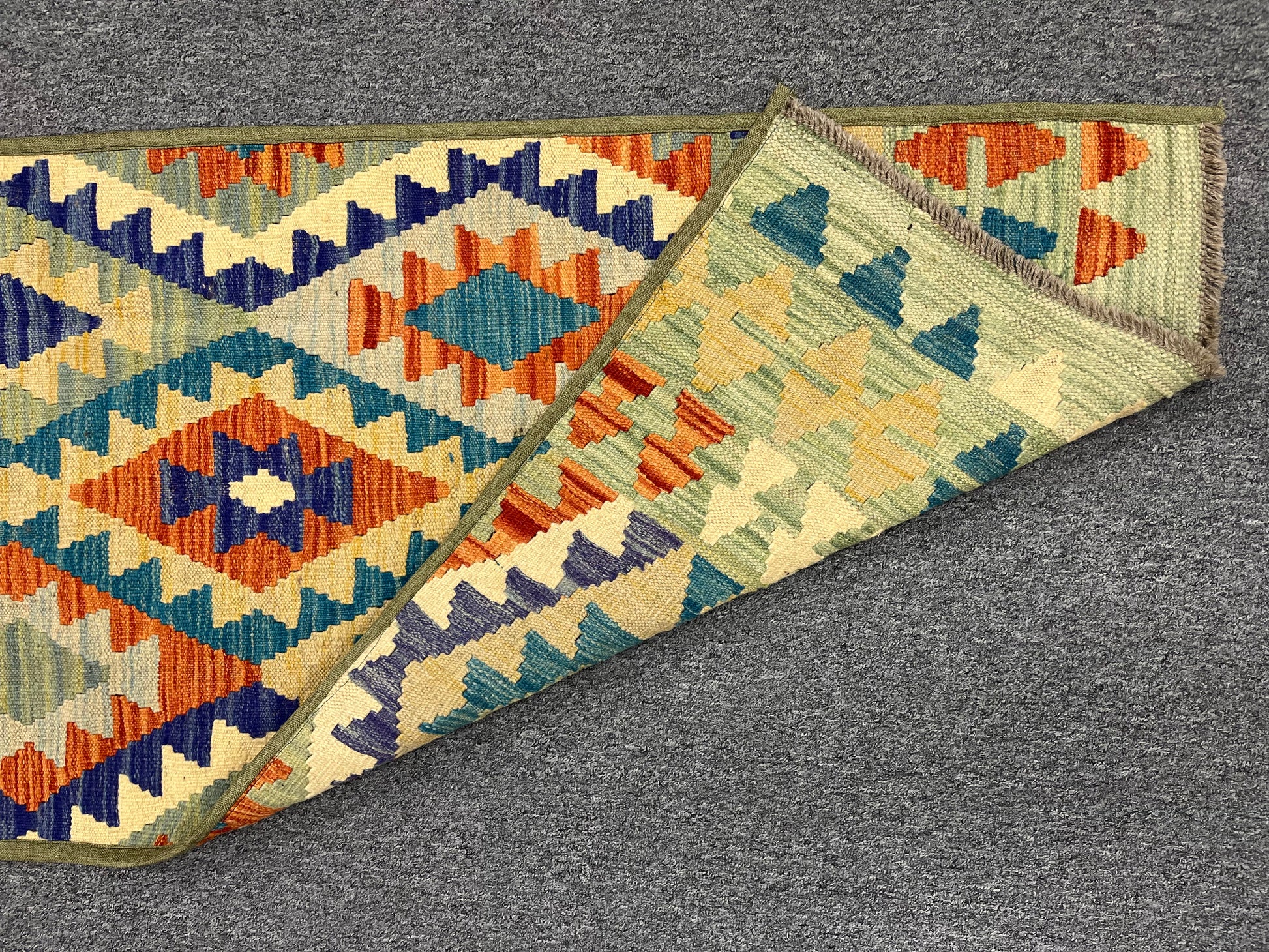 Kilim 2' 5" X 10' Flat Weave Reversible Multicolor Wool Rug # 13419