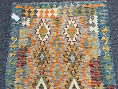 Kilim 4X6 Flat Weave Reversible Multicolor Wool Rug # 13494