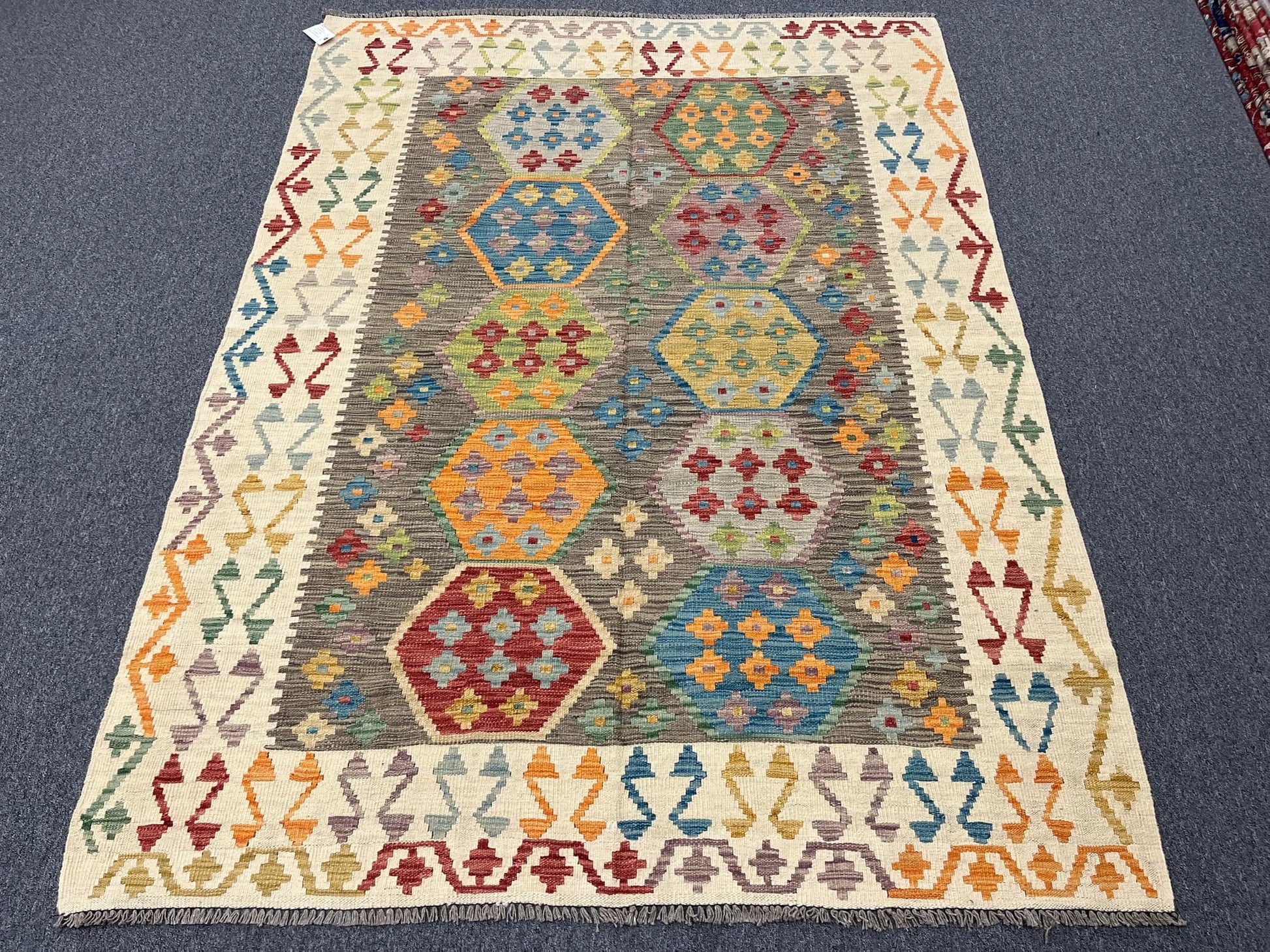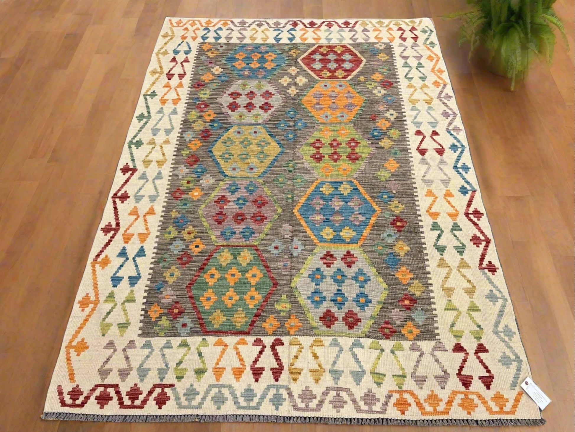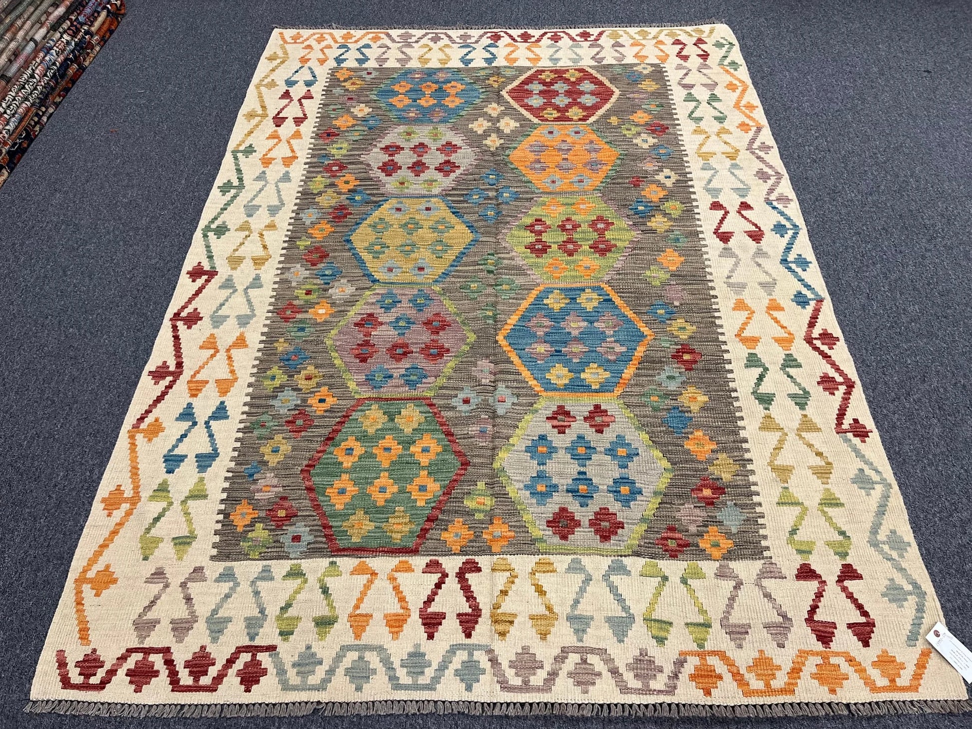 Kilim 6X8 Flatweave Reversible Multicolor Wool Rug # 13551