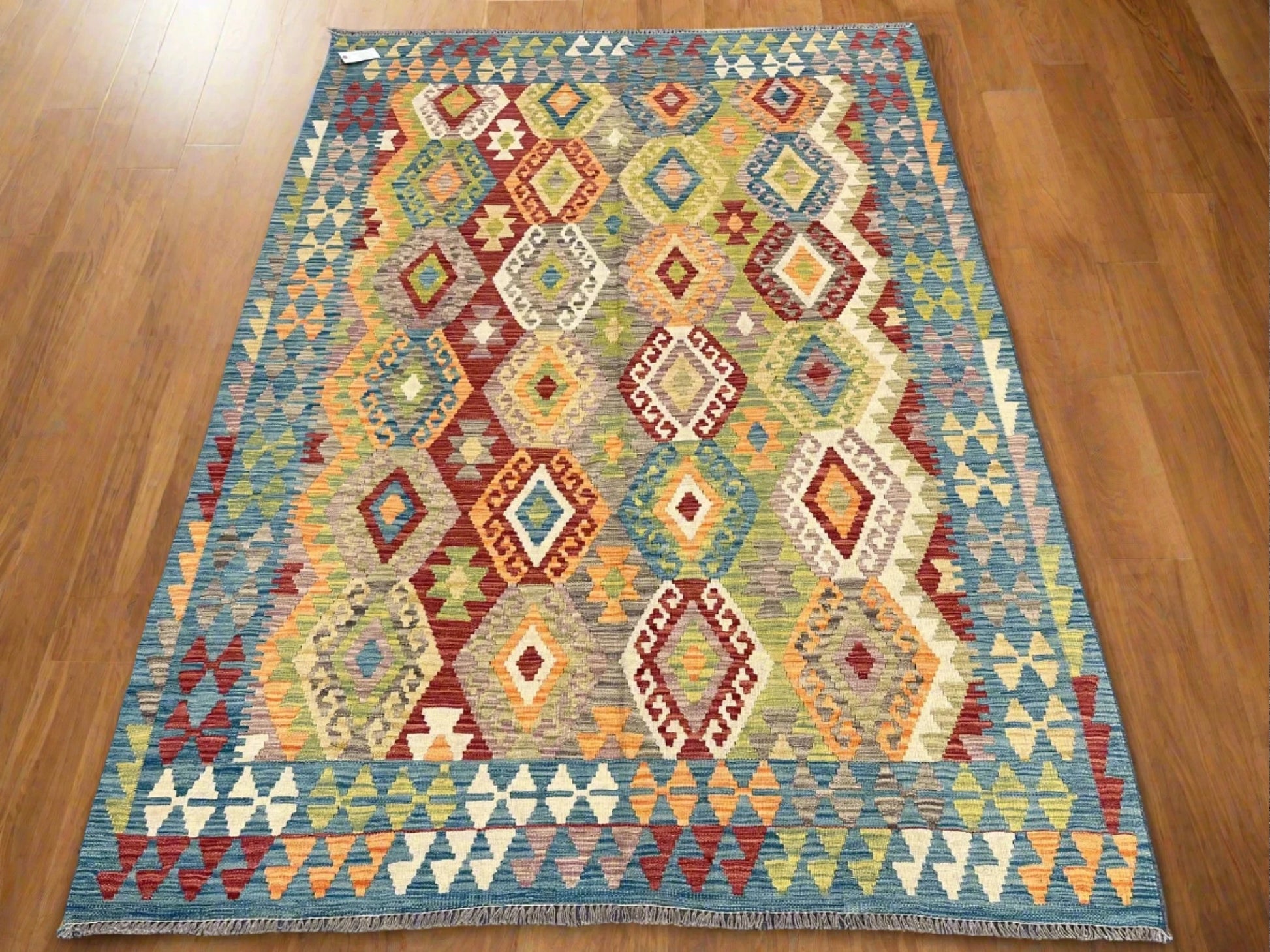 Kilim 6X8 Flatweave Reversible Multicolor Wool Rug # 13560