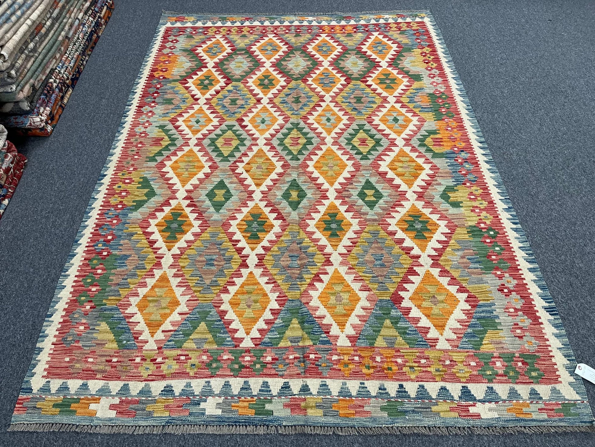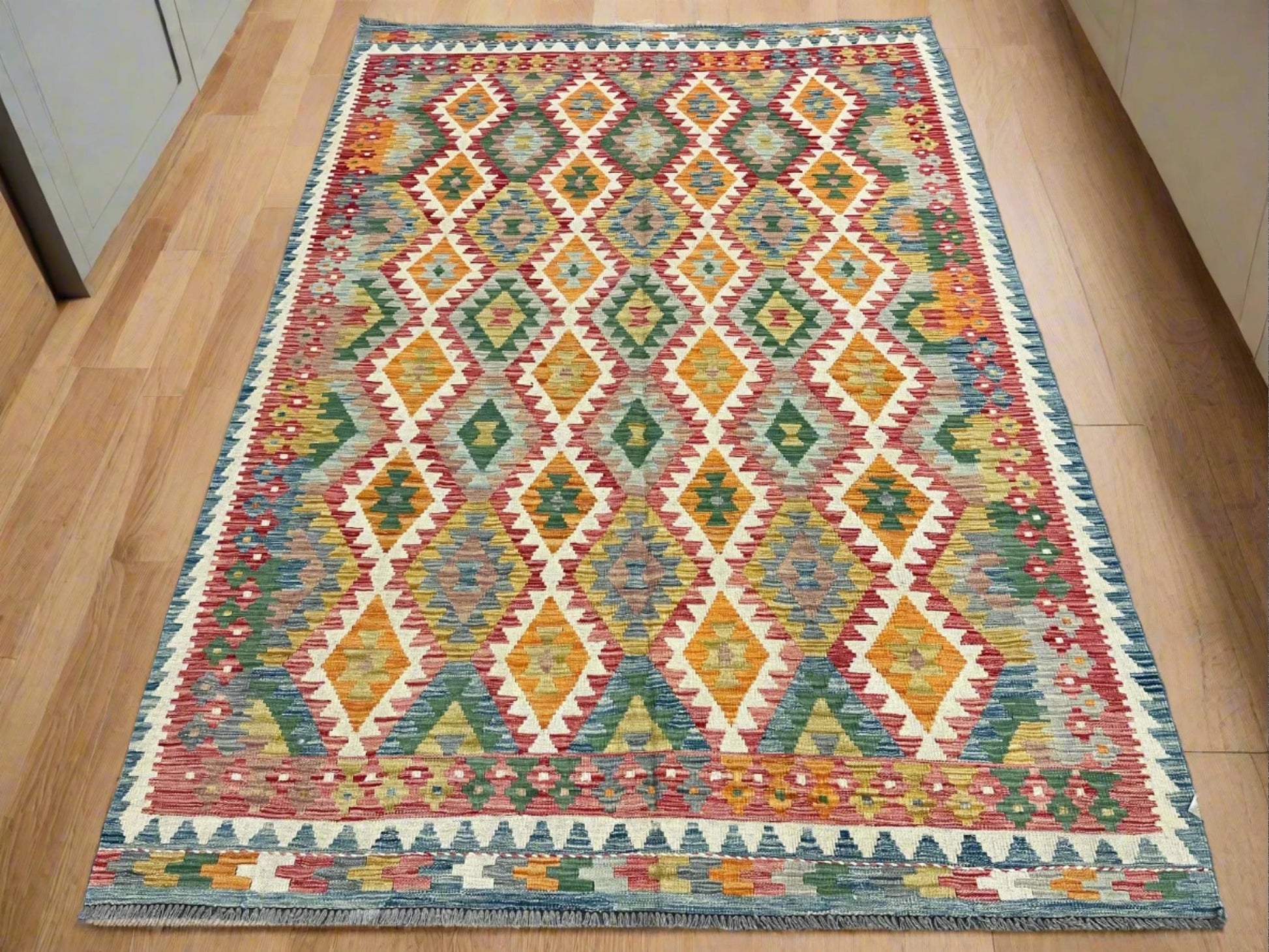 Kilim 6X9 Flatweave Reversible Multicolor Wool Rug # 13566