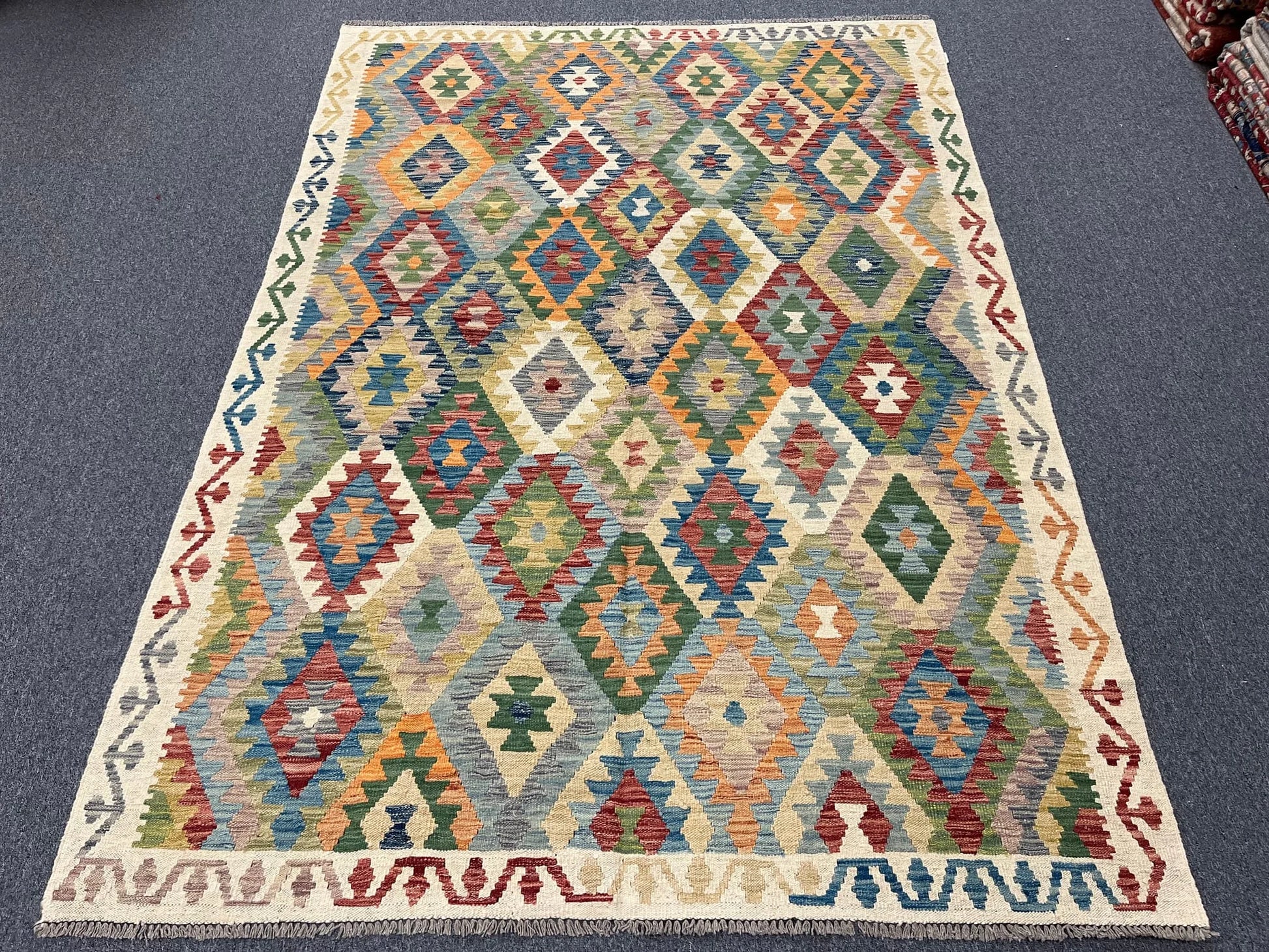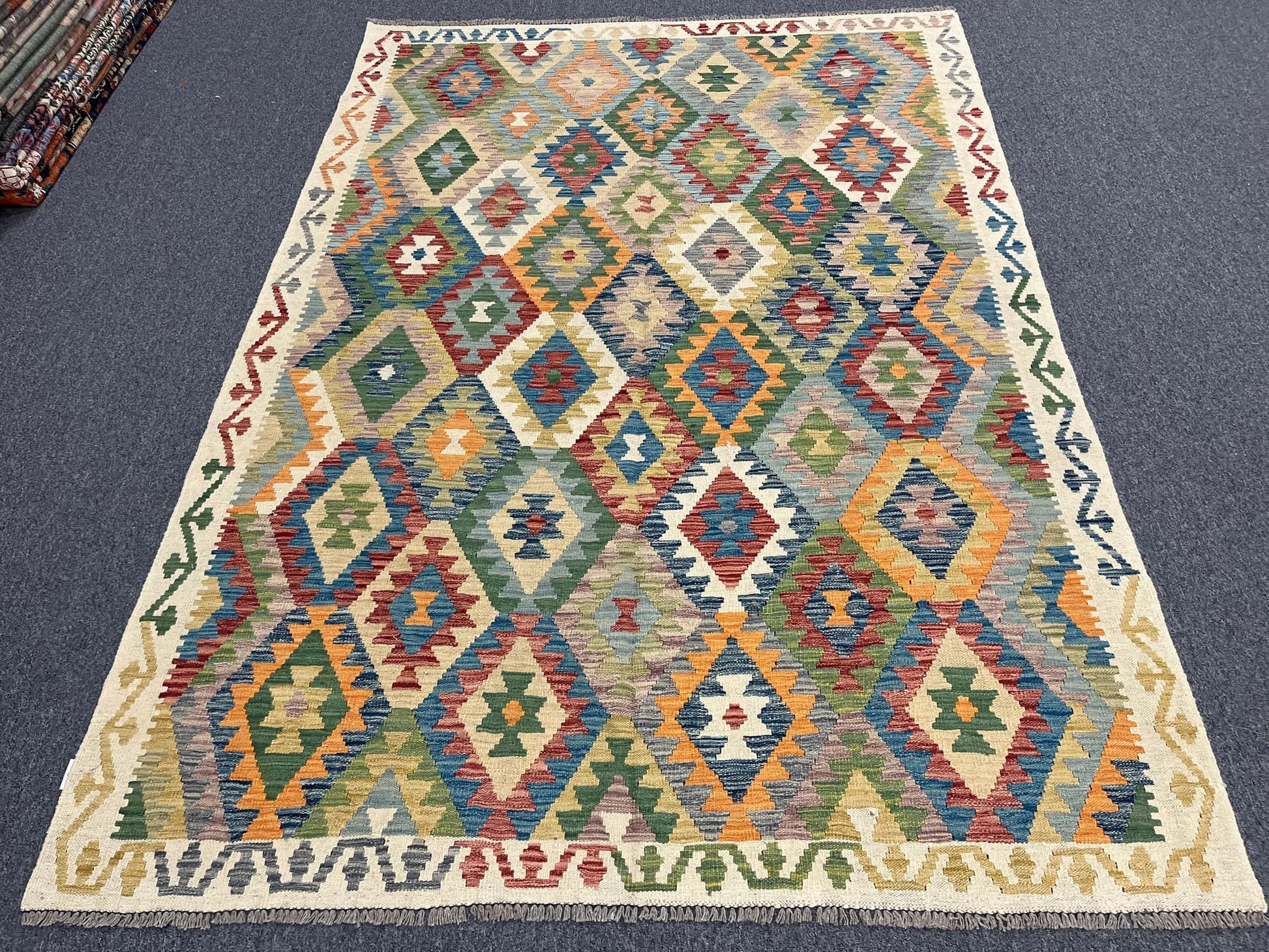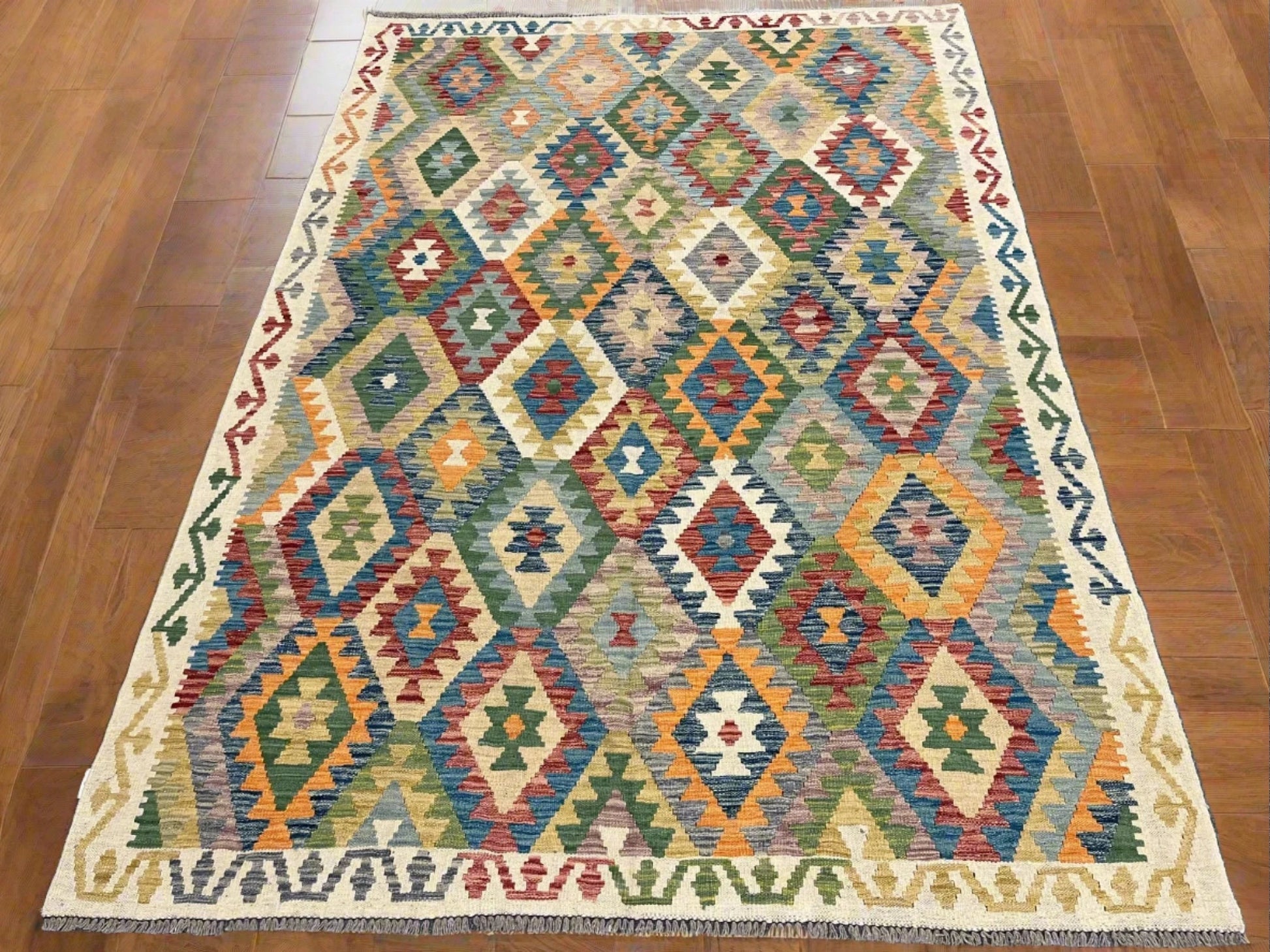 Kilim 6X9 Flatweave Reversible Multicolor Wool Rug # 13572