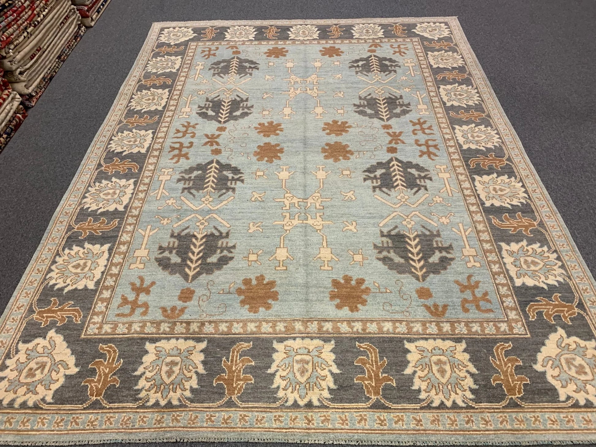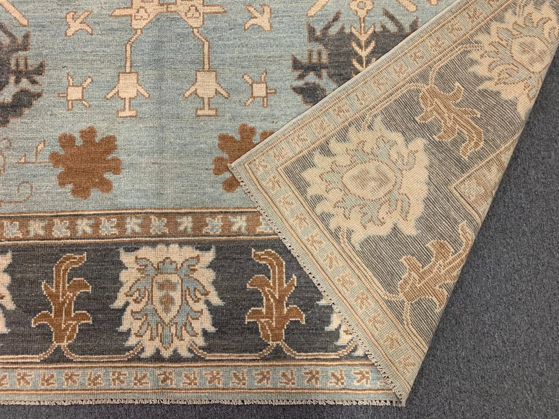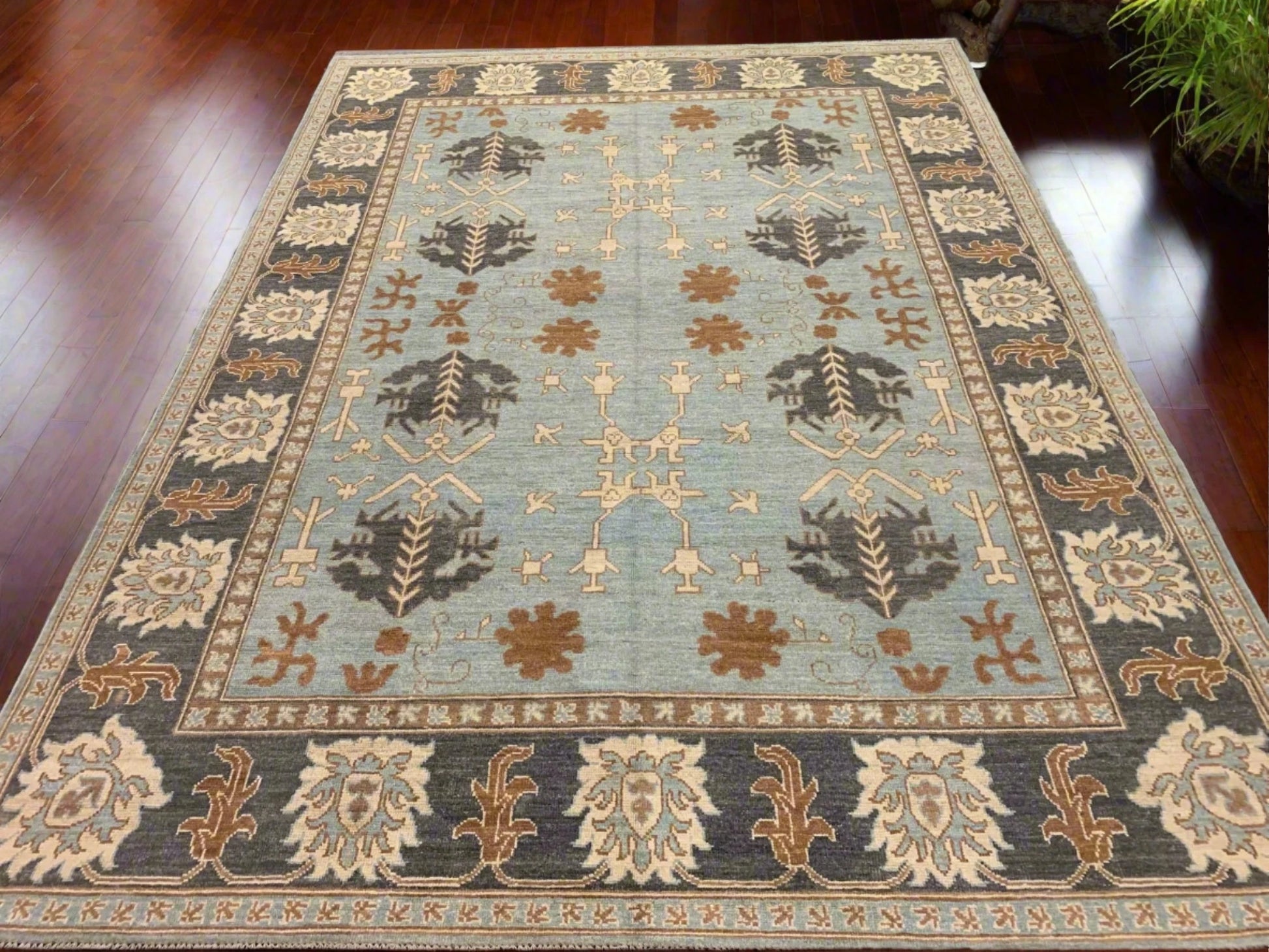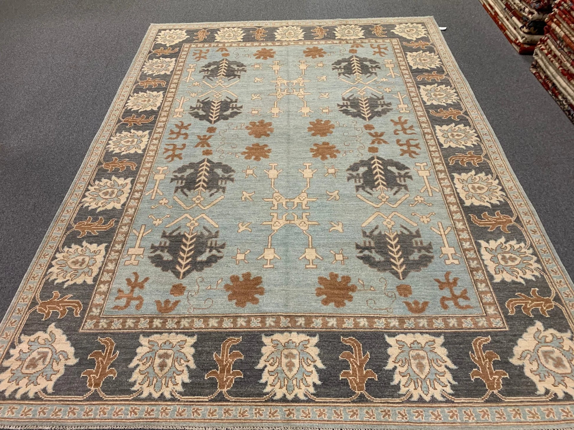 Light blue/Charcoal 9X12 Oushak Handmade Wool Rug # 10686