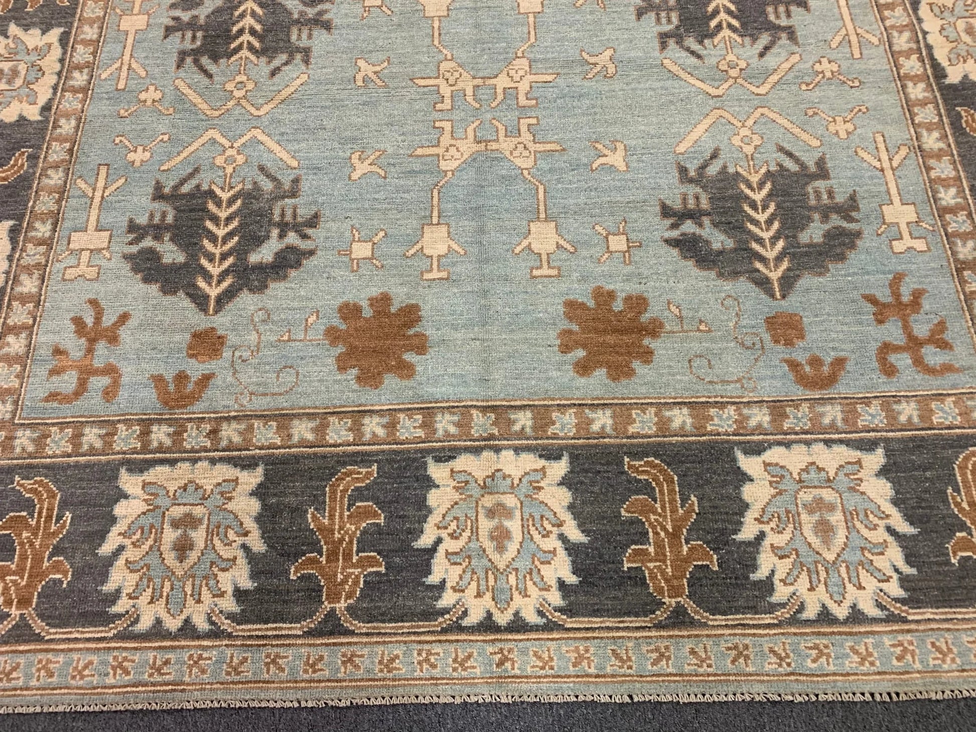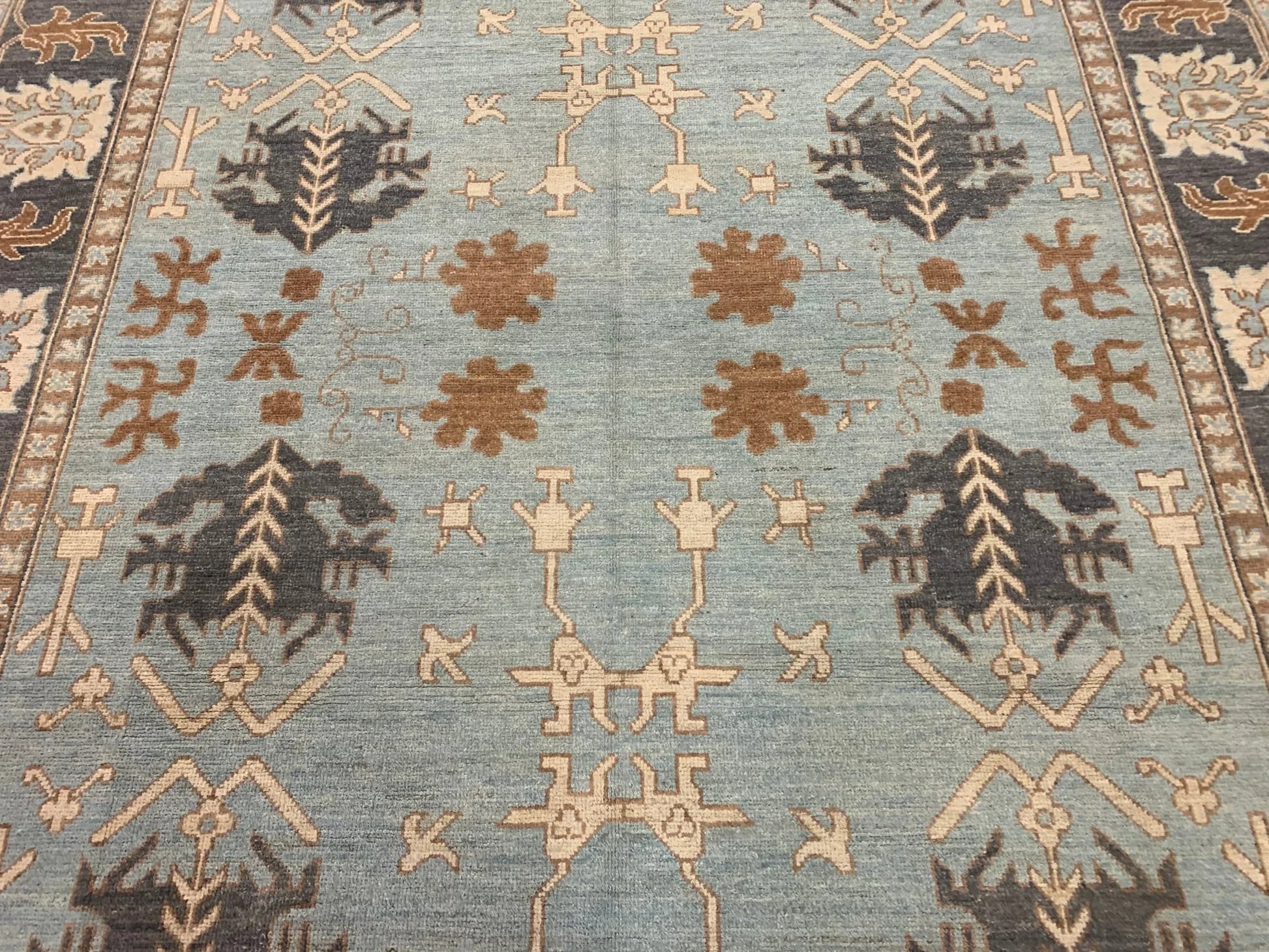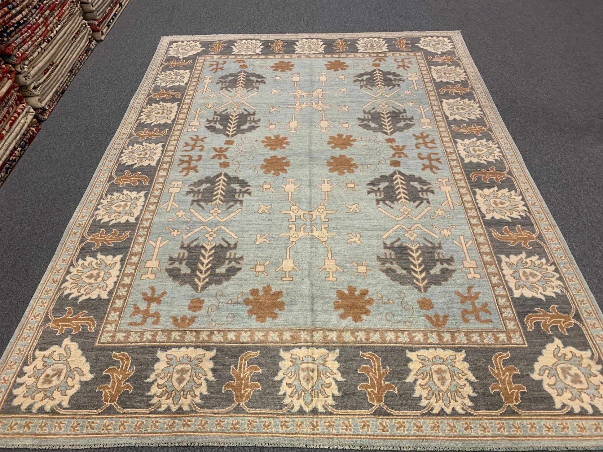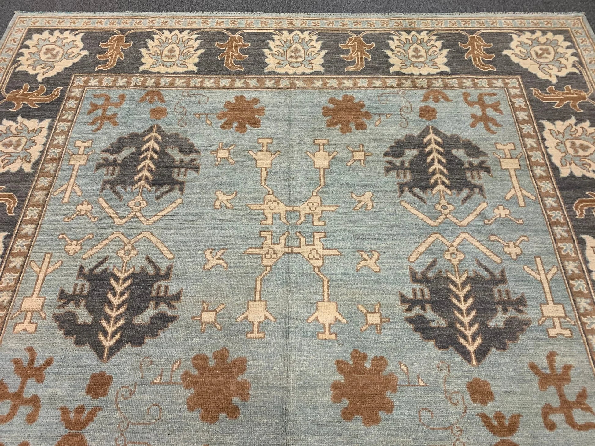Light blue/Charcoal 9X12 Oushak Handmade Wool Rug # 10686