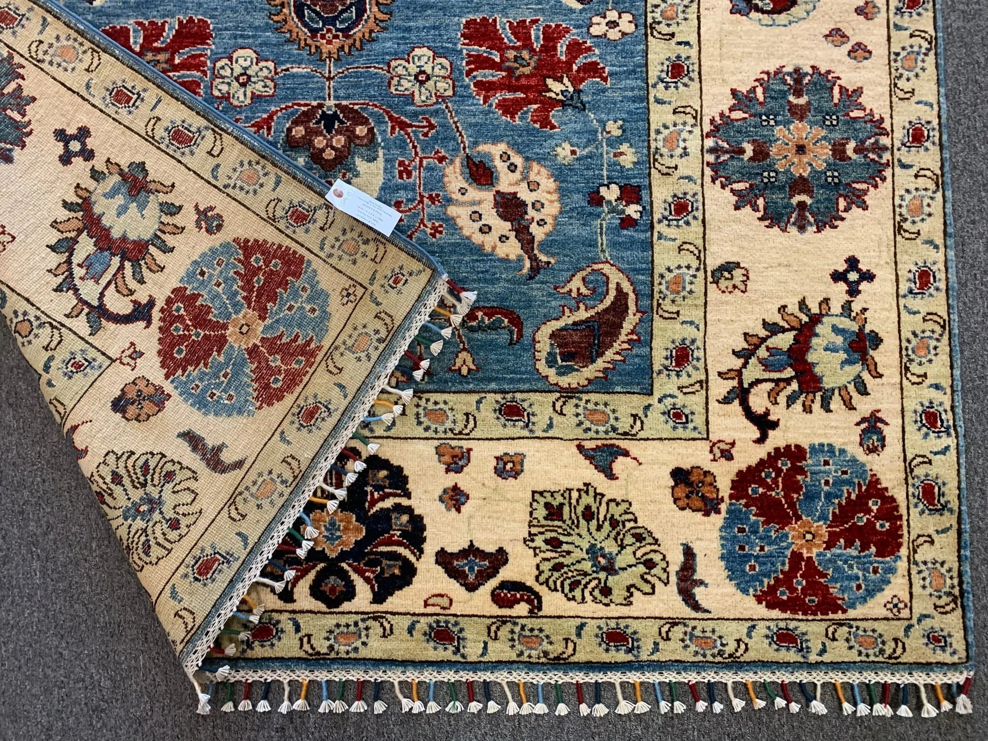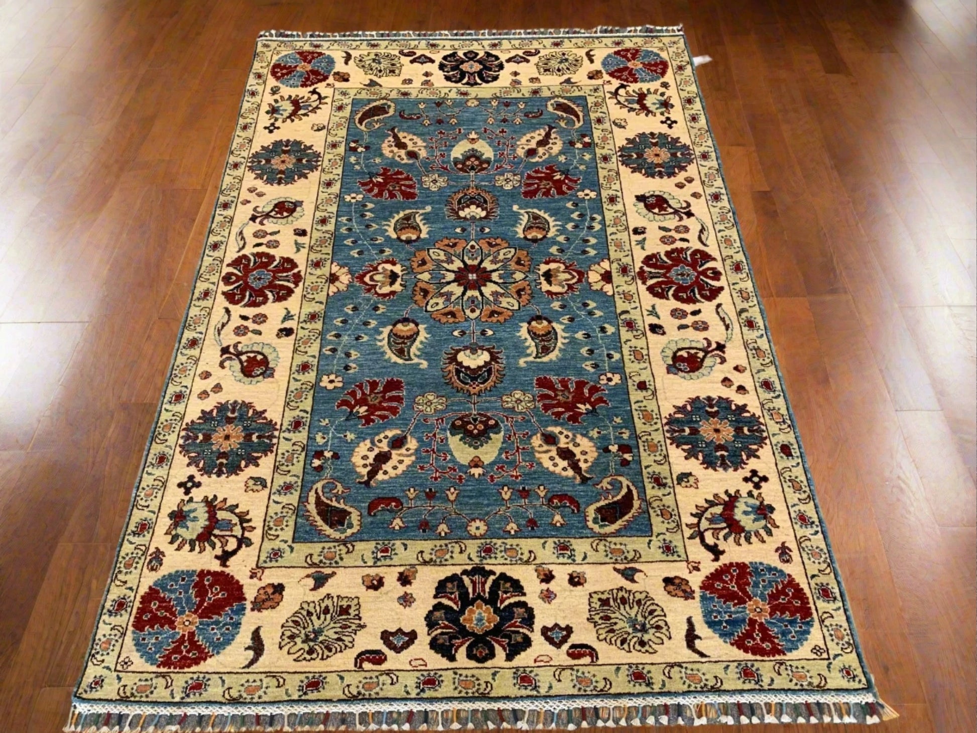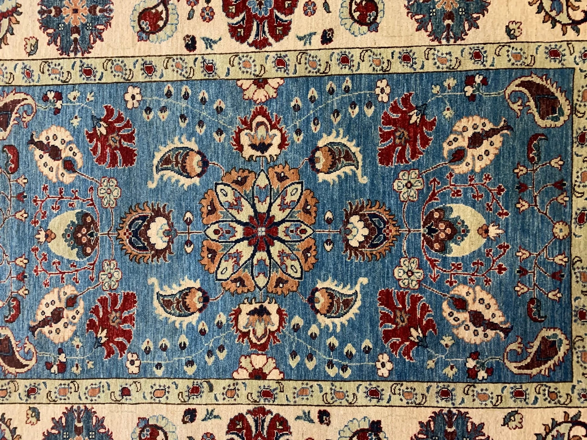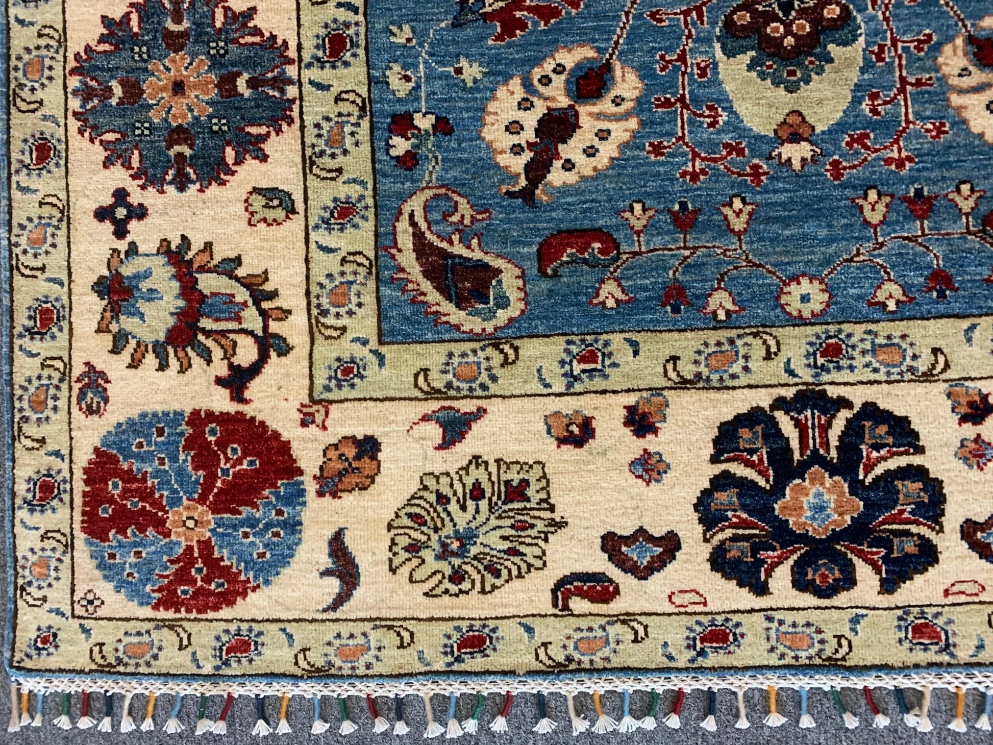 Light Blue Floral Mahal 6X8 Handmade Wool Rug # 11604