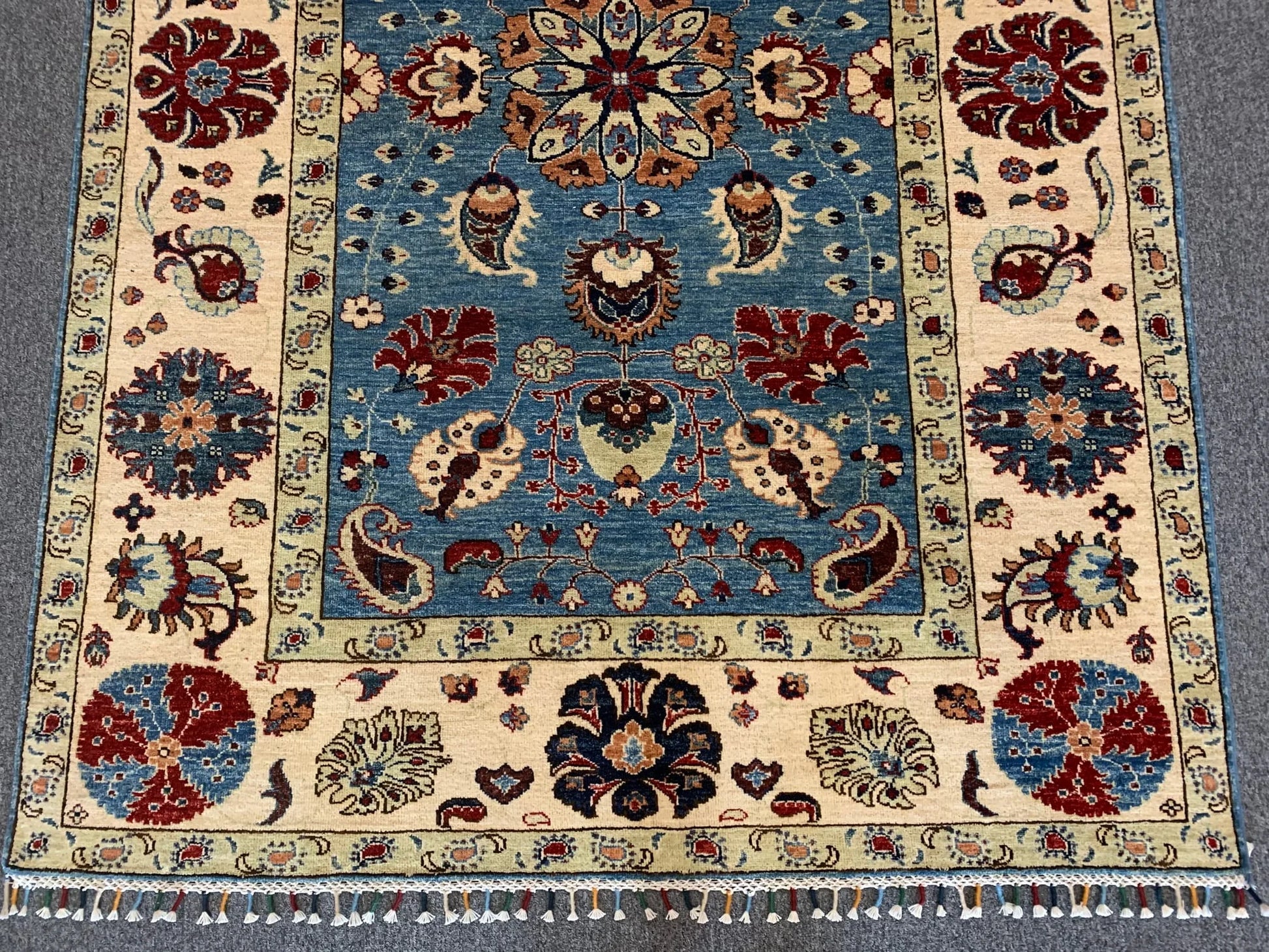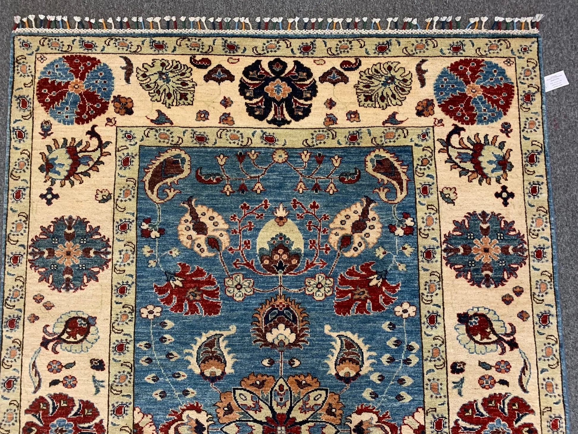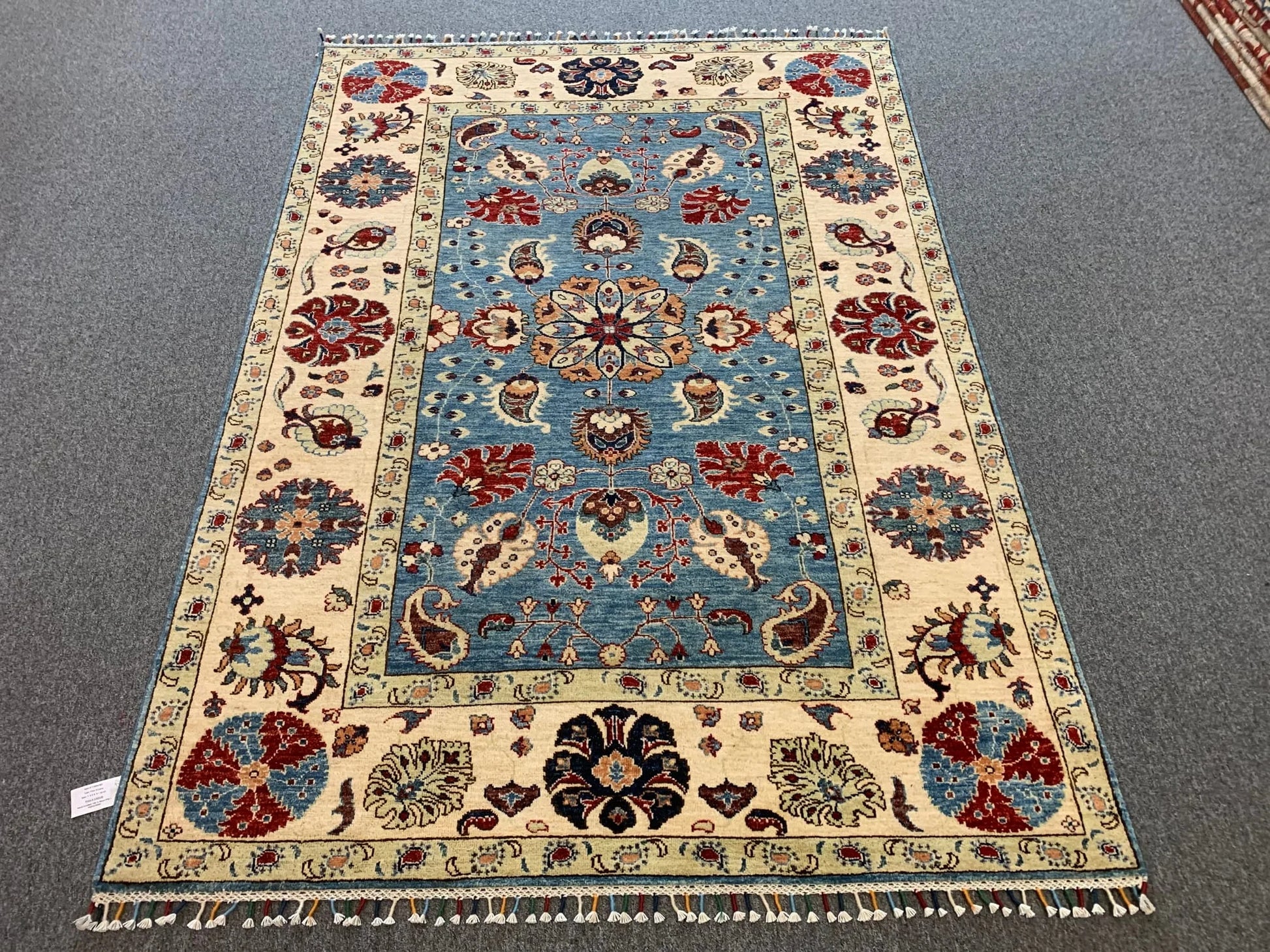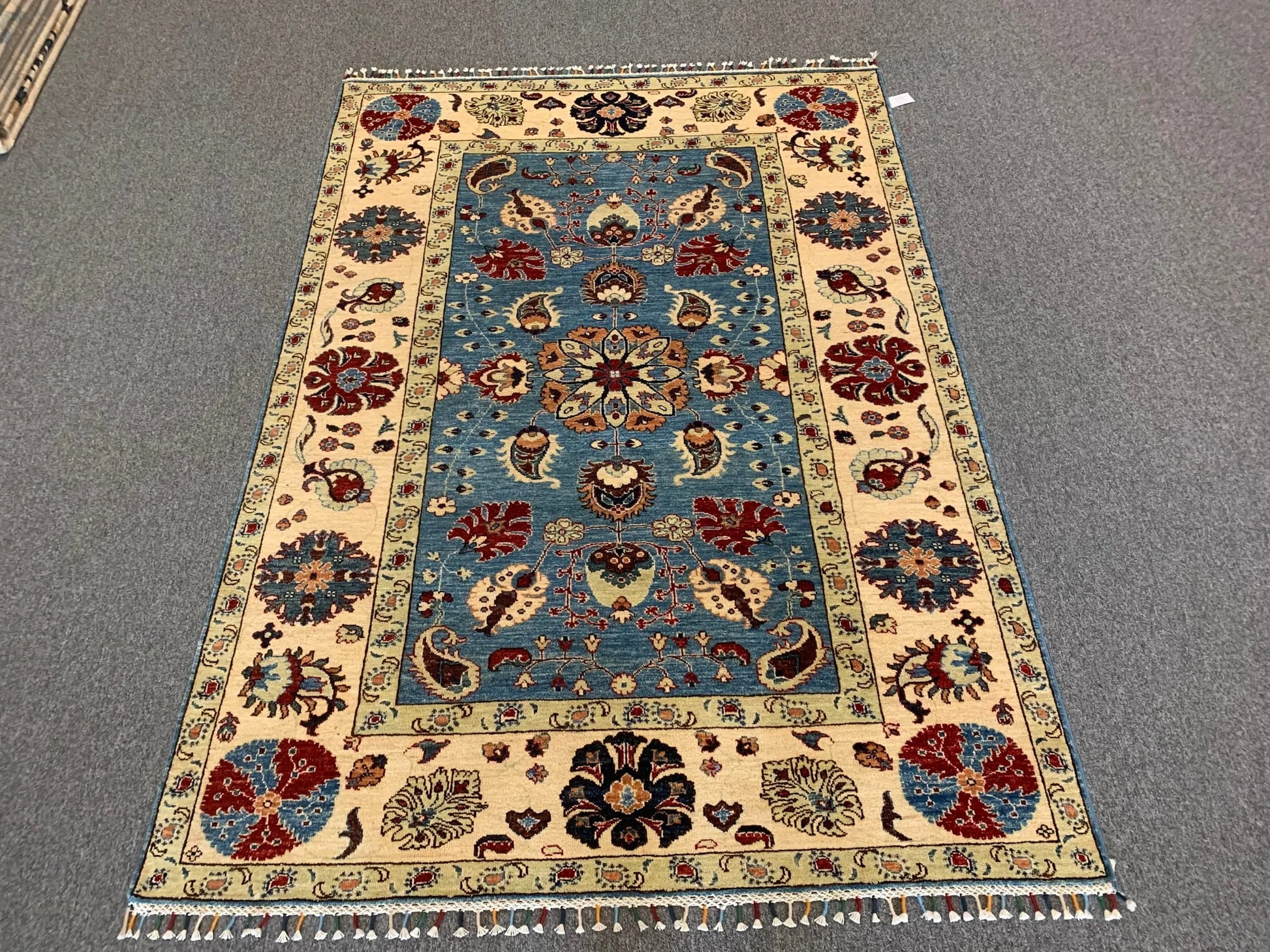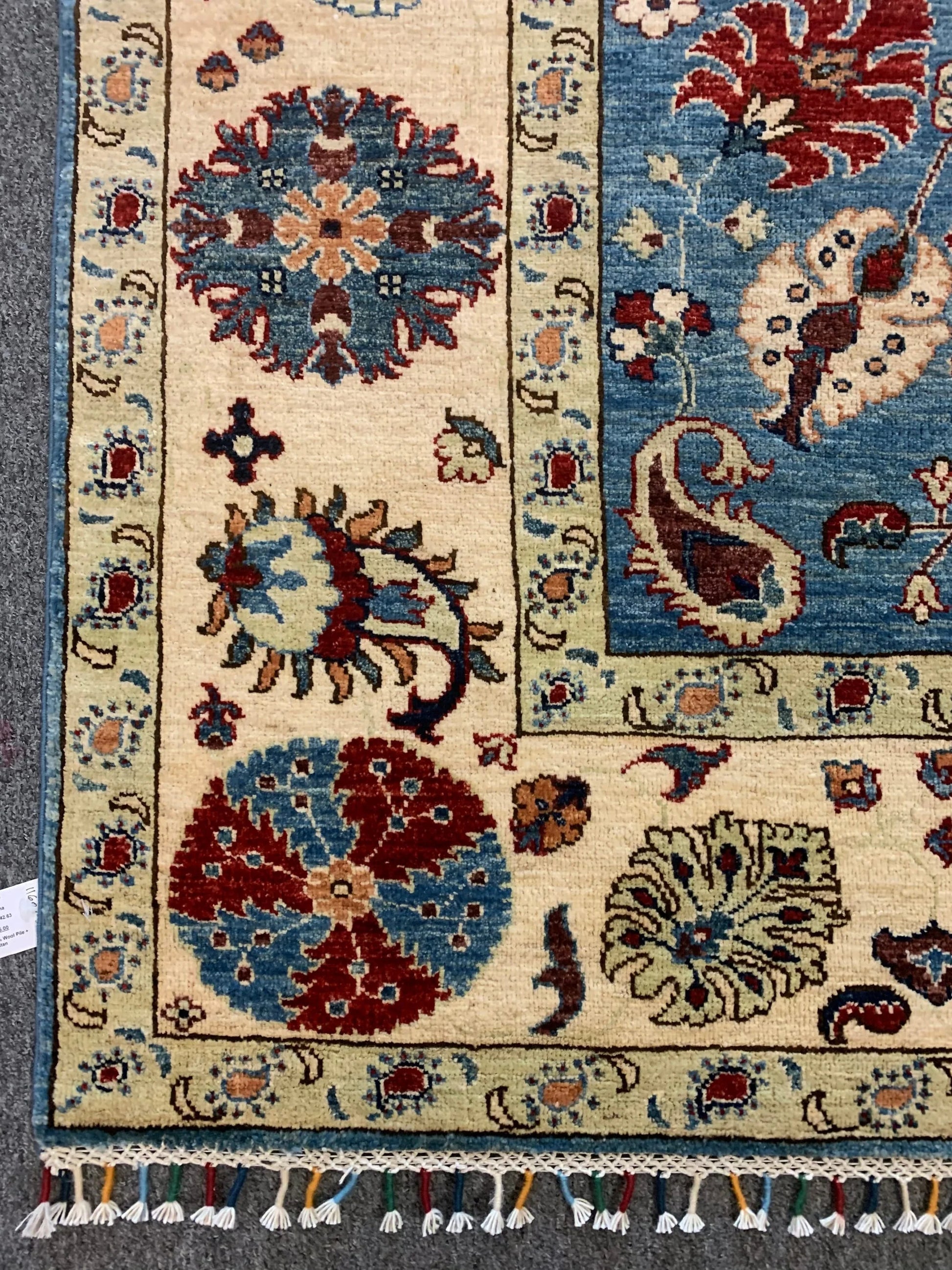 Light Blue Floral Mahal 6X8 Handmade Wool Rug # 11604