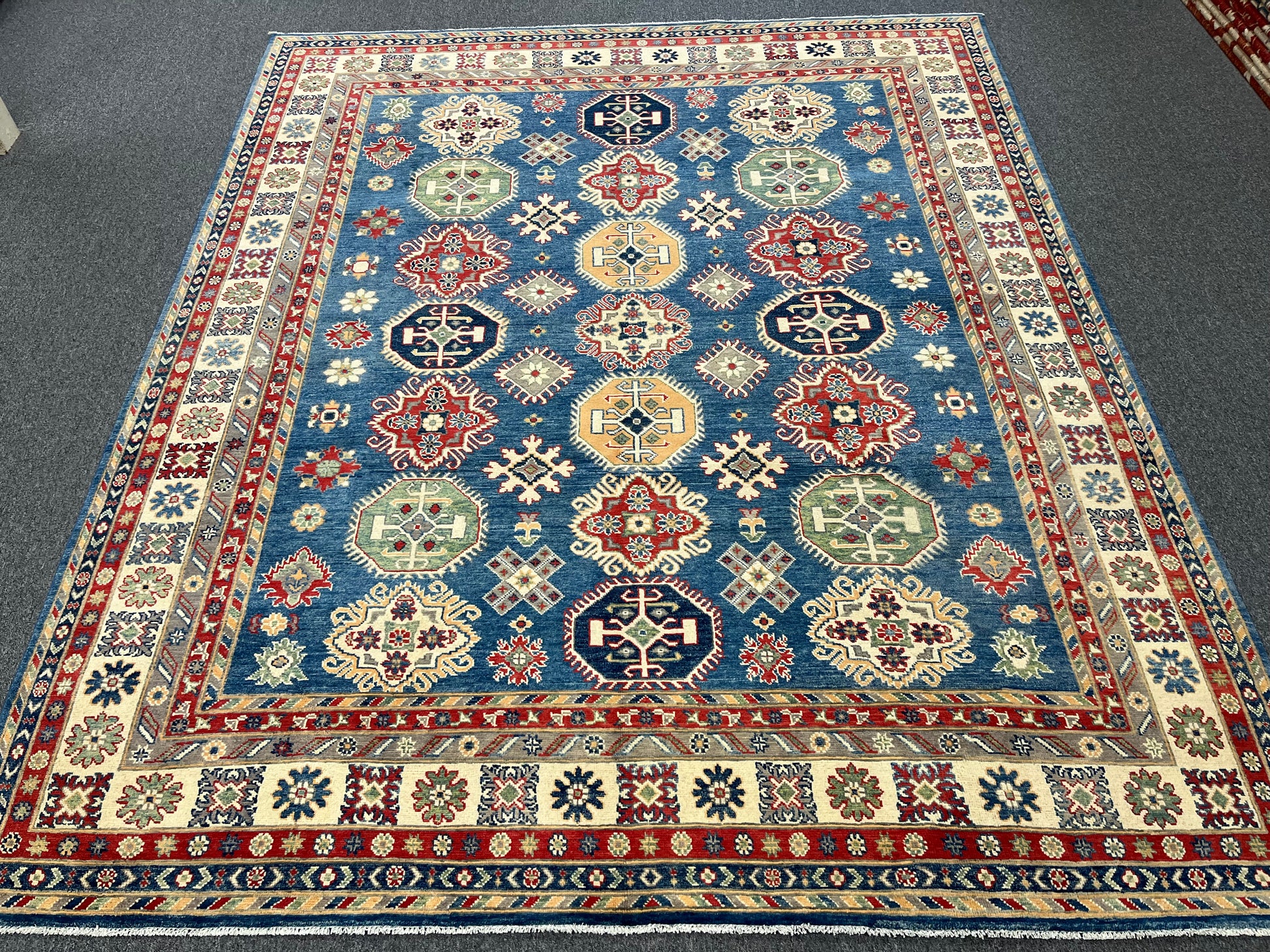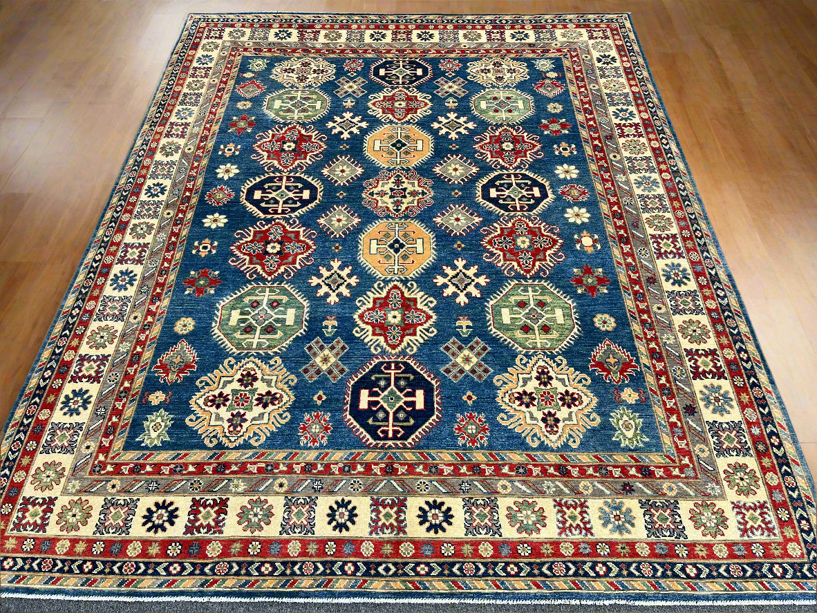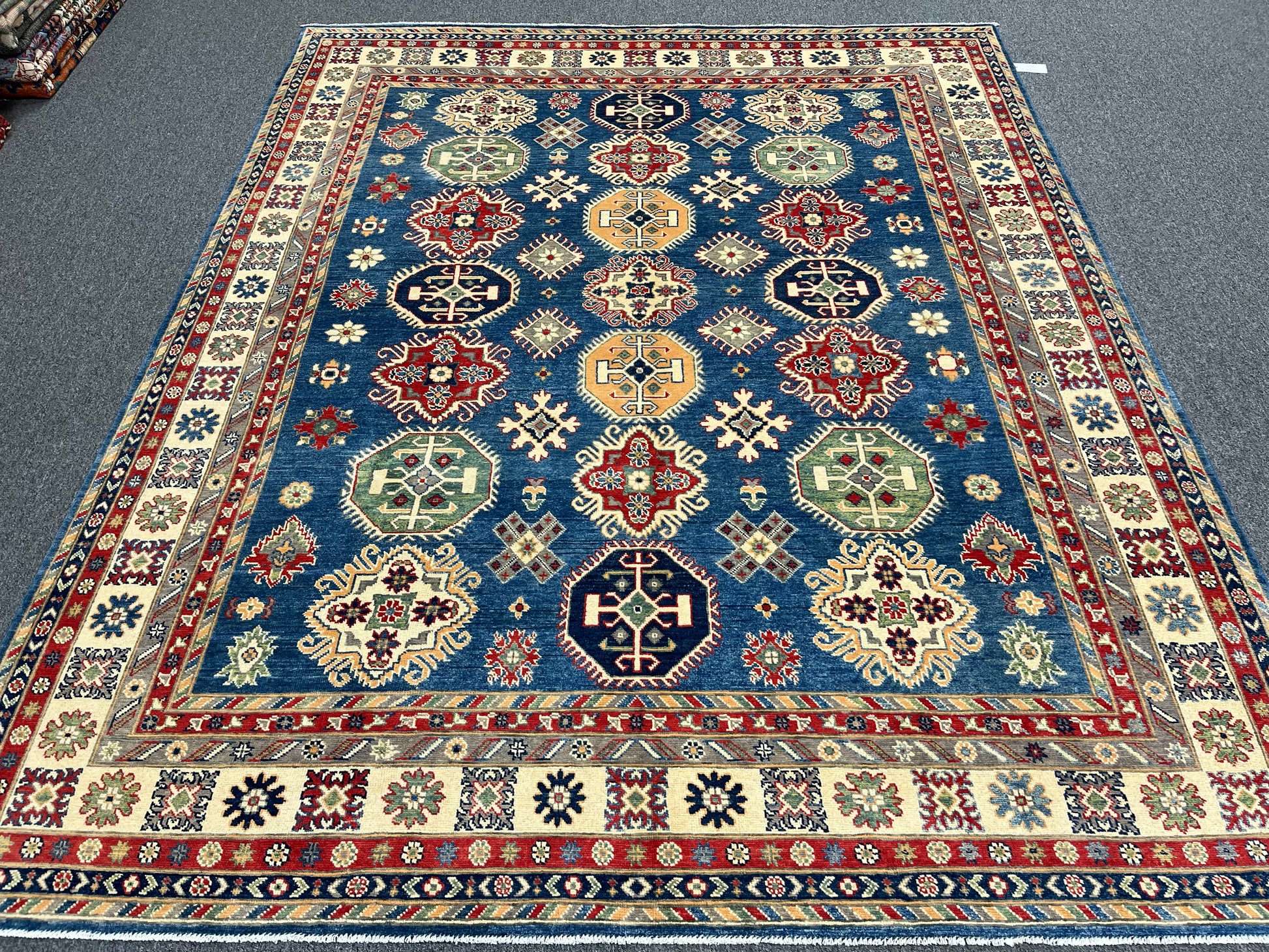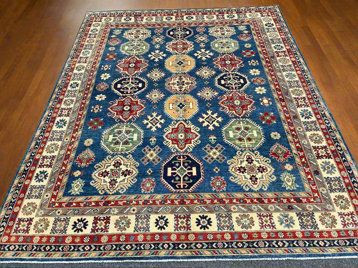 Light Blue Kazak Geometric 8X10 Handmade Wool Rug # 13661