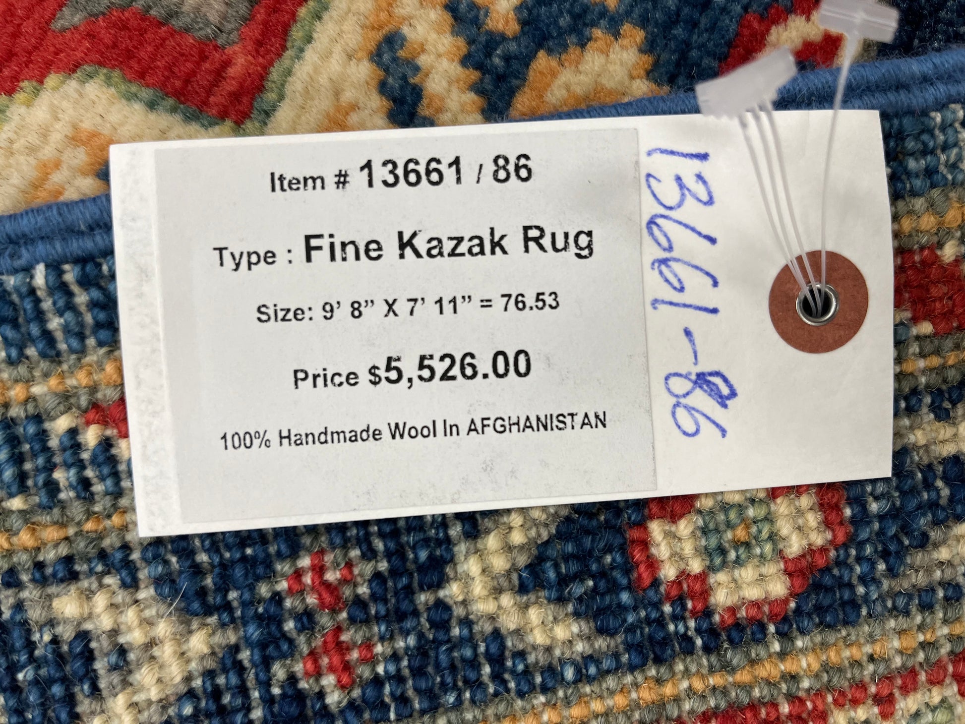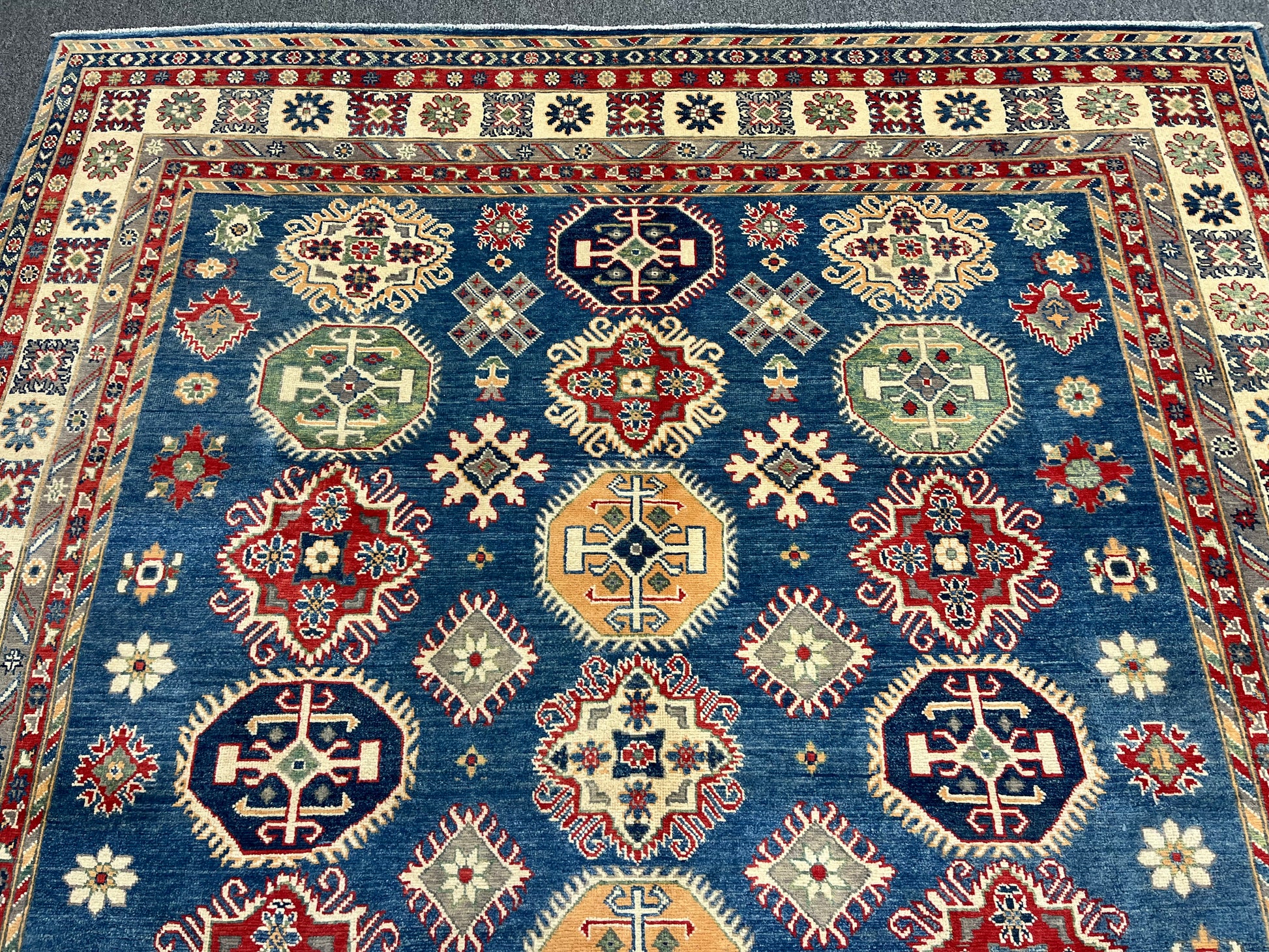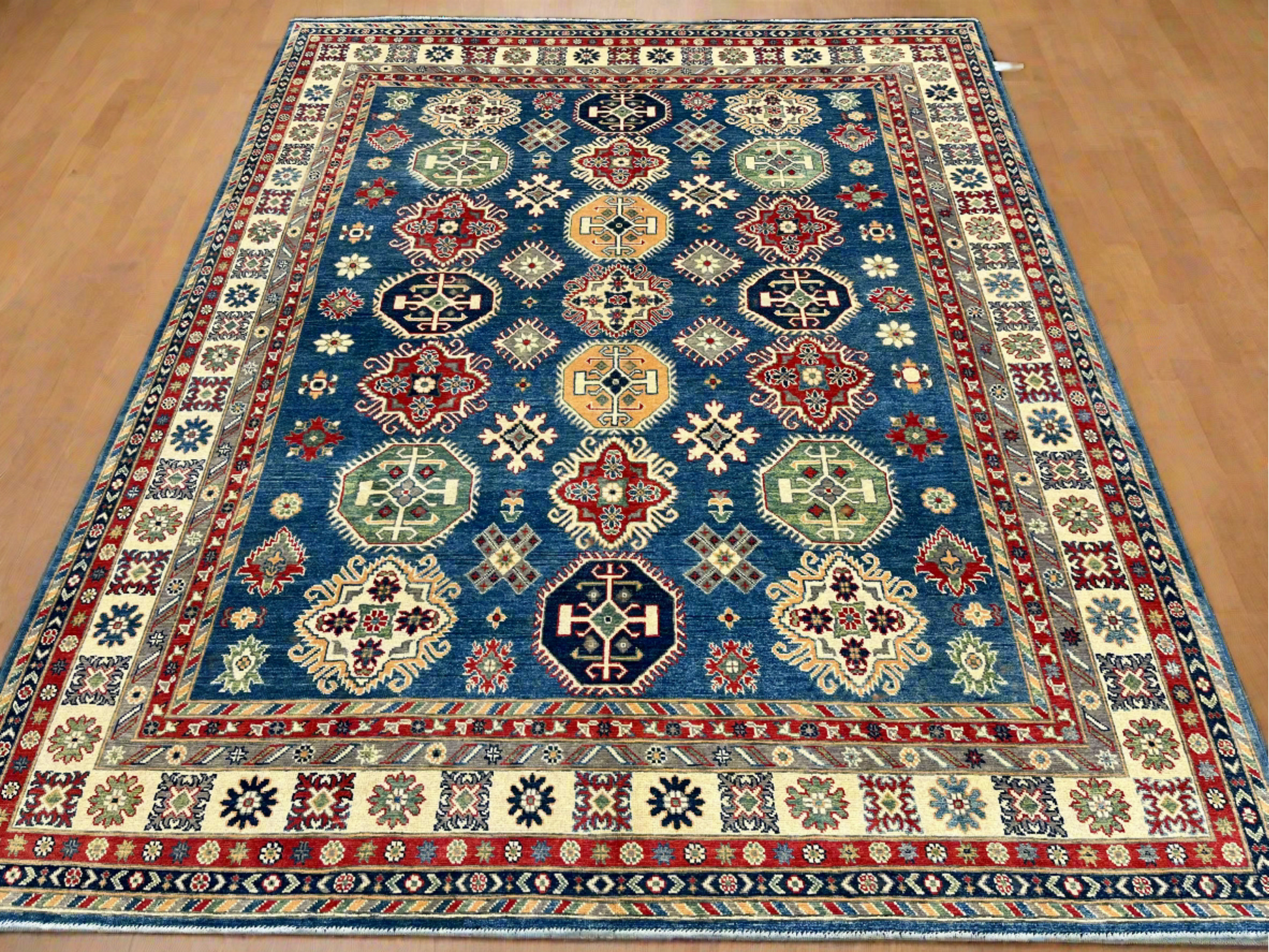 Light Blue Kazak Geometric 8X10 Handmade Wool Rug # 13661