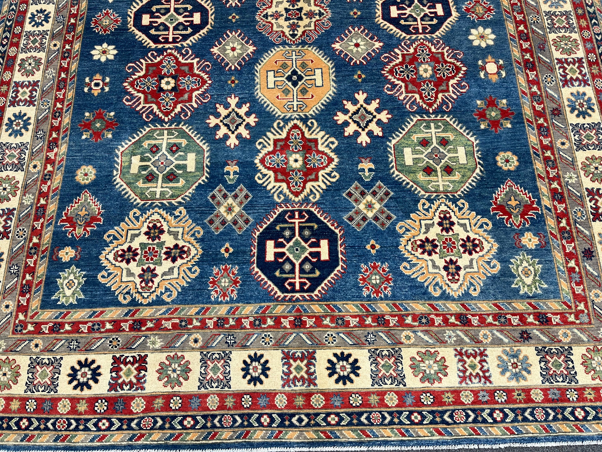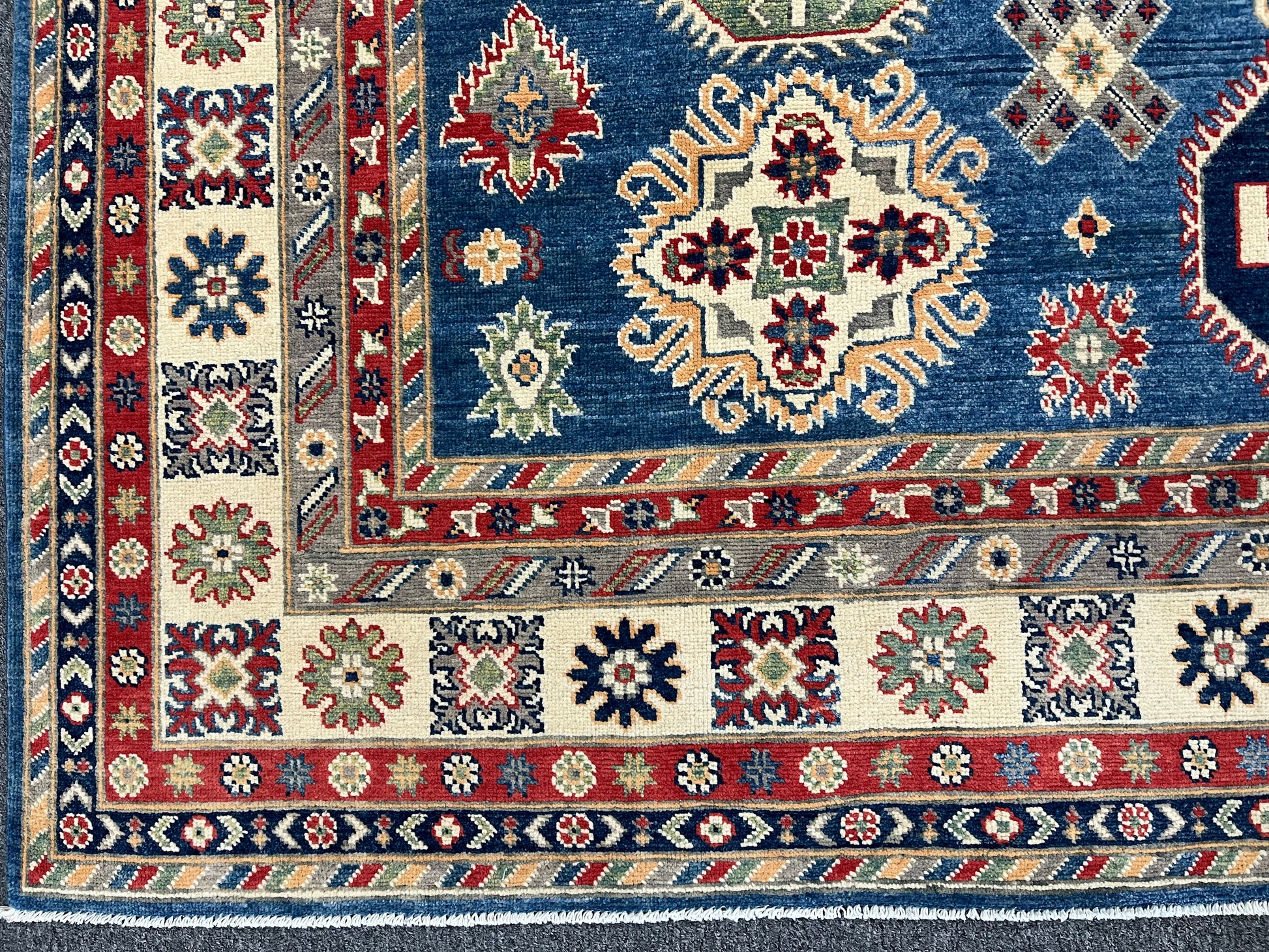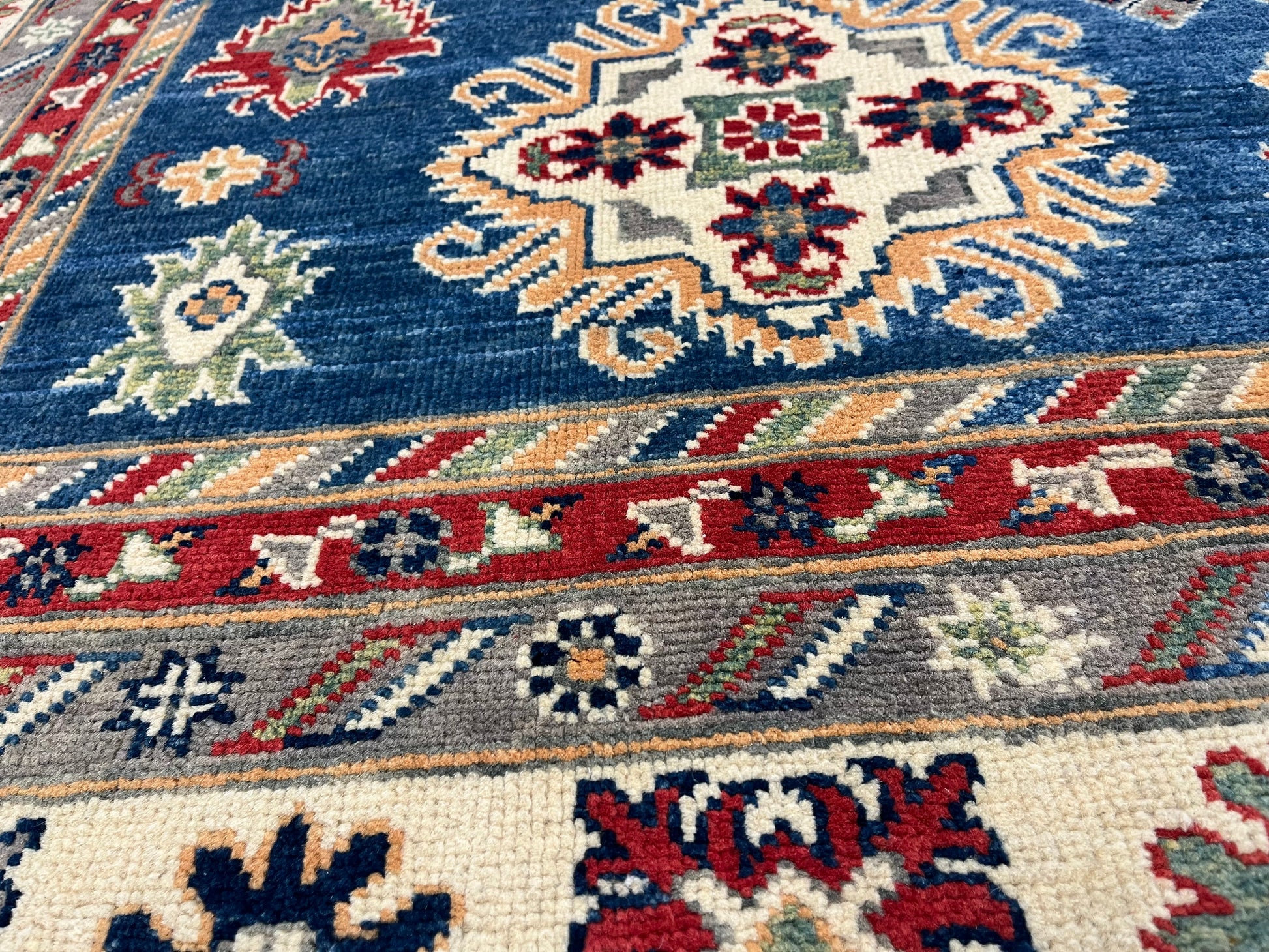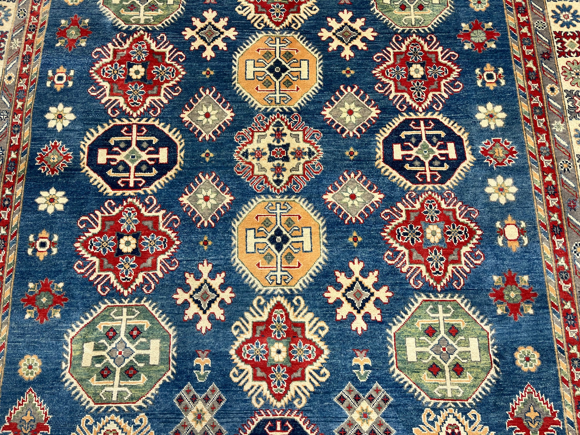 Light Blue Kazak Geometric 8X10 Handmade Wool Rug # 13661