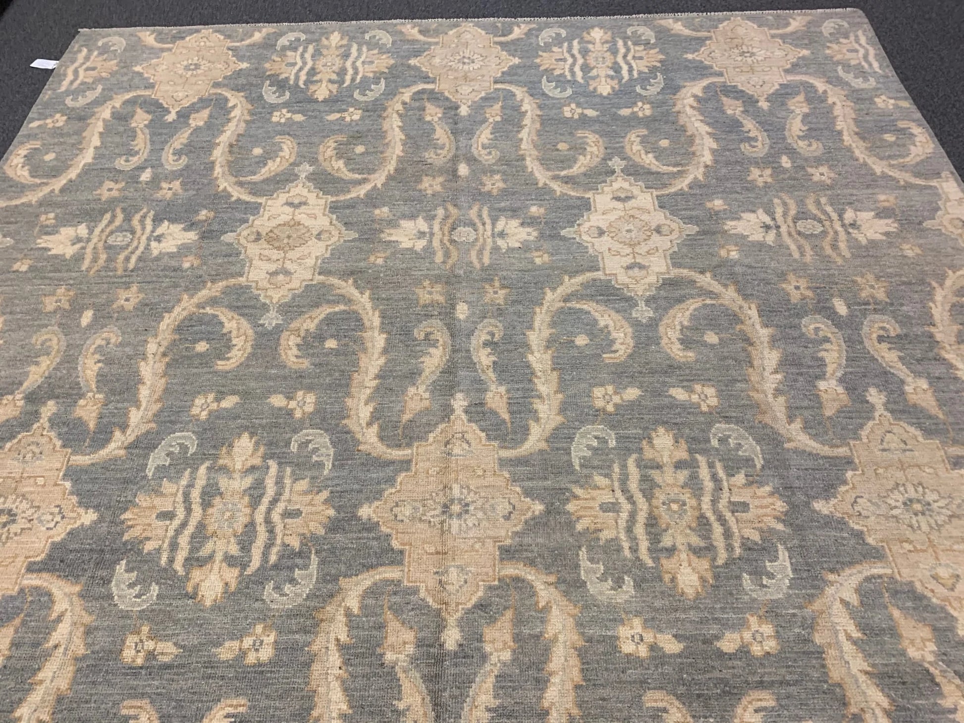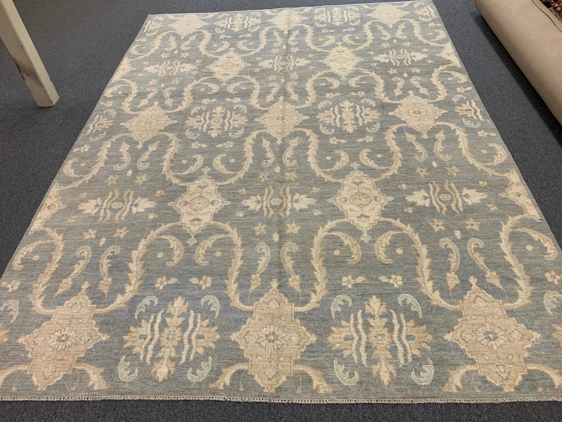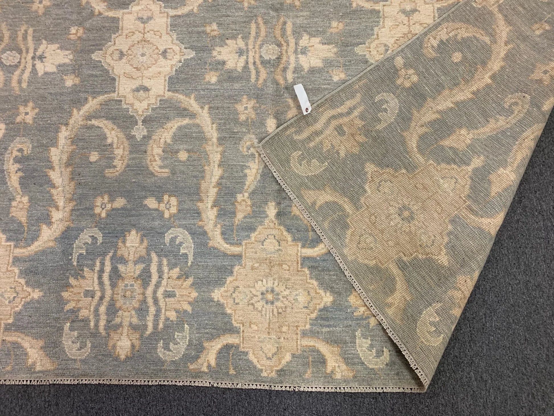 Light Gray Blue Oushak 9X12 Handmade Wool Rug # 10693