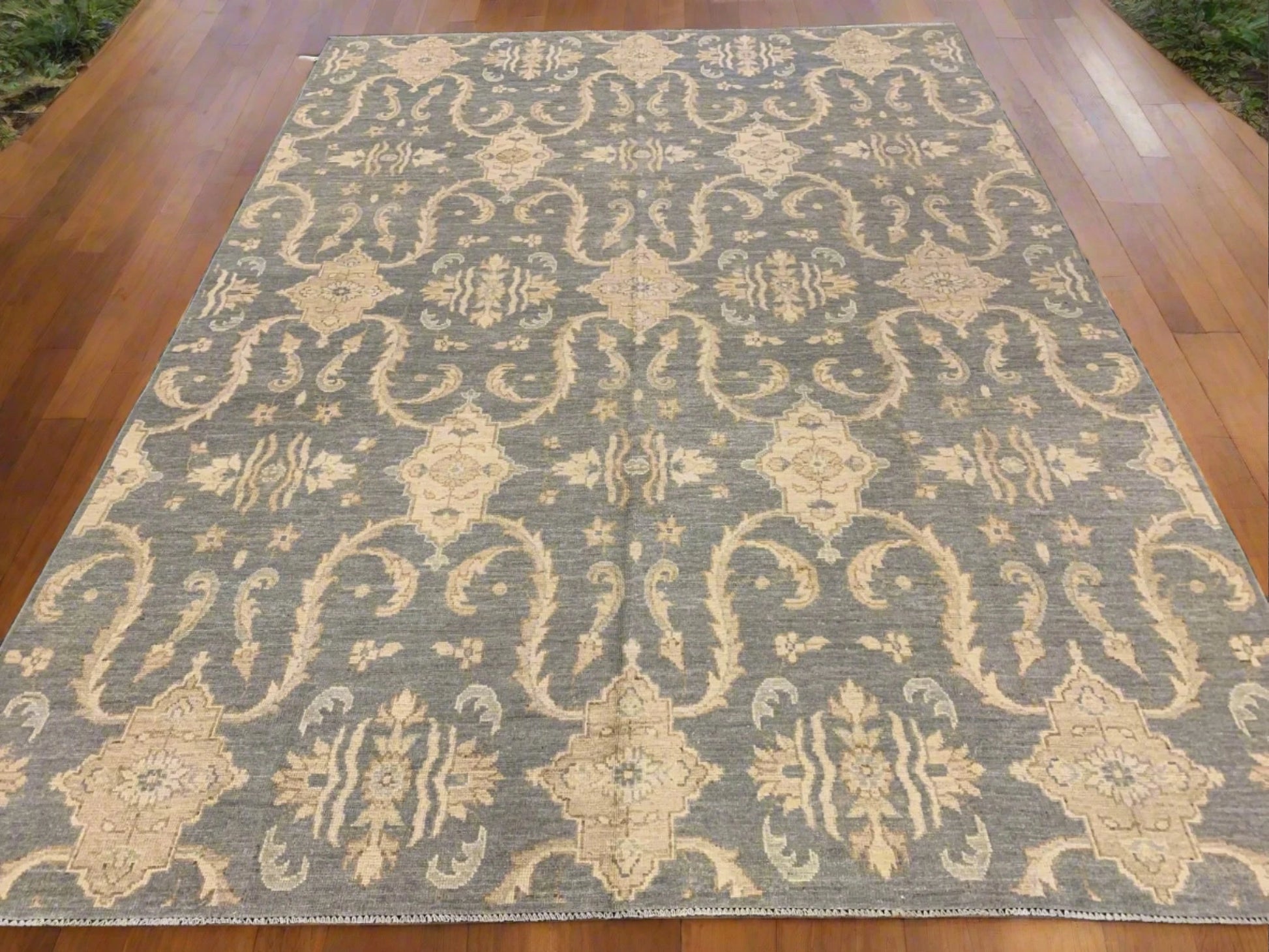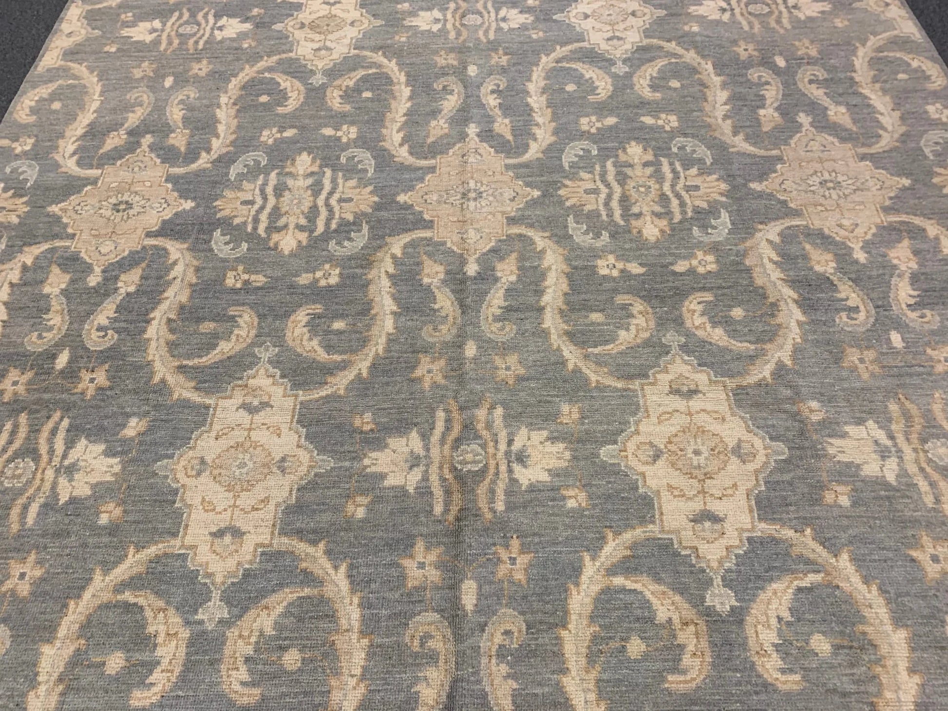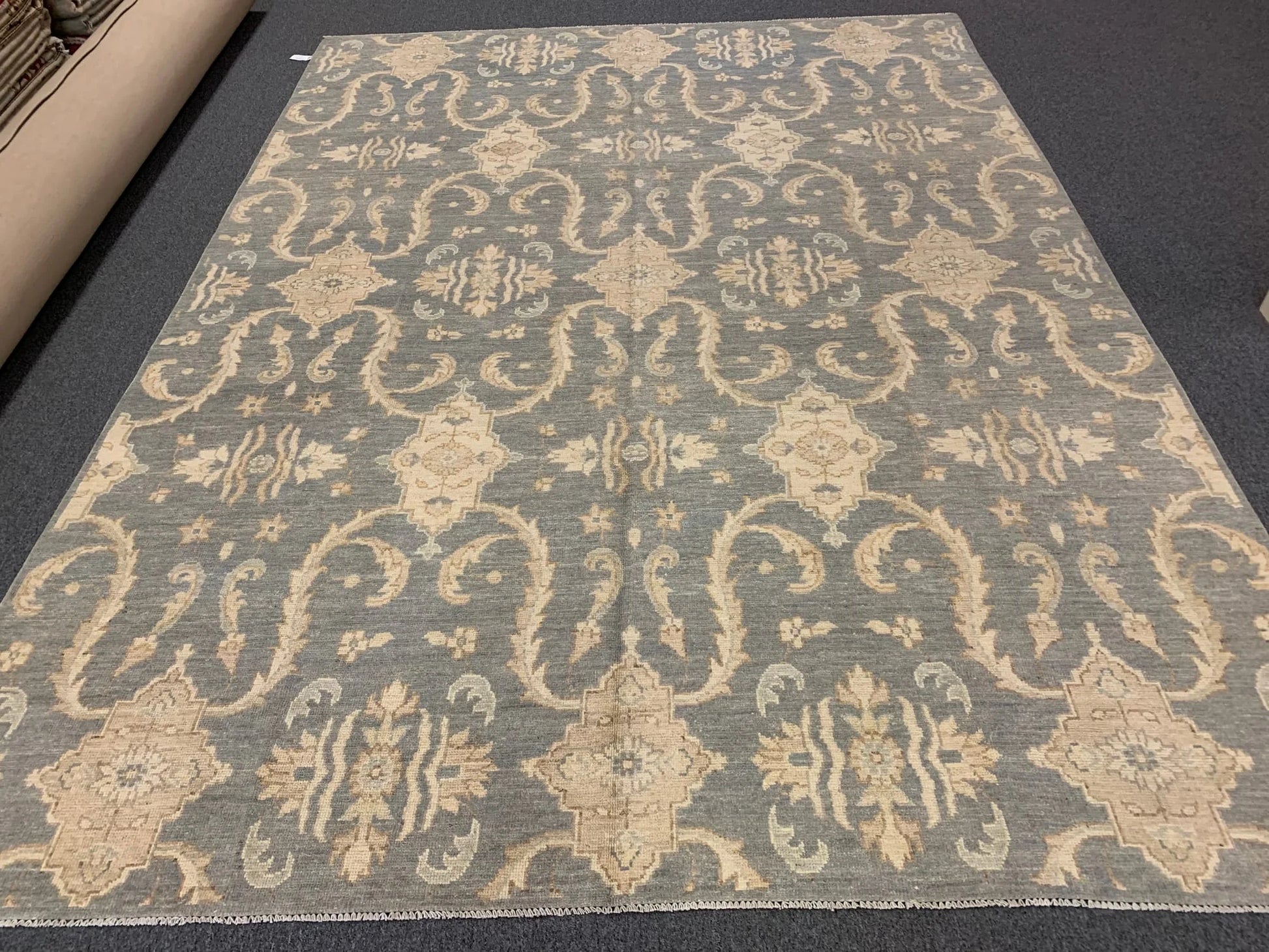 Light Gray Blue Oushak 9X12 Handmade Wool Rug # 10693