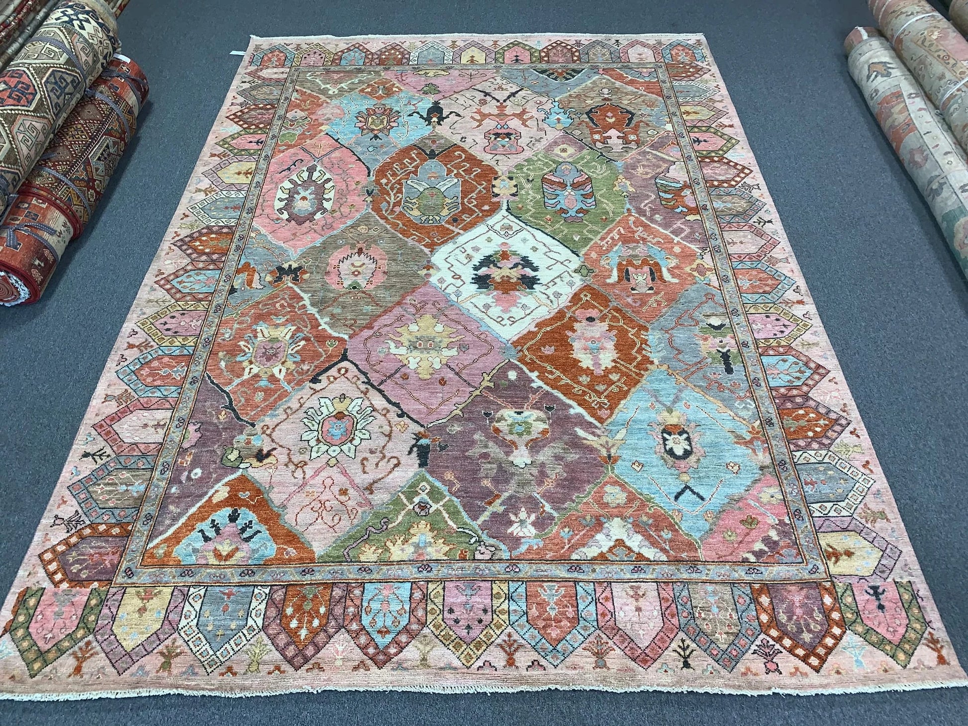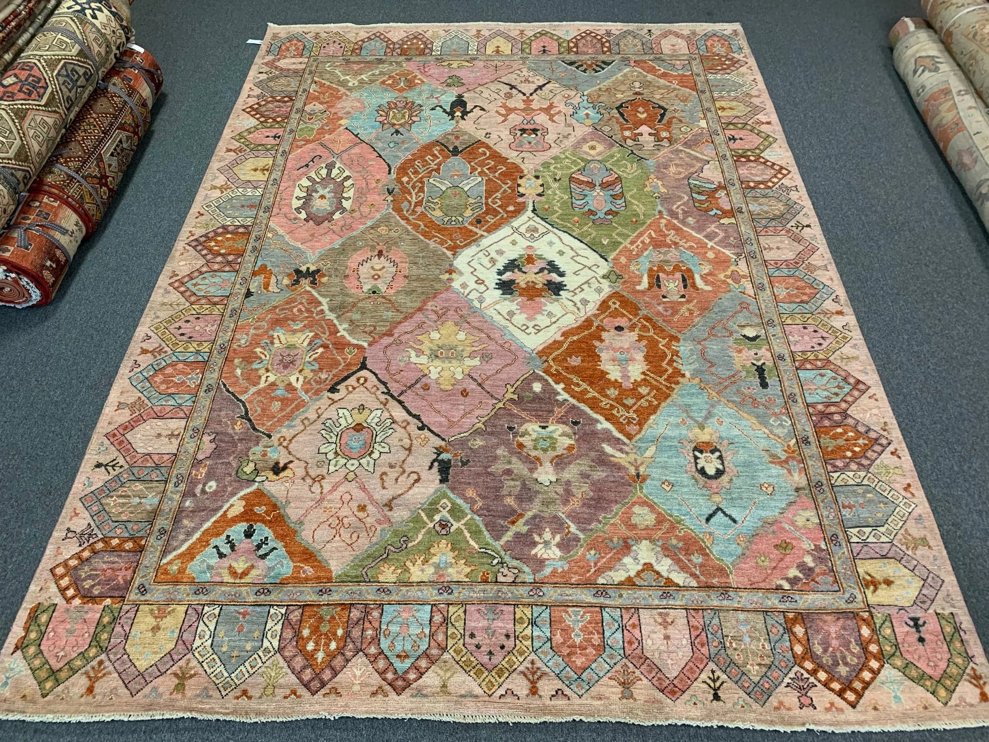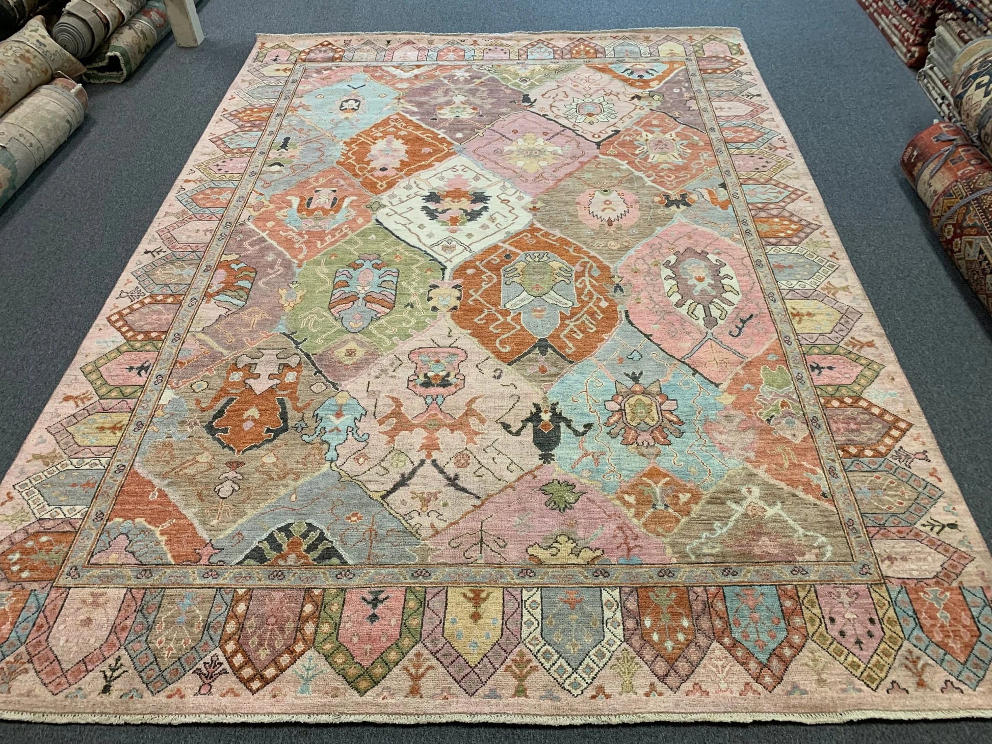 Multicolor Oushak 9X12 Handmade Wool Rug # 12199