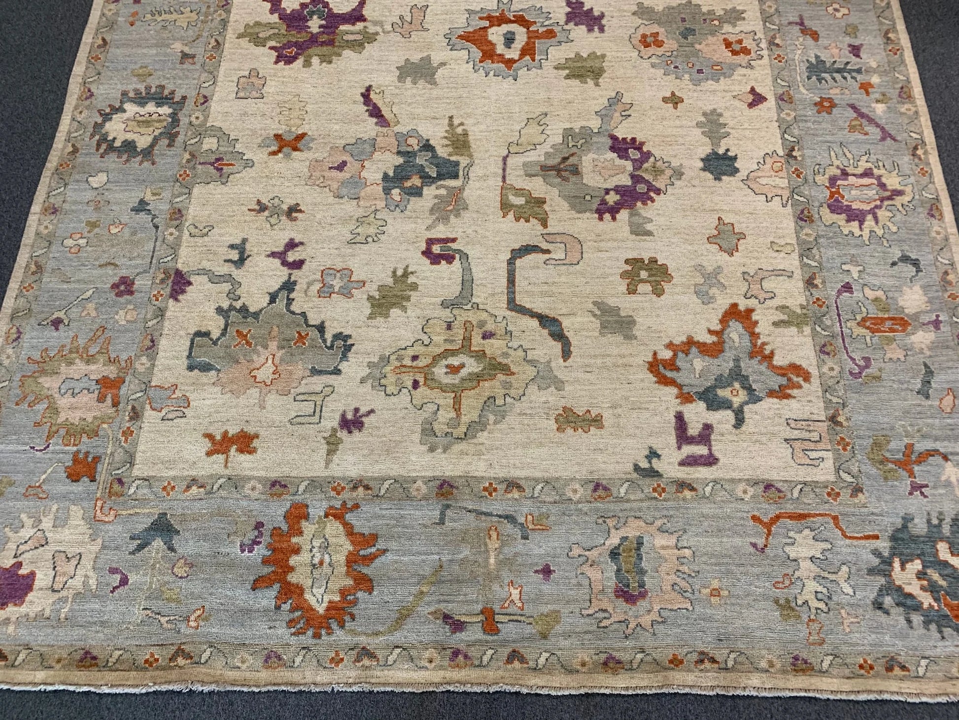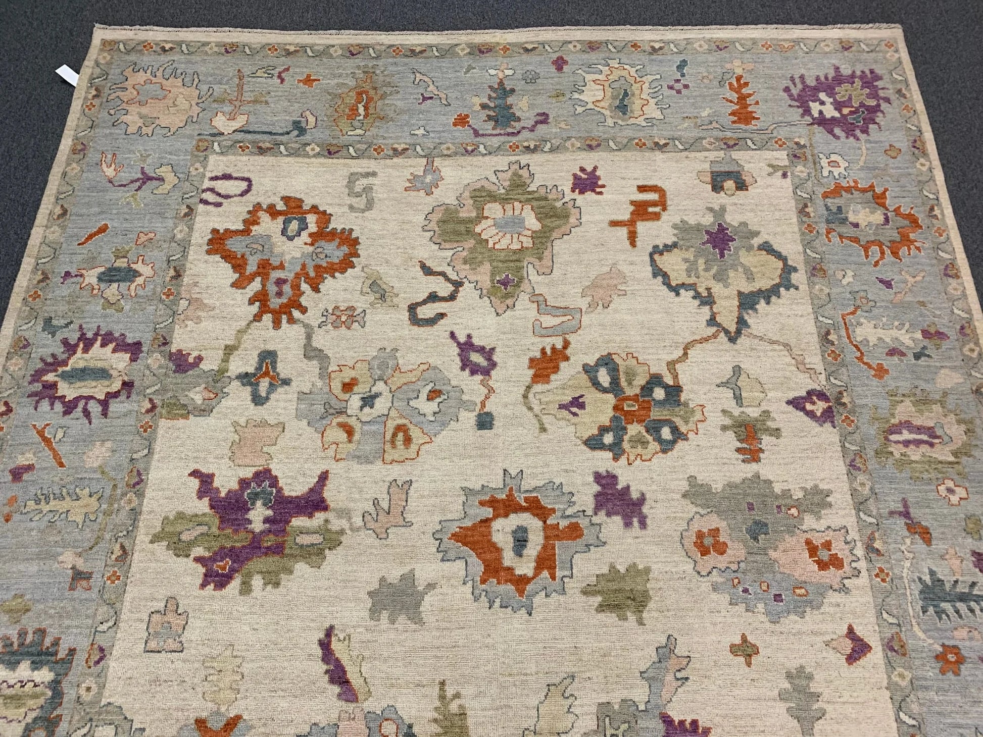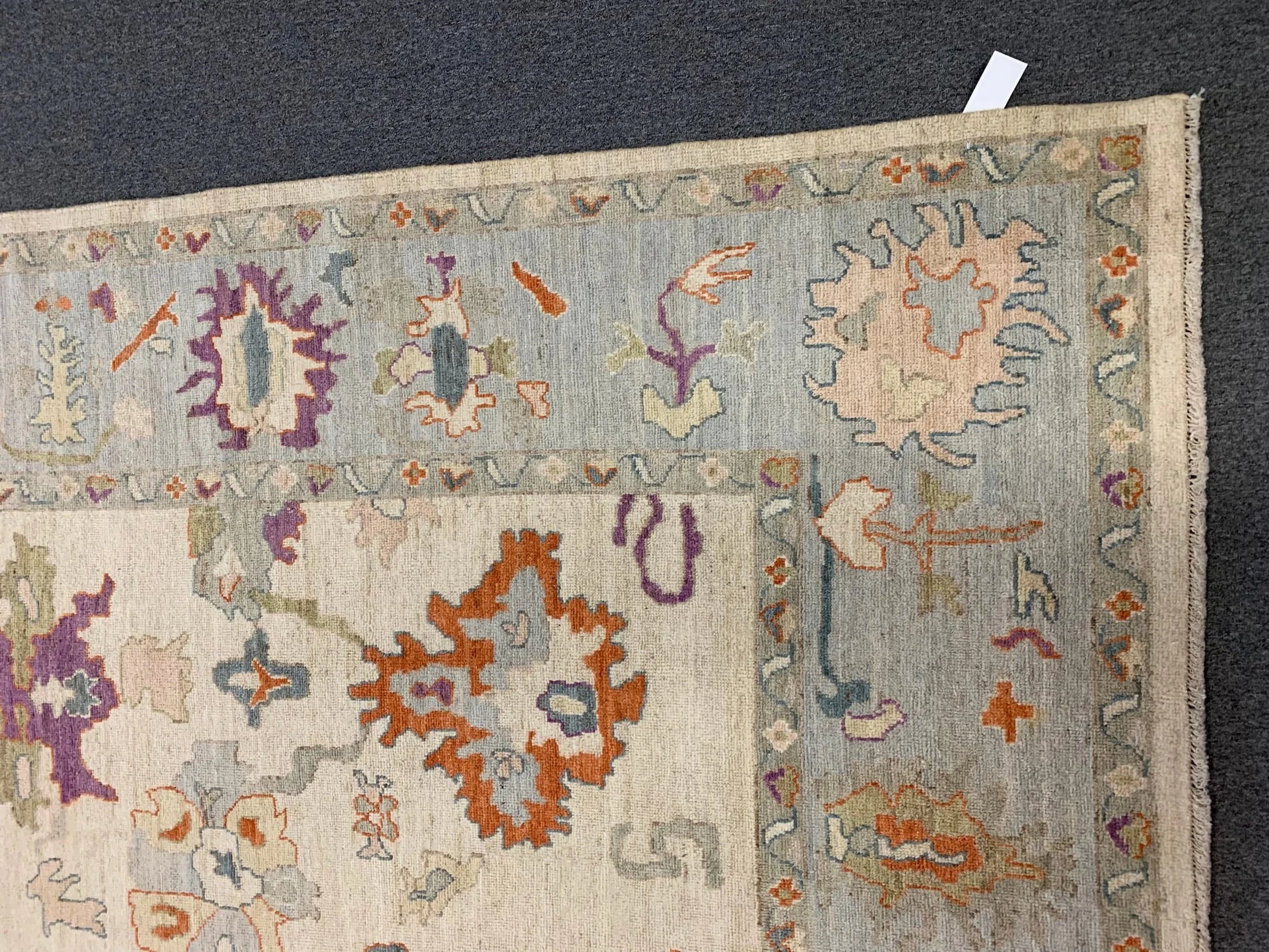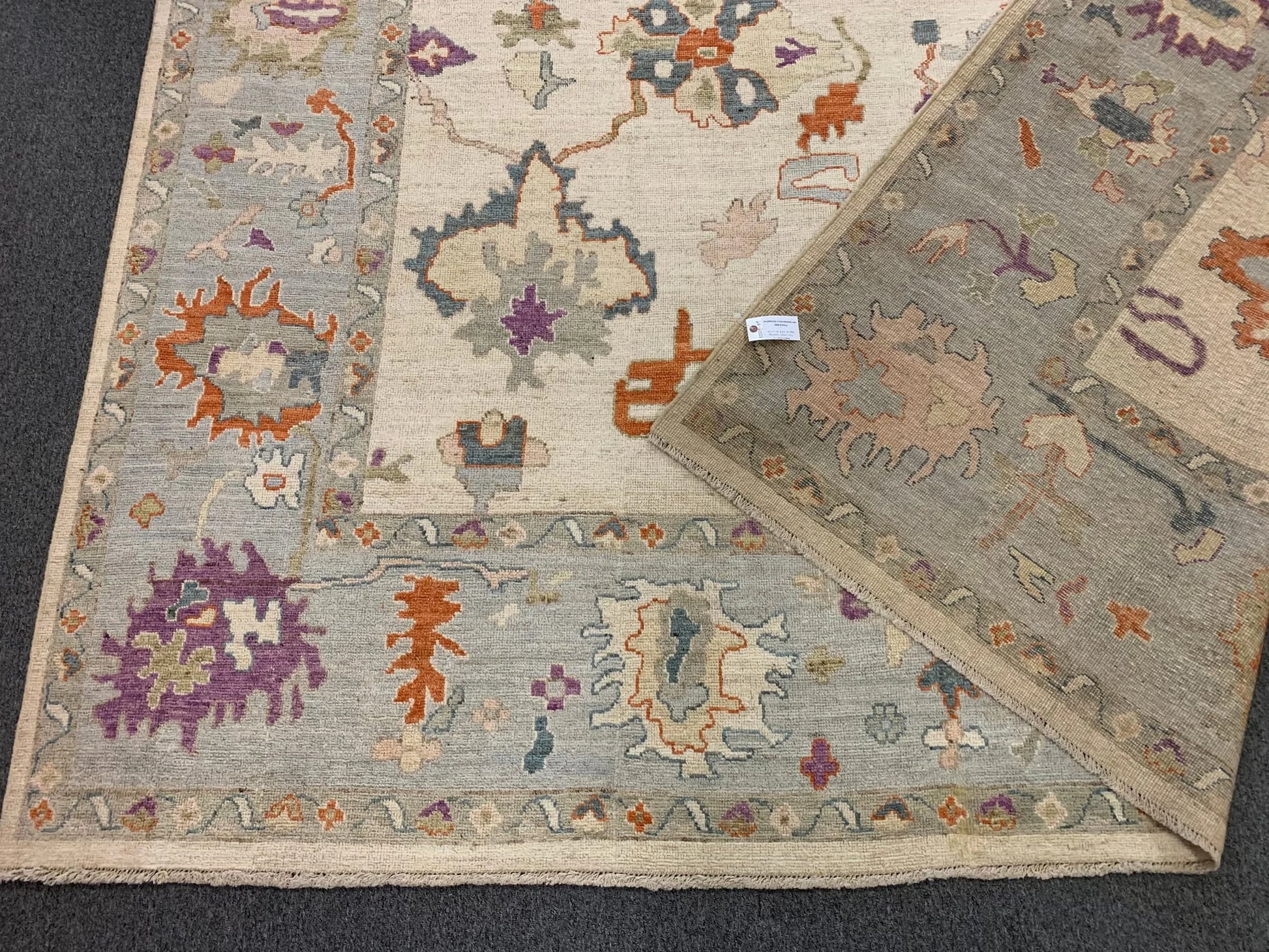 Oushak Ivory/Gray 10X14 Handmade Wool Rug # 12229