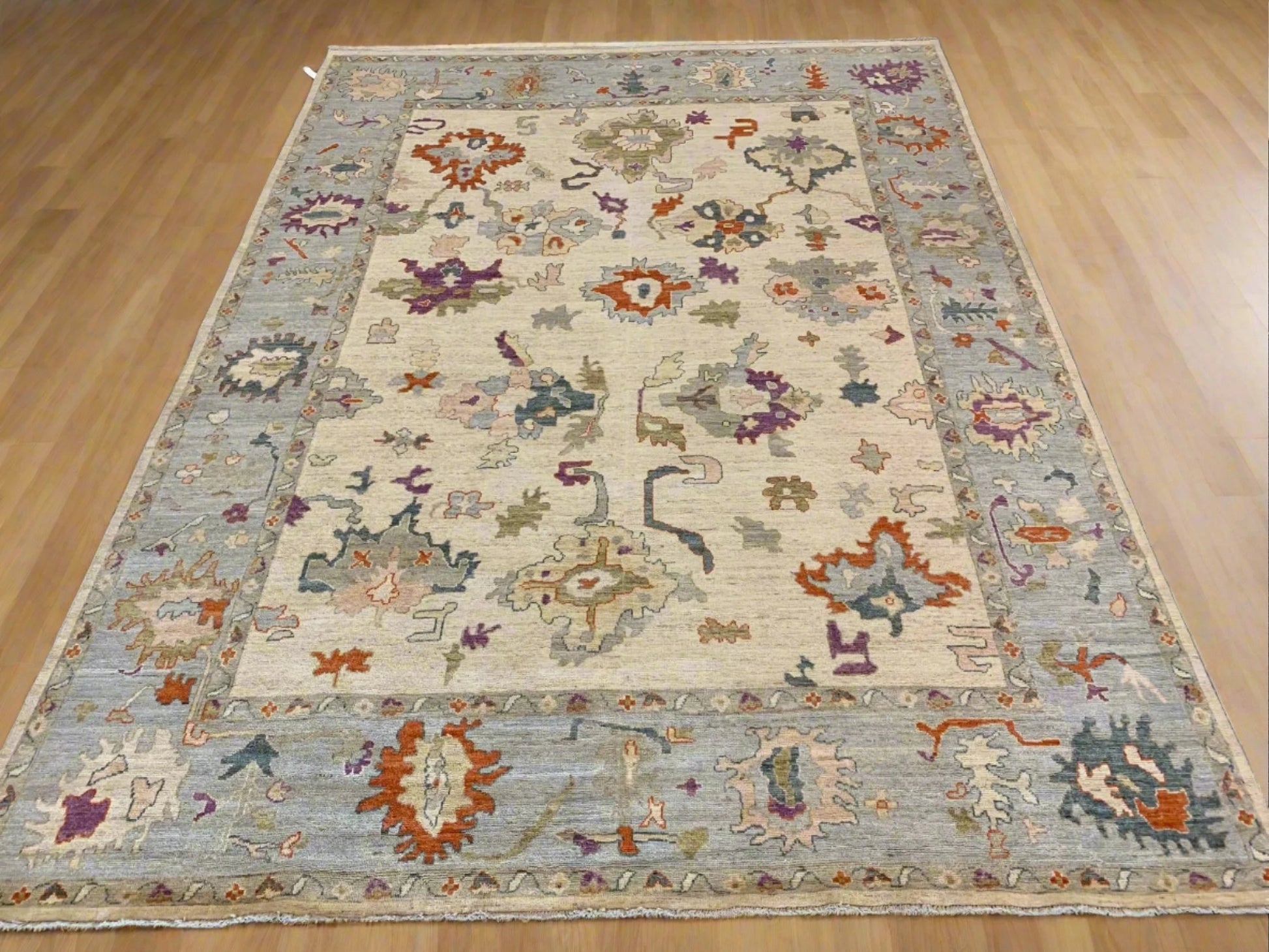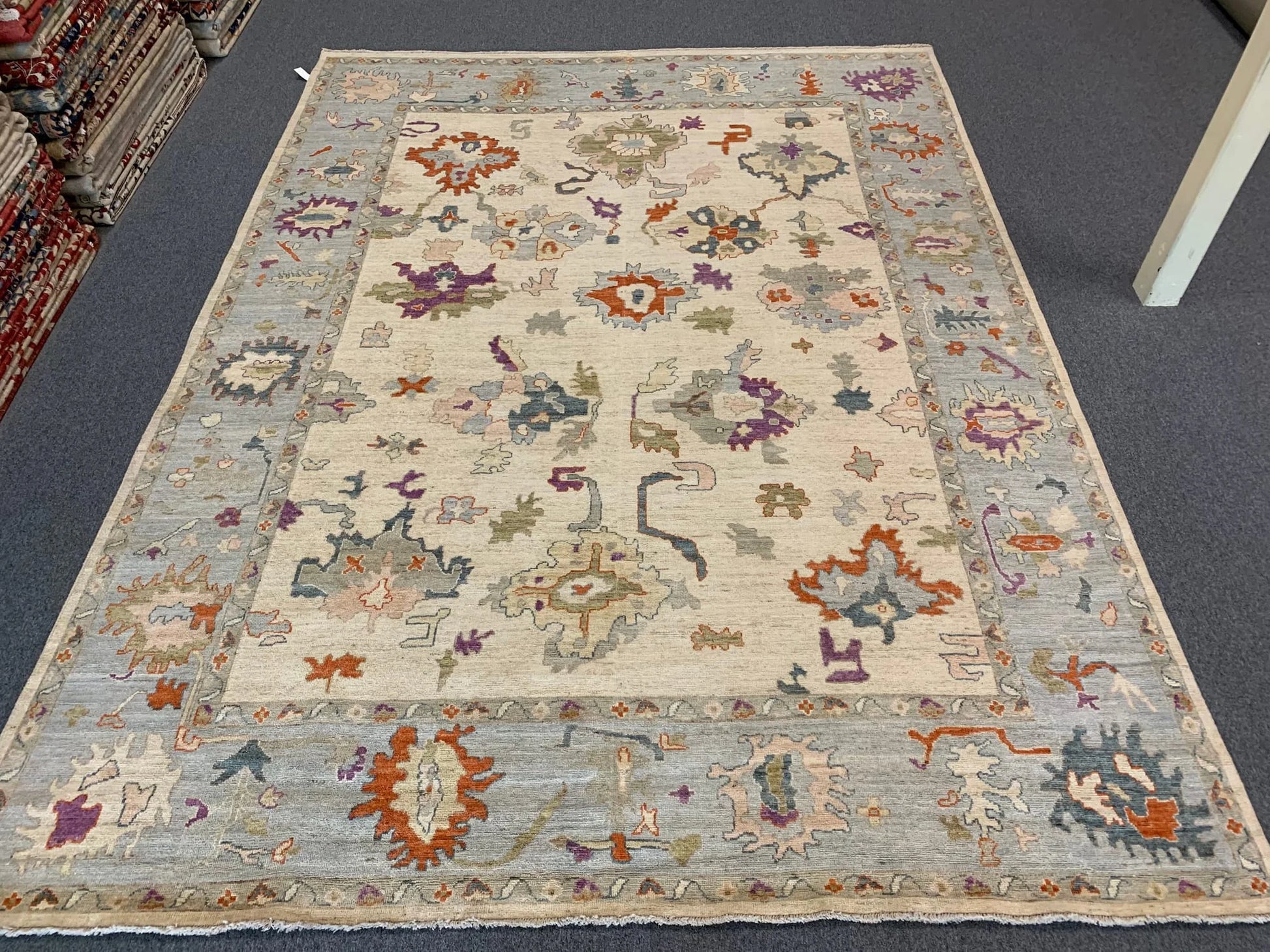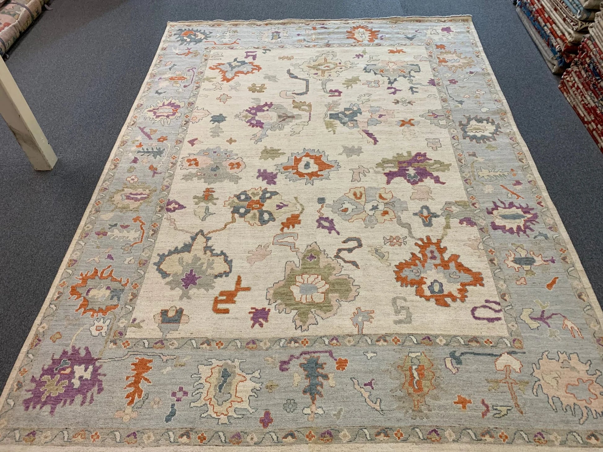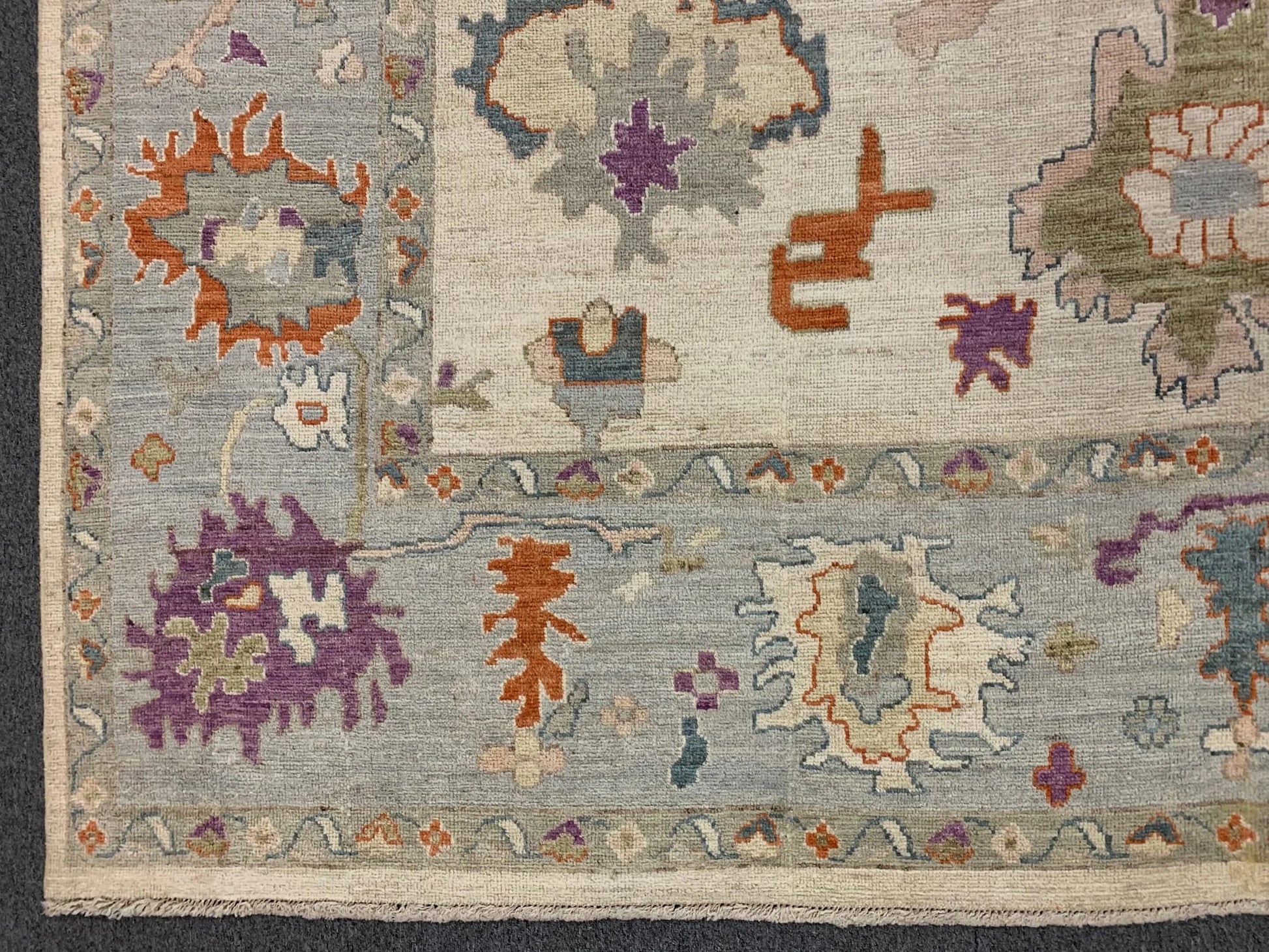 Oushak Ivory/Gray 10X14 Handmade Wool Rug # 12229