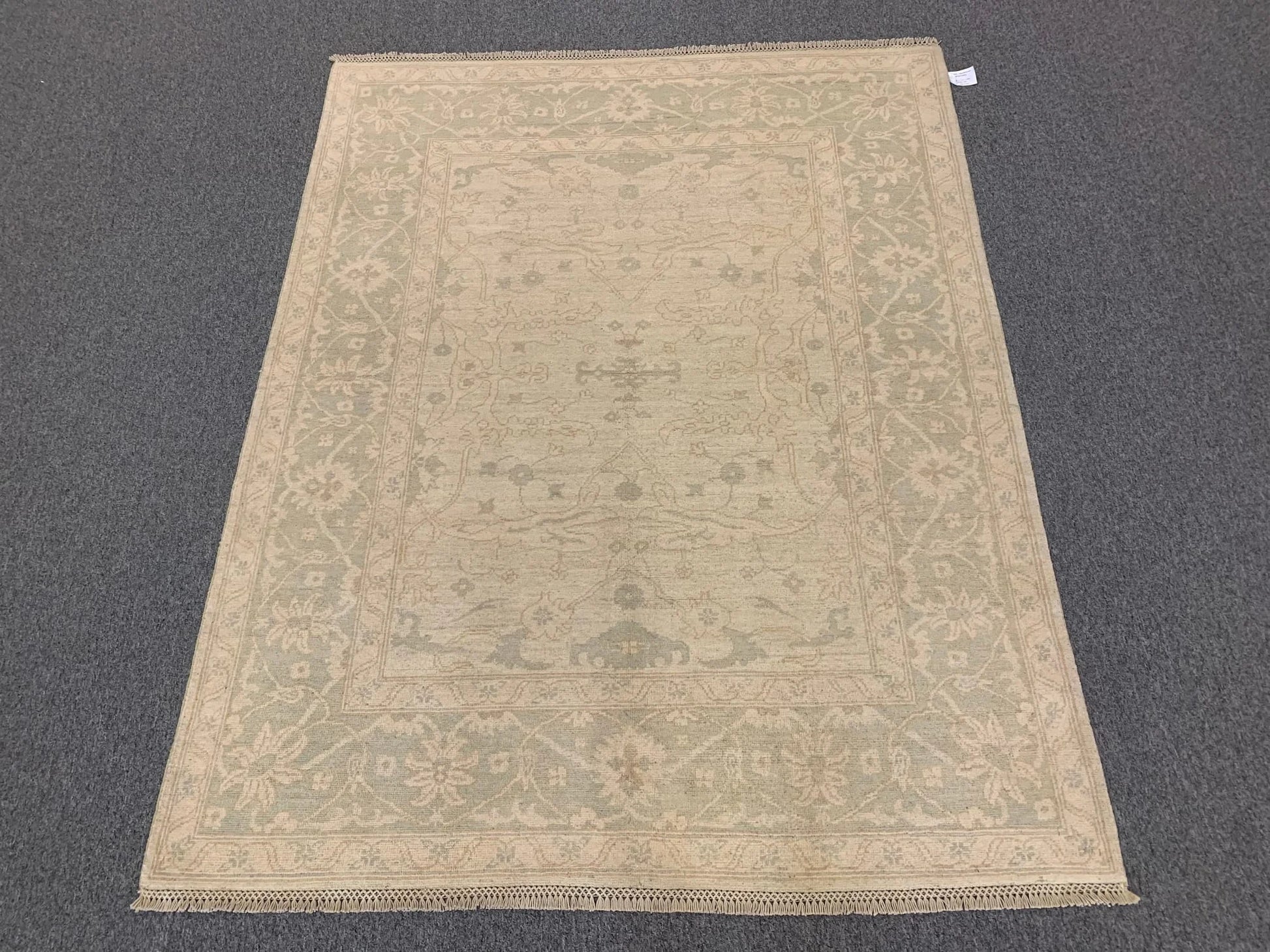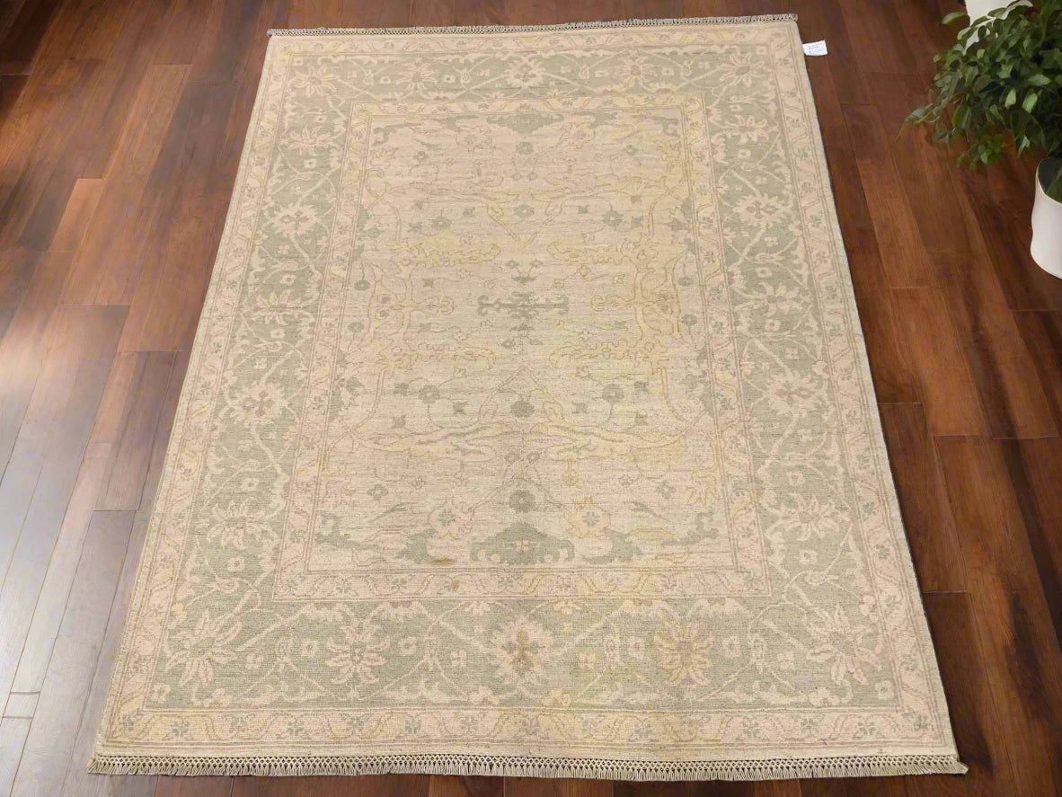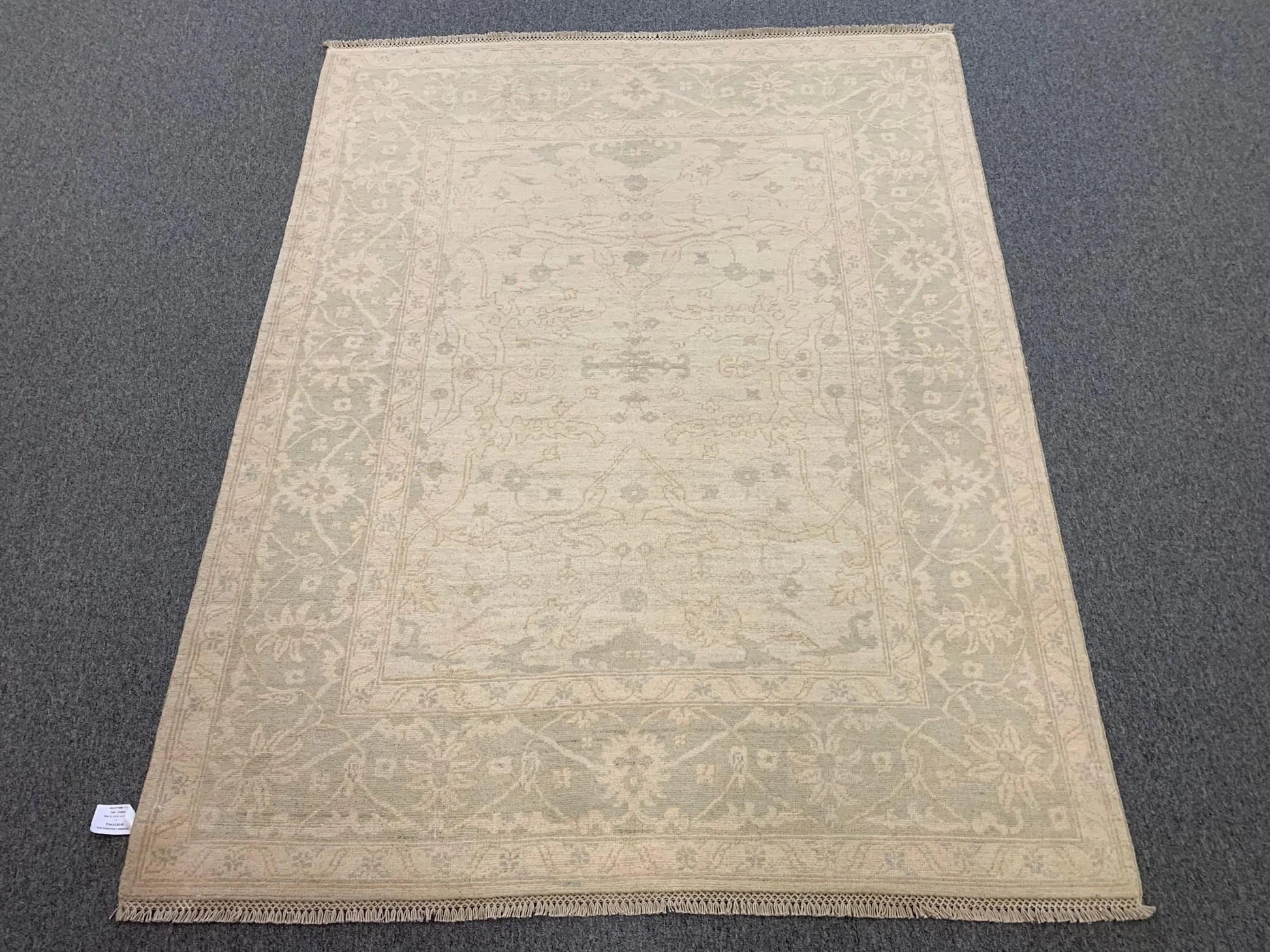 Oushak Ivory/Gray 5X7 Handmade Wool Rug # 11560