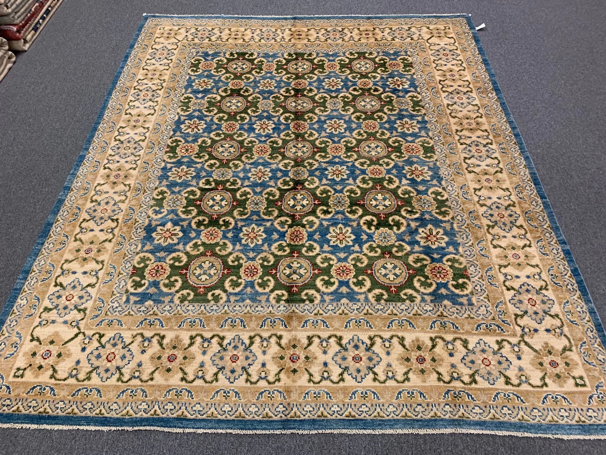 Oushak Light Blue/Beige 8X10 Handmade Wool Rug # 11205