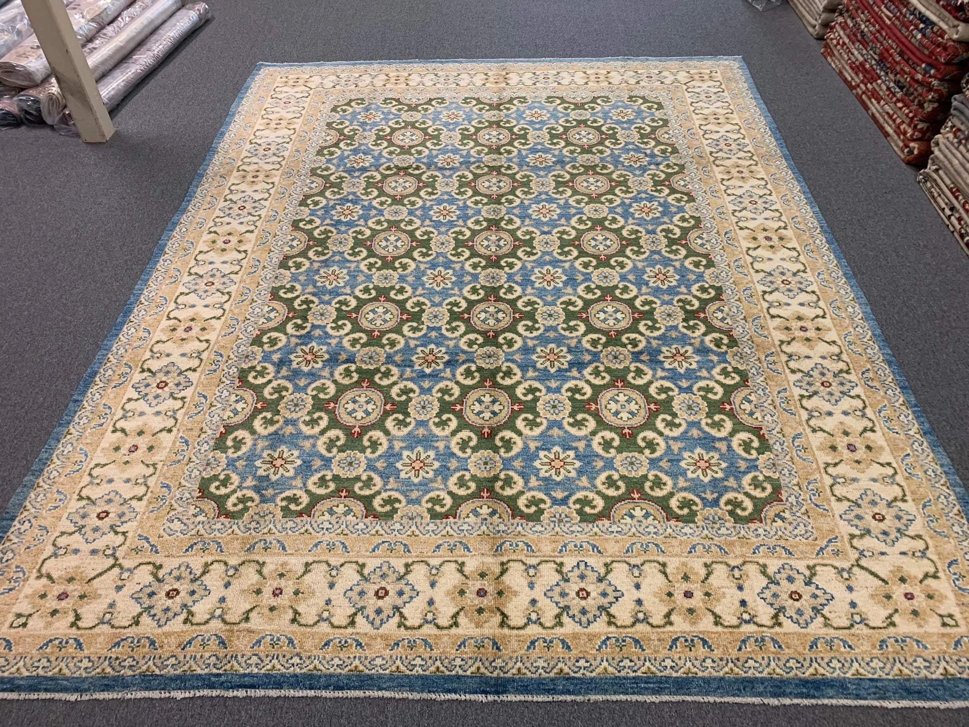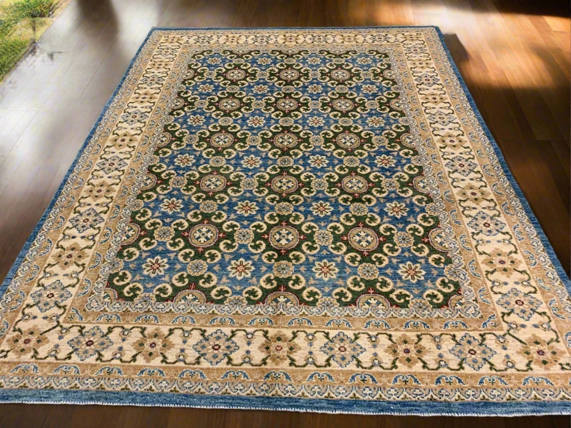 Oushak Light Blue/Beige 9X12 Handmade Wool Rug # 11204