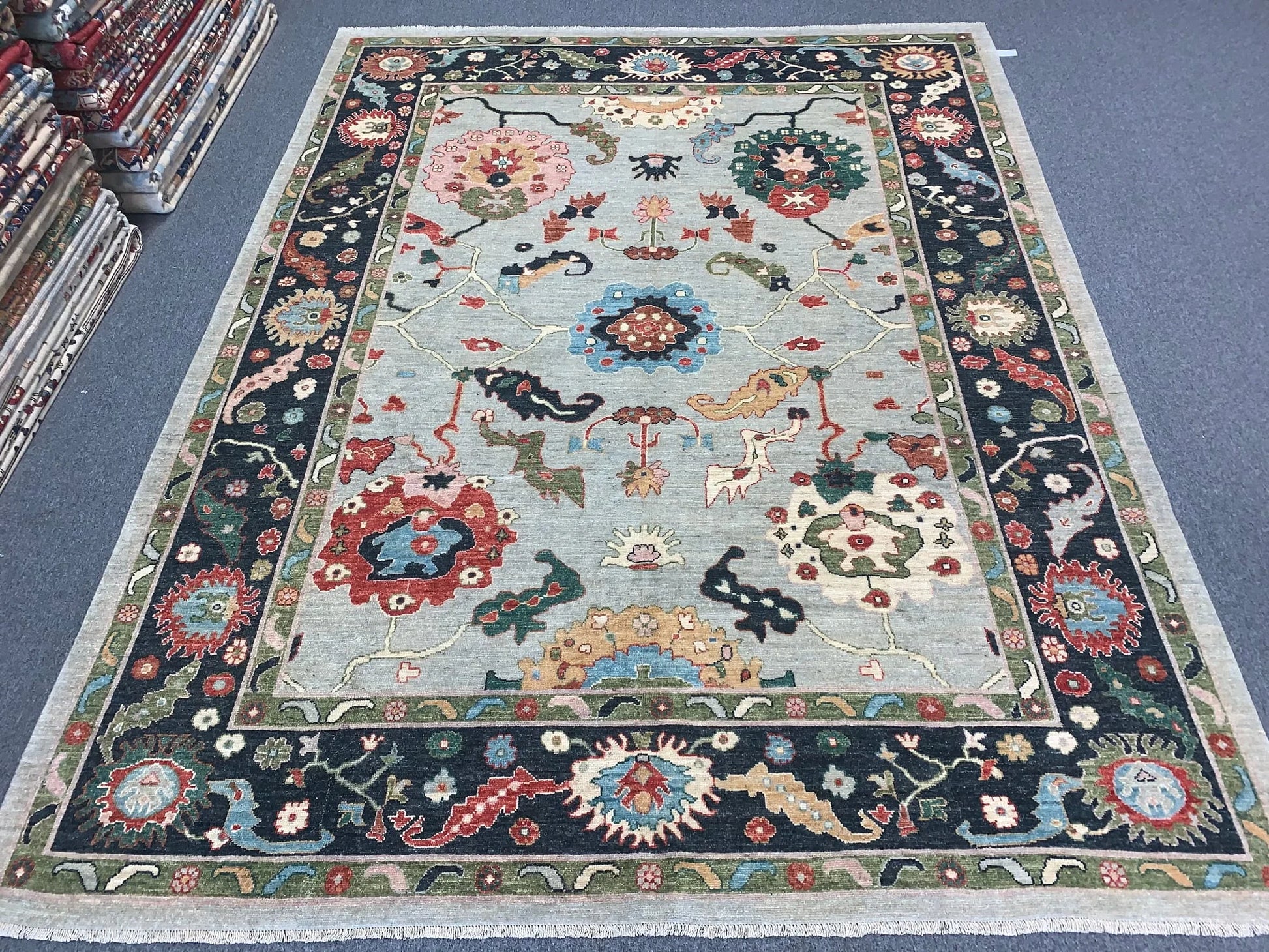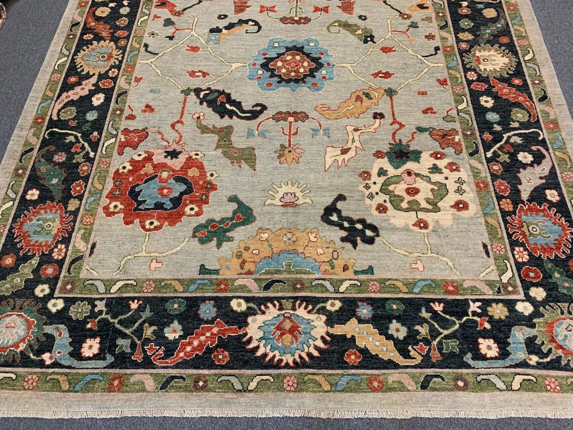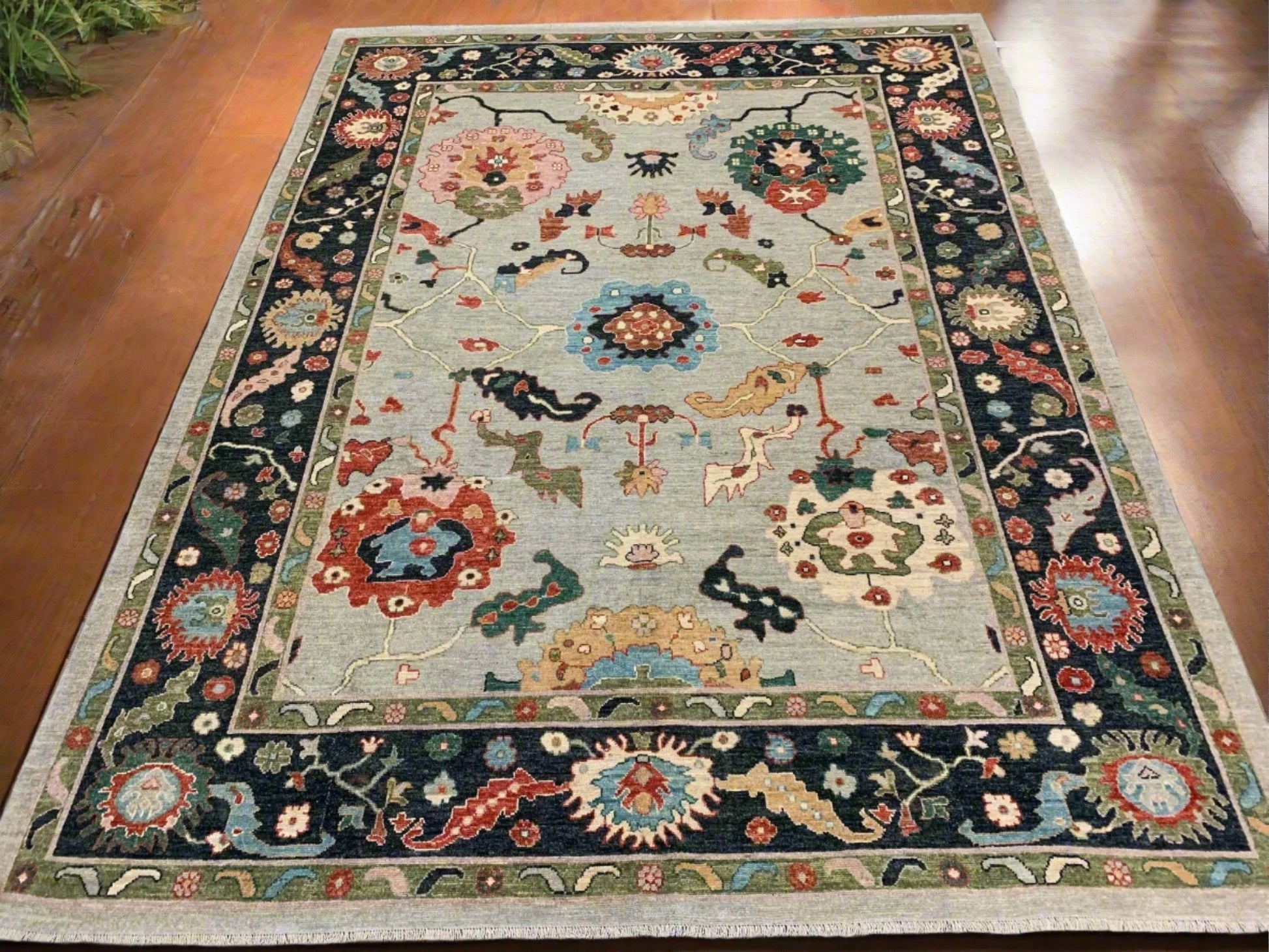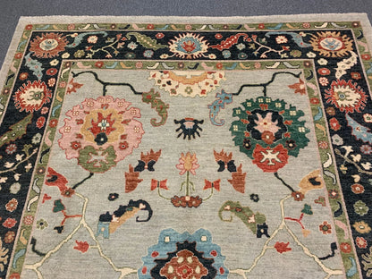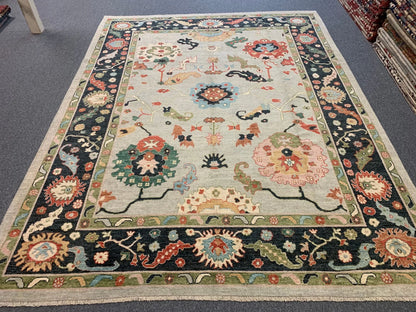 Oushak Soft Blue/Black 9X12 Handmade Wool Rug # 11903