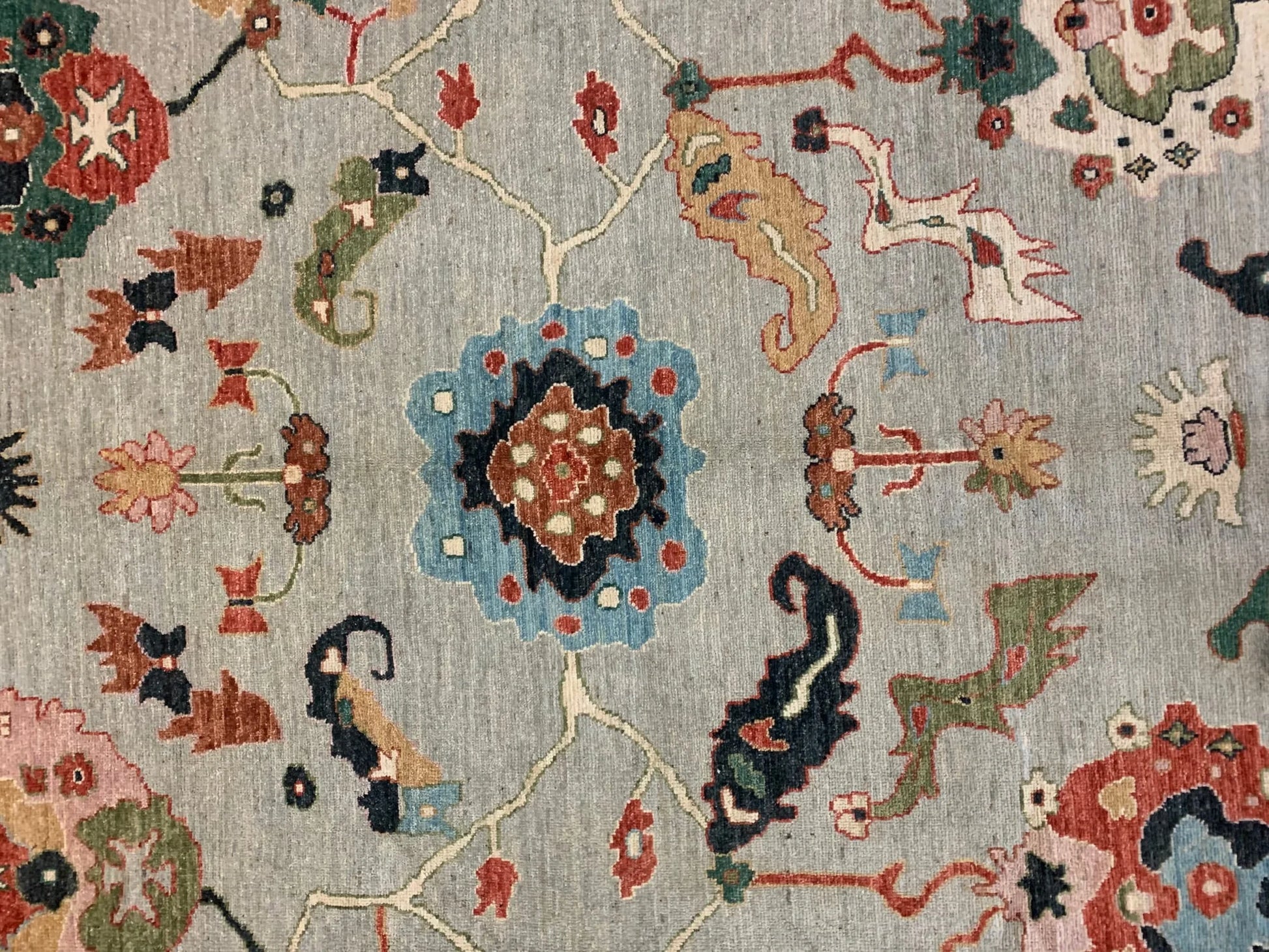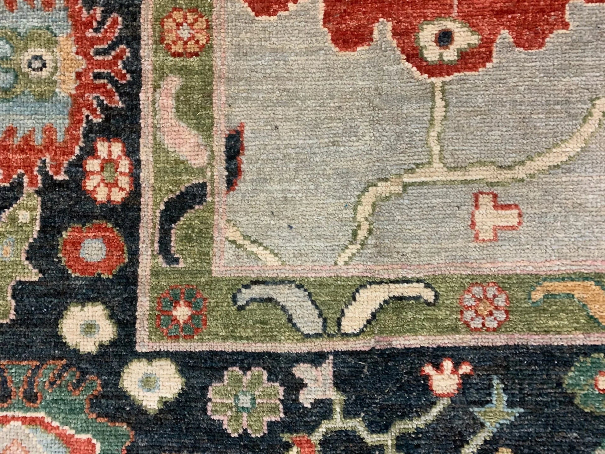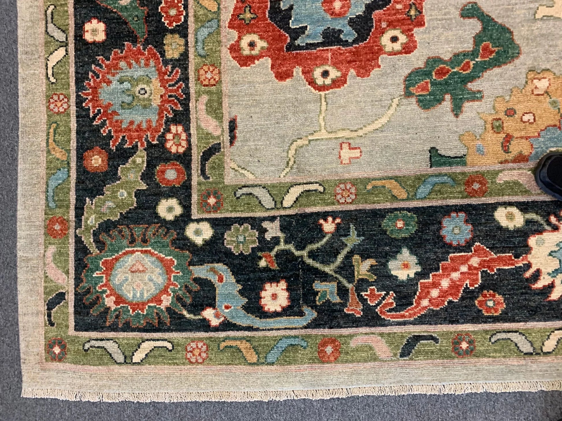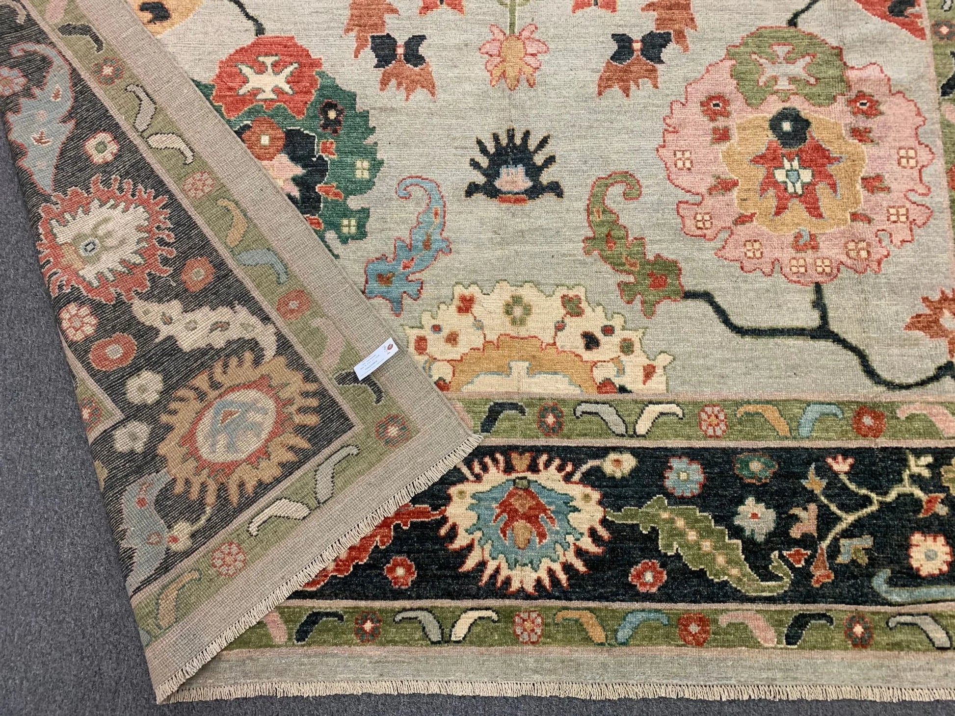 Oushak Soft Blue/Black 9X12 Handmade Wool Rug # 11903
