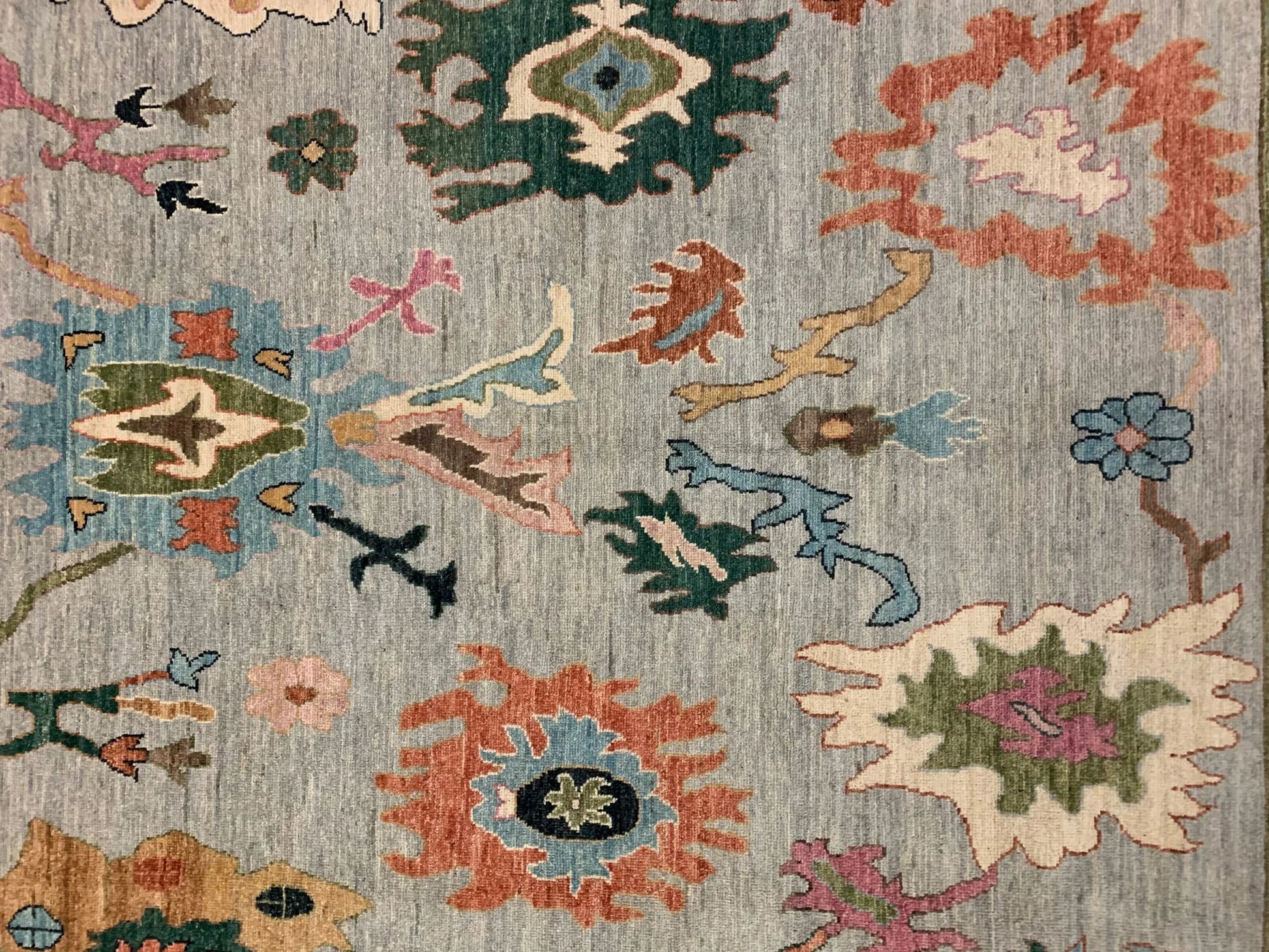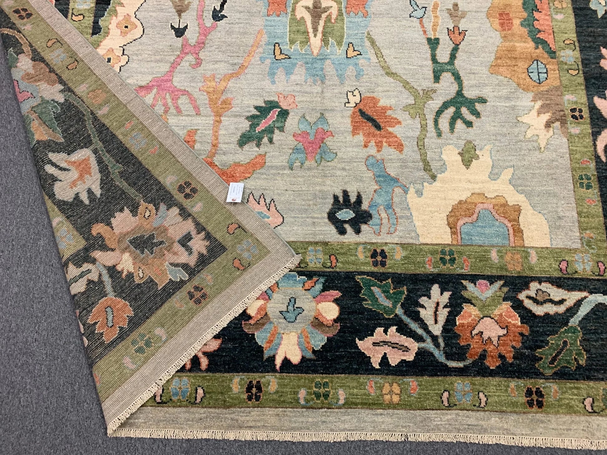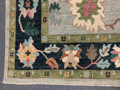 Oushak Soft Blue/Black 9X12 Handmade Wool Rug # 11906