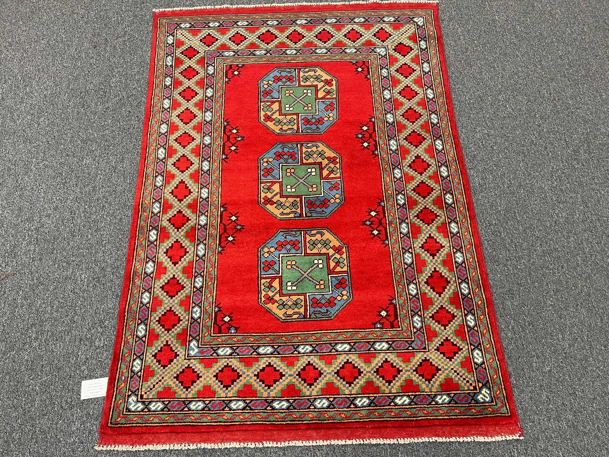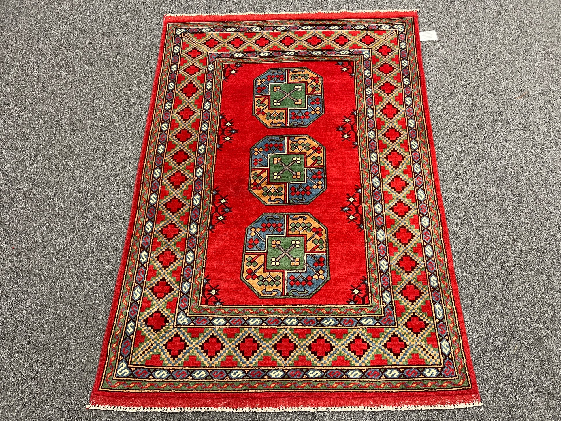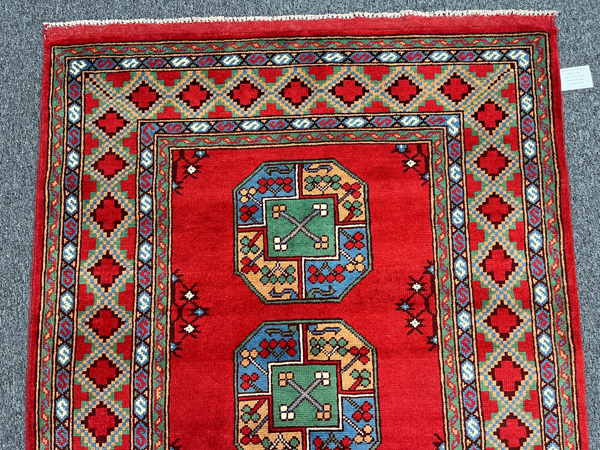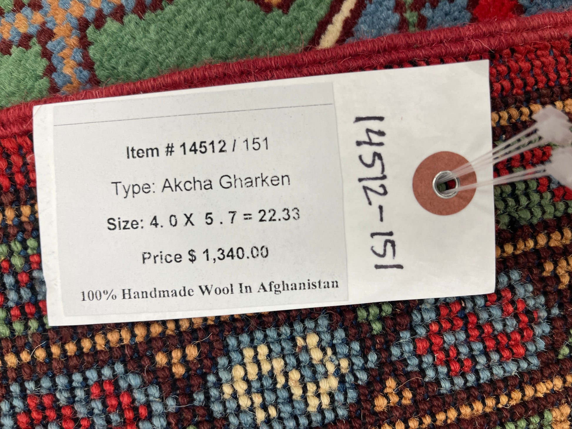 Red 4X6 Tribal Afghan Handmade Wool Rug # 14512