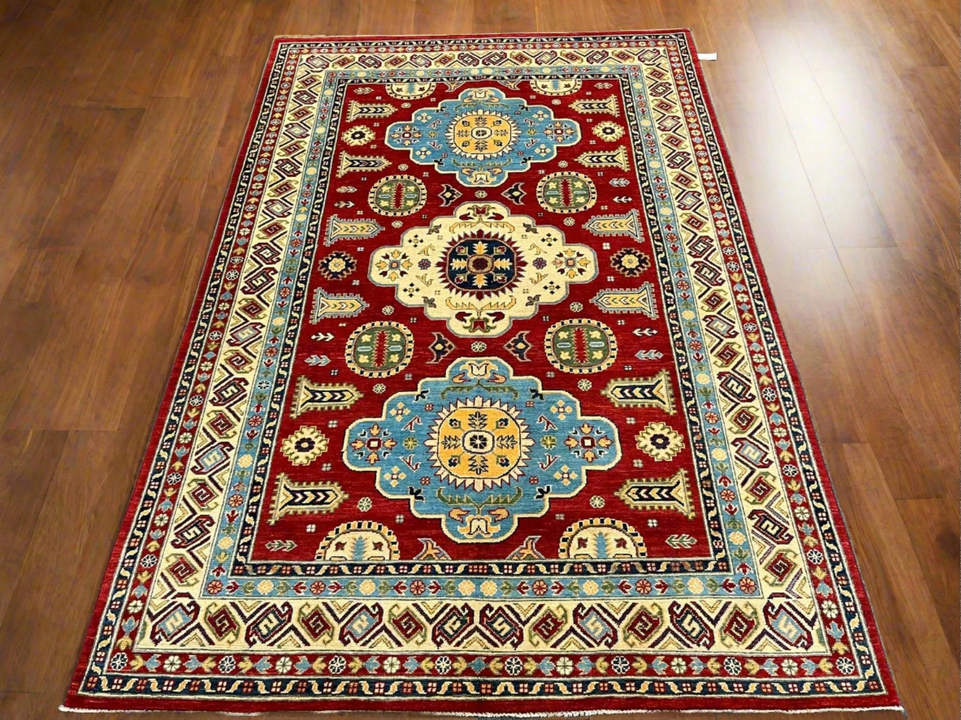 Red/Beige Multicolor Kazak 6X9 Handmade Wool Rug # 12467