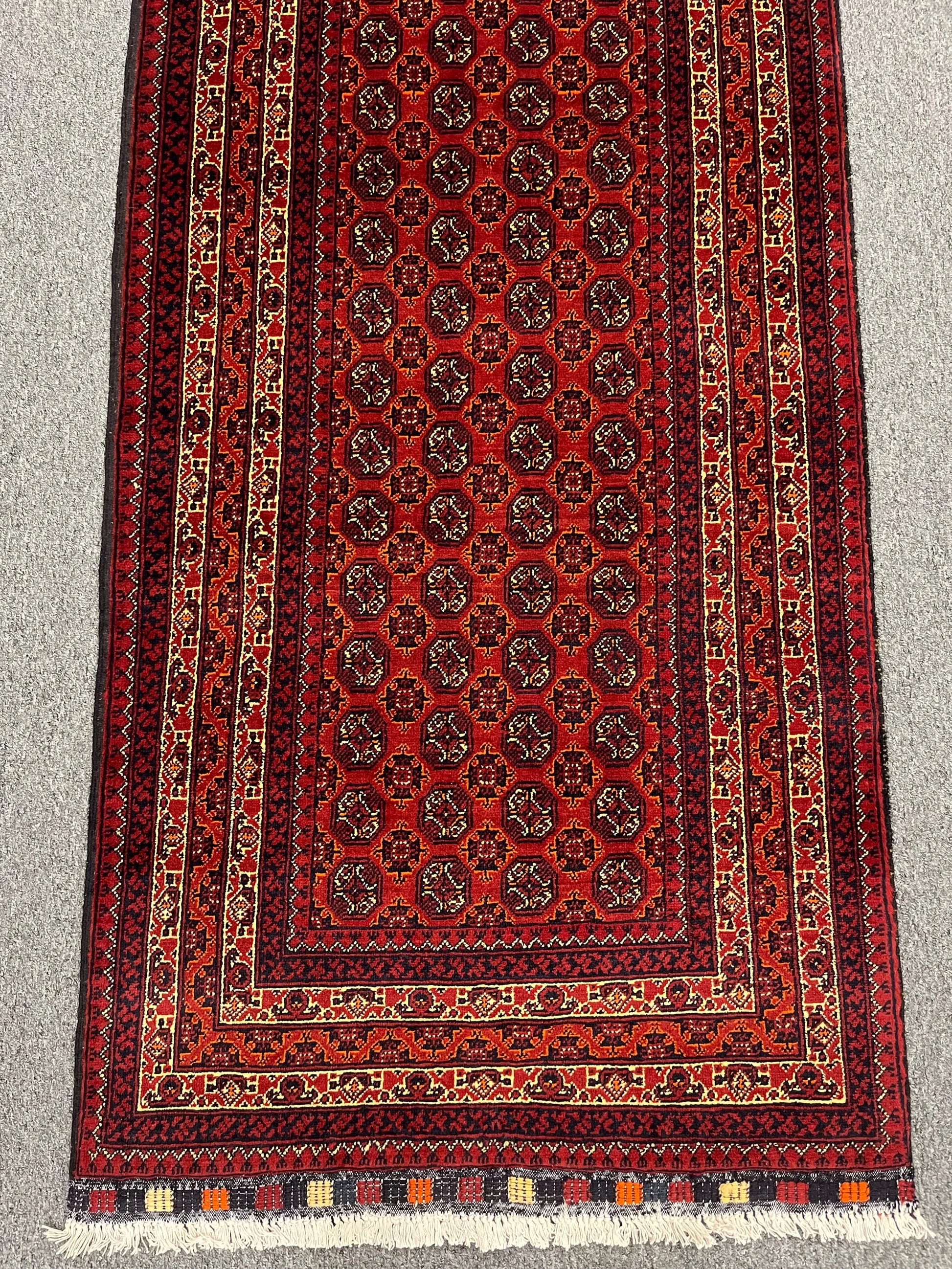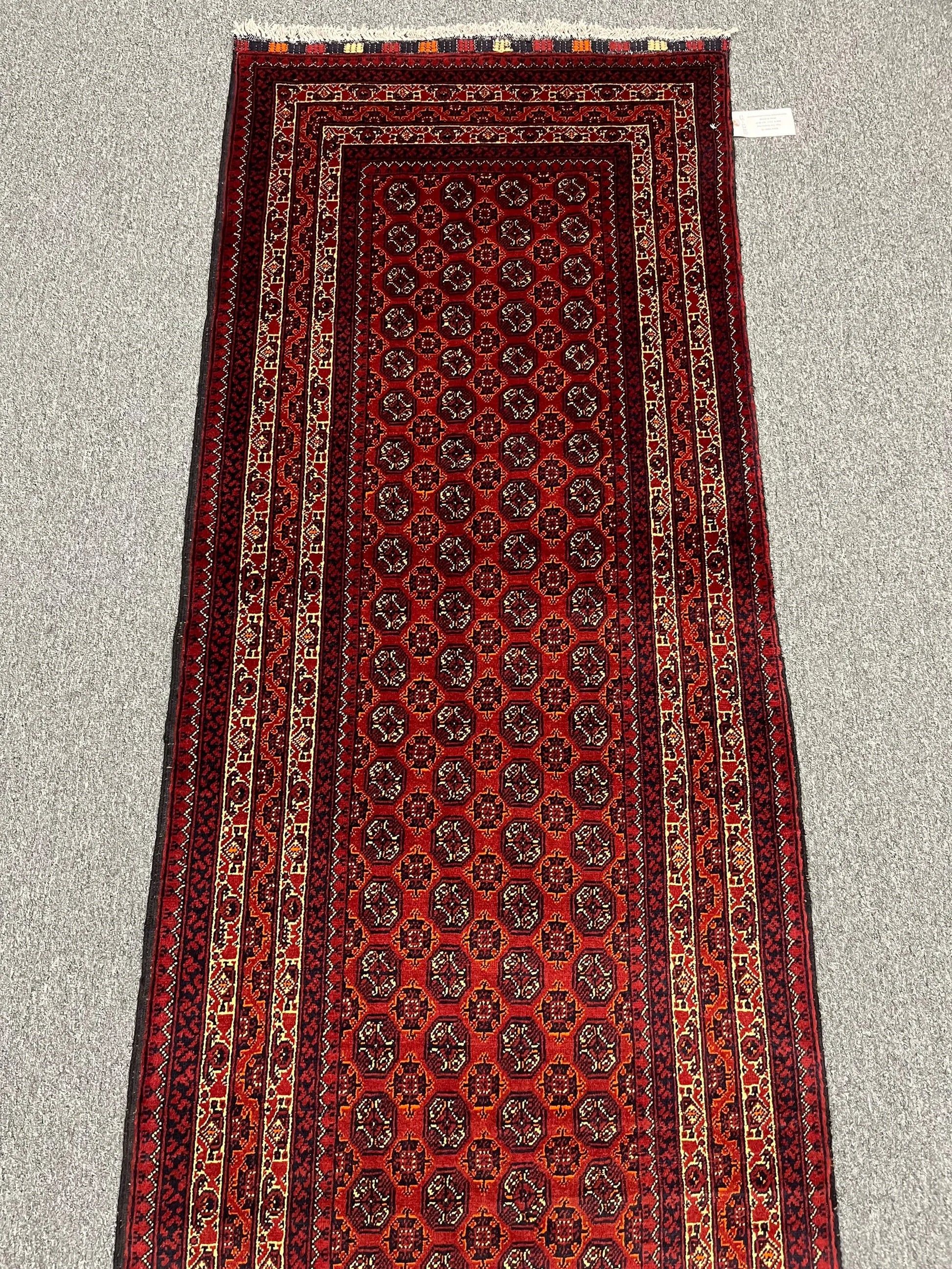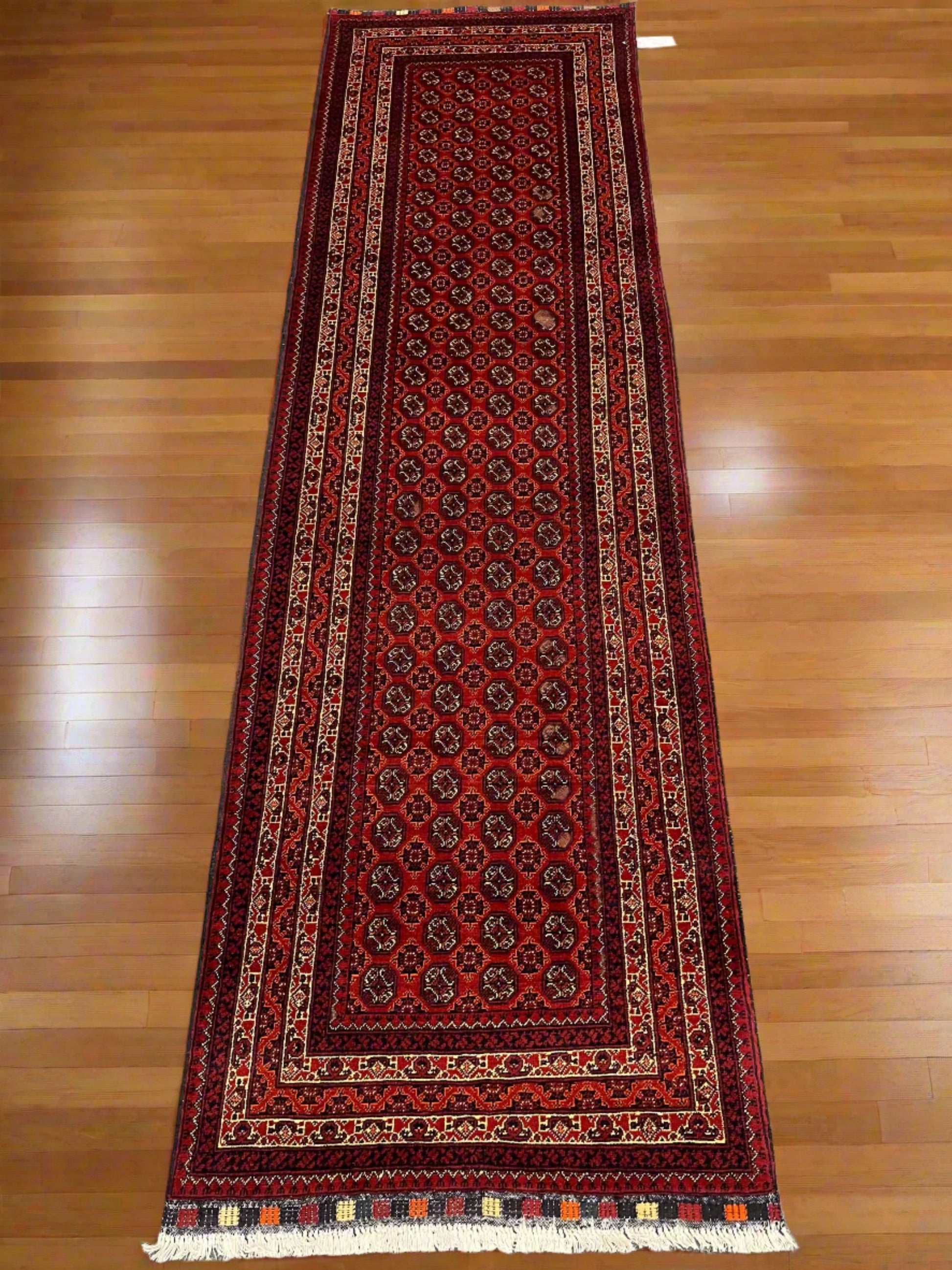 Red Runner 3X9 Tribal Turkmen Handmade Wool Rug # 13483