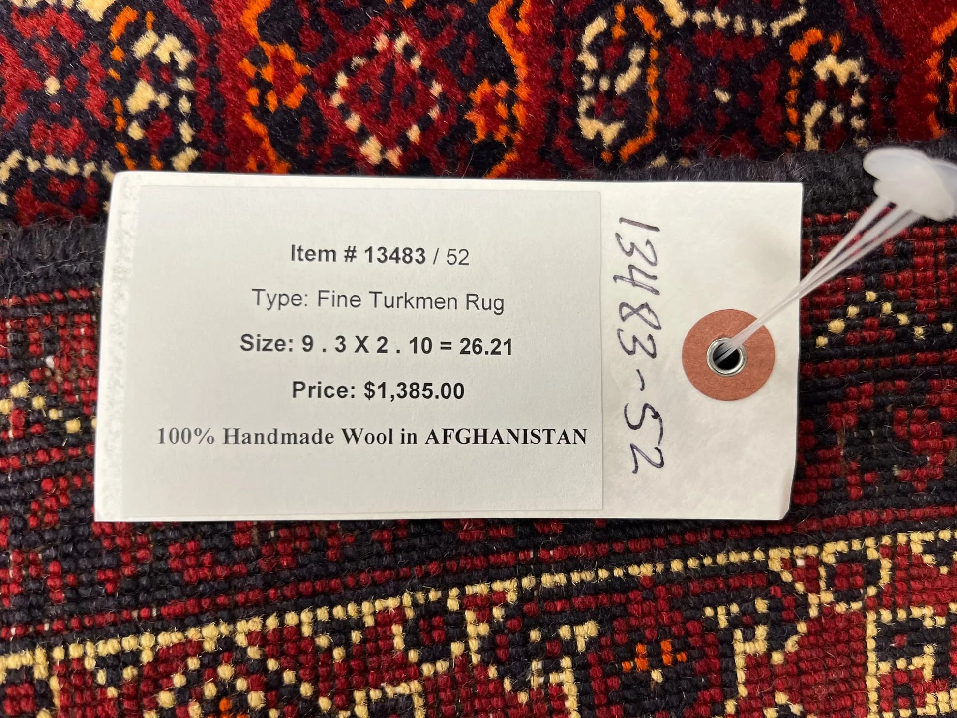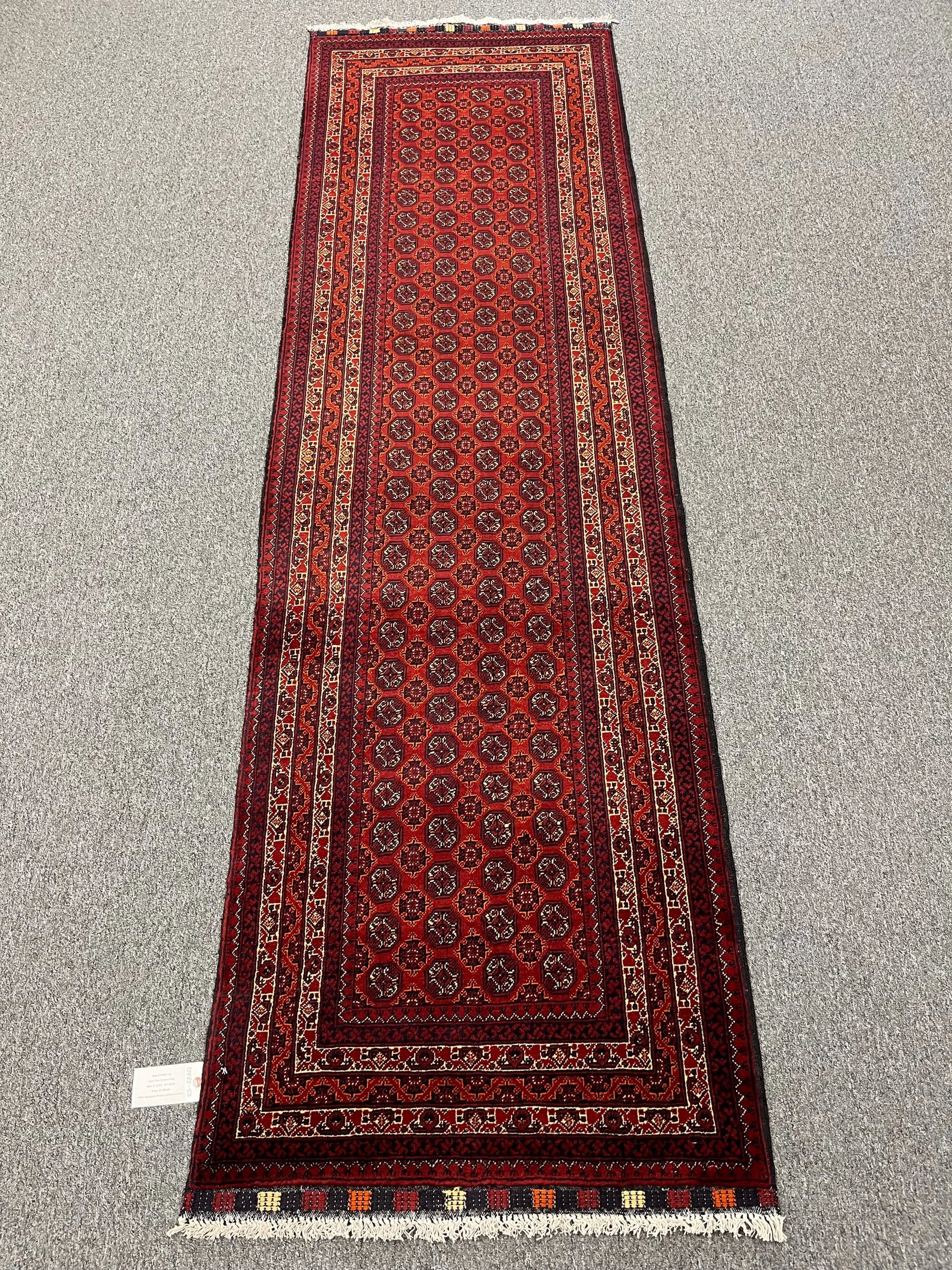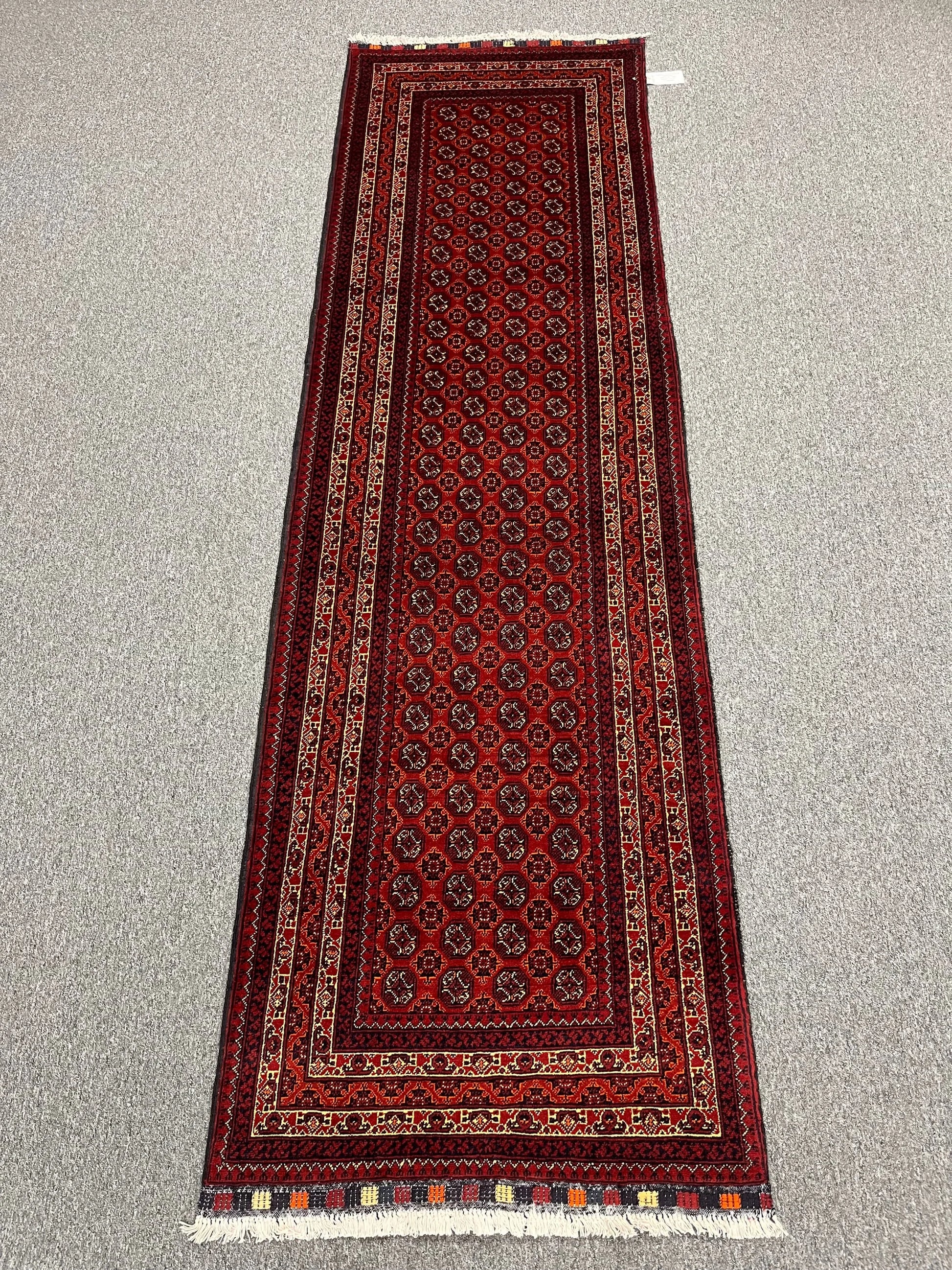 Red Runner 3X9 Tribal Turkmen Handmade Wool Rug # 13483