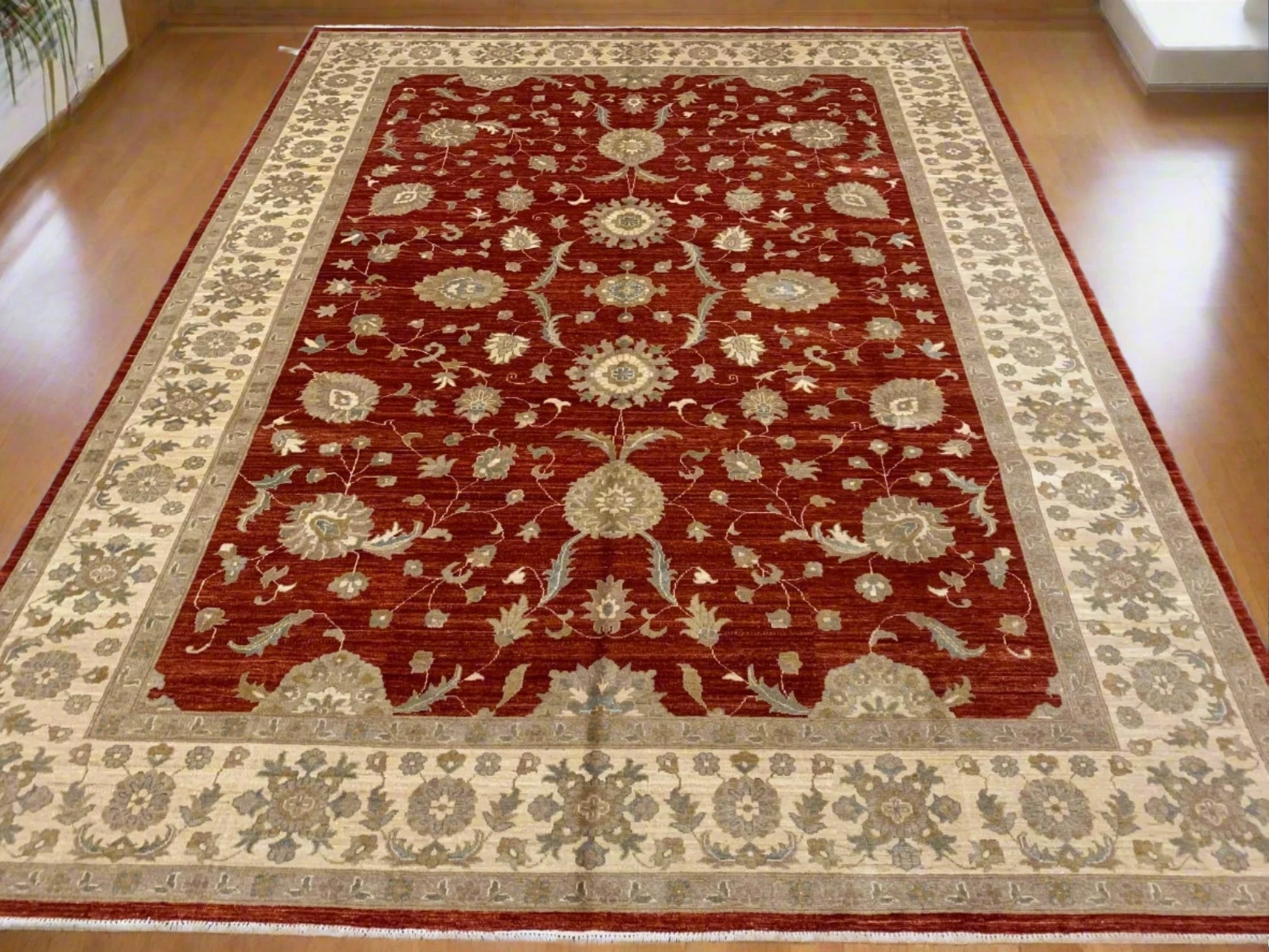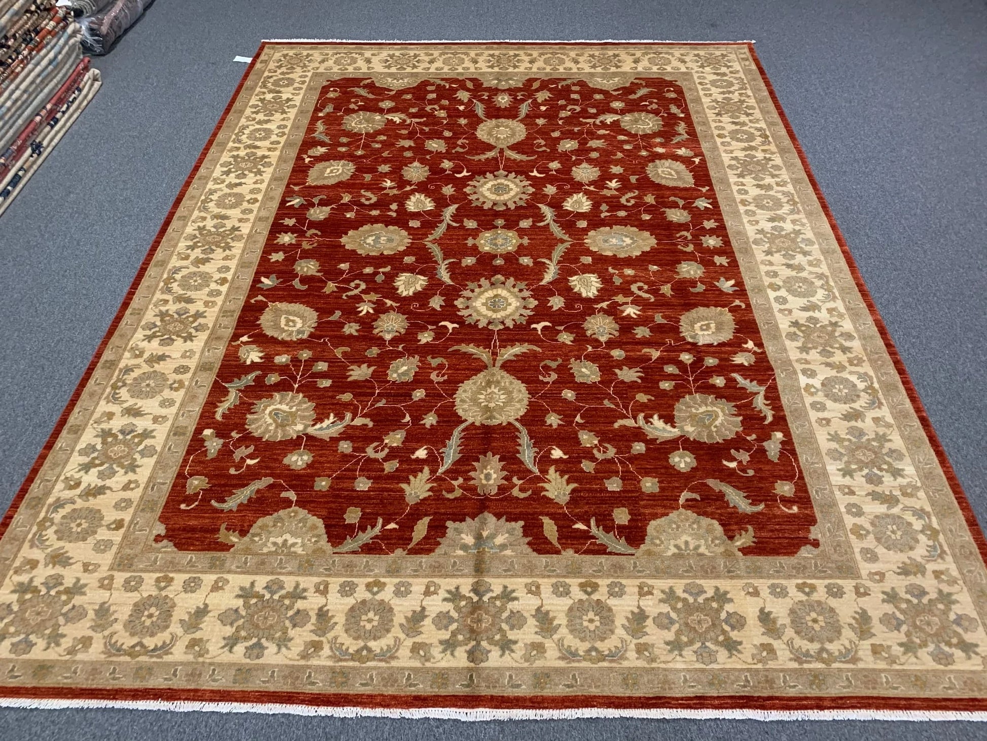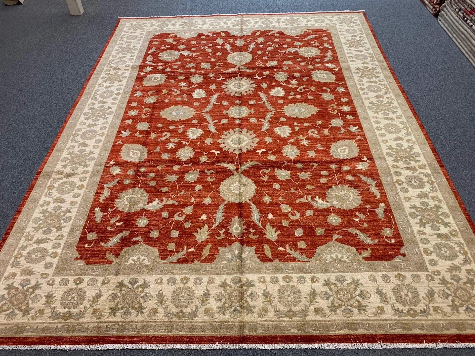 Rest/Ivory Oushak 9X12 Handmade Wool Rug # 7918