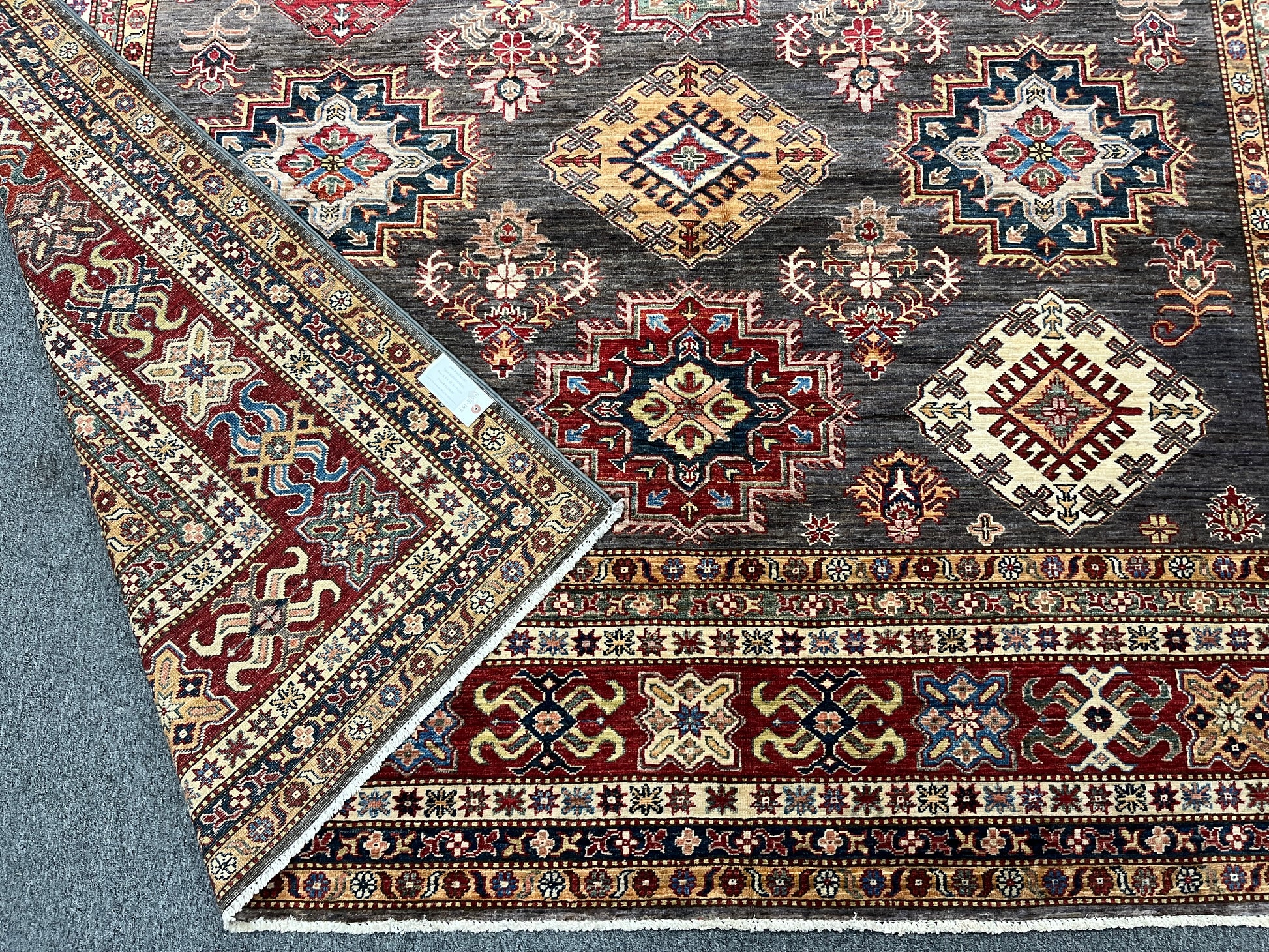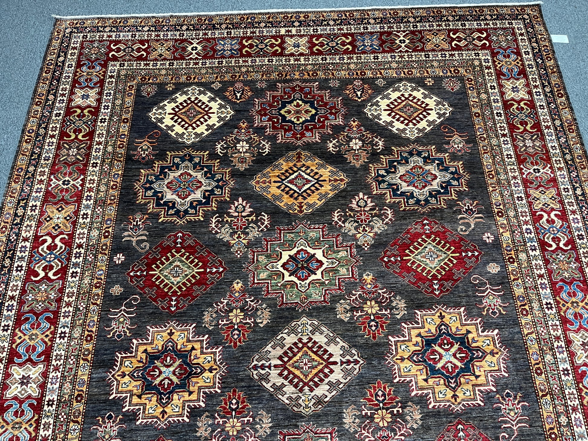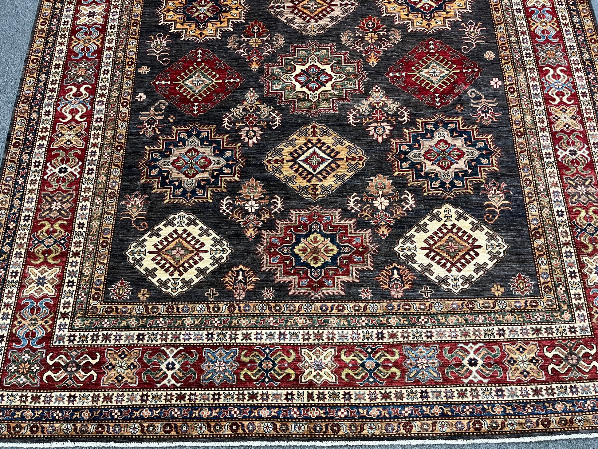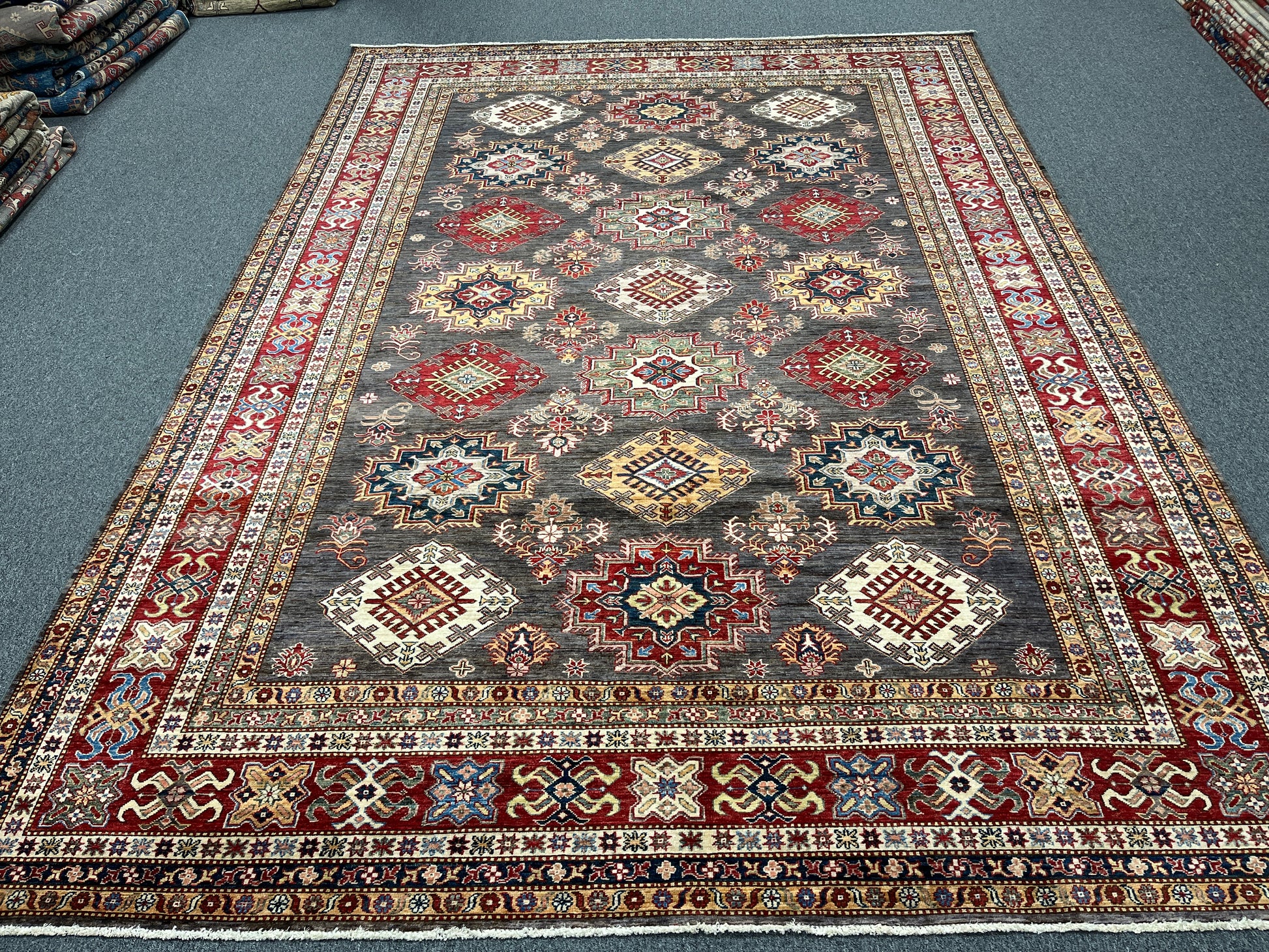 Super Kazak Gray 9X12 Handmade Wool Rug # 14518