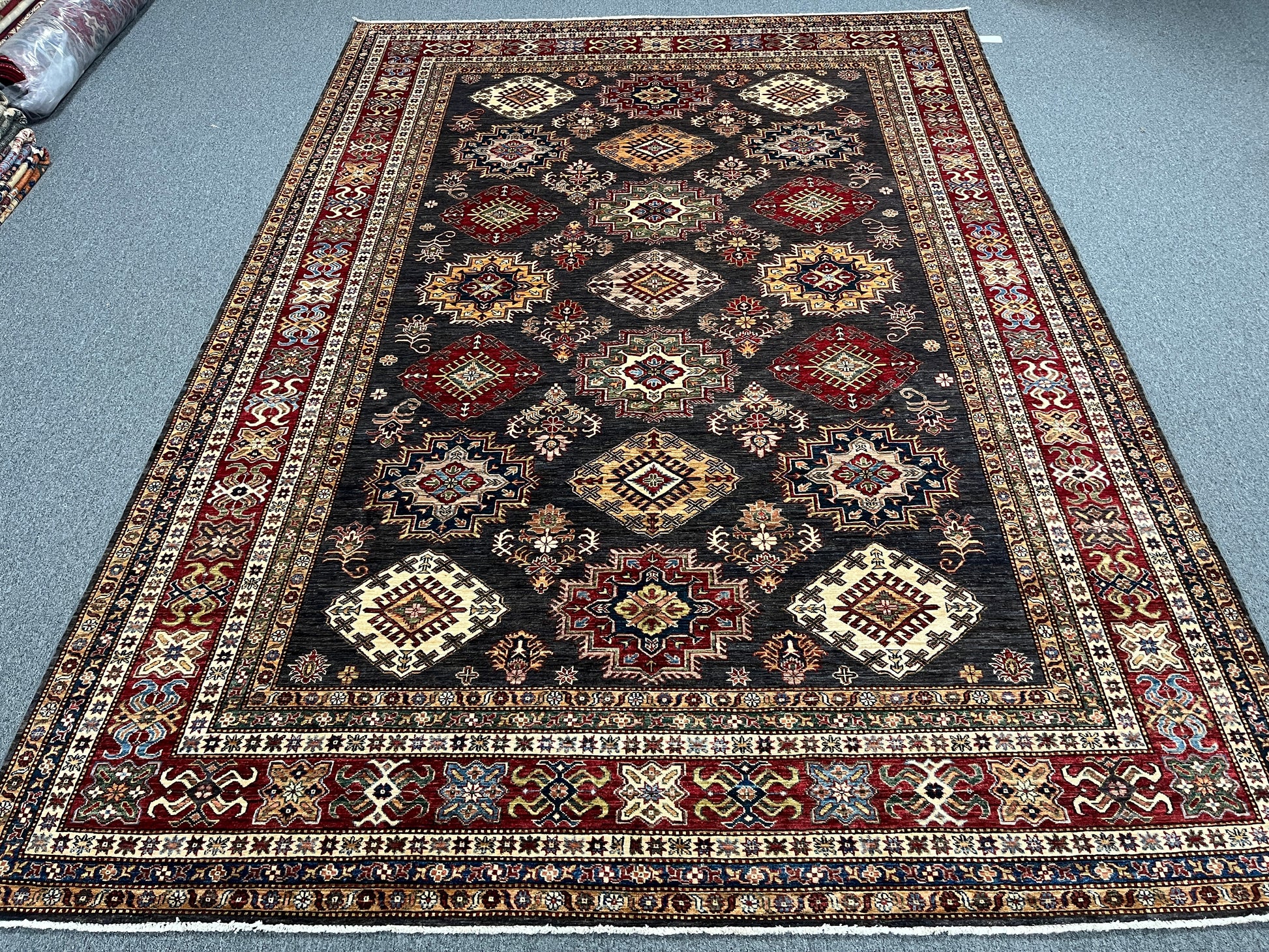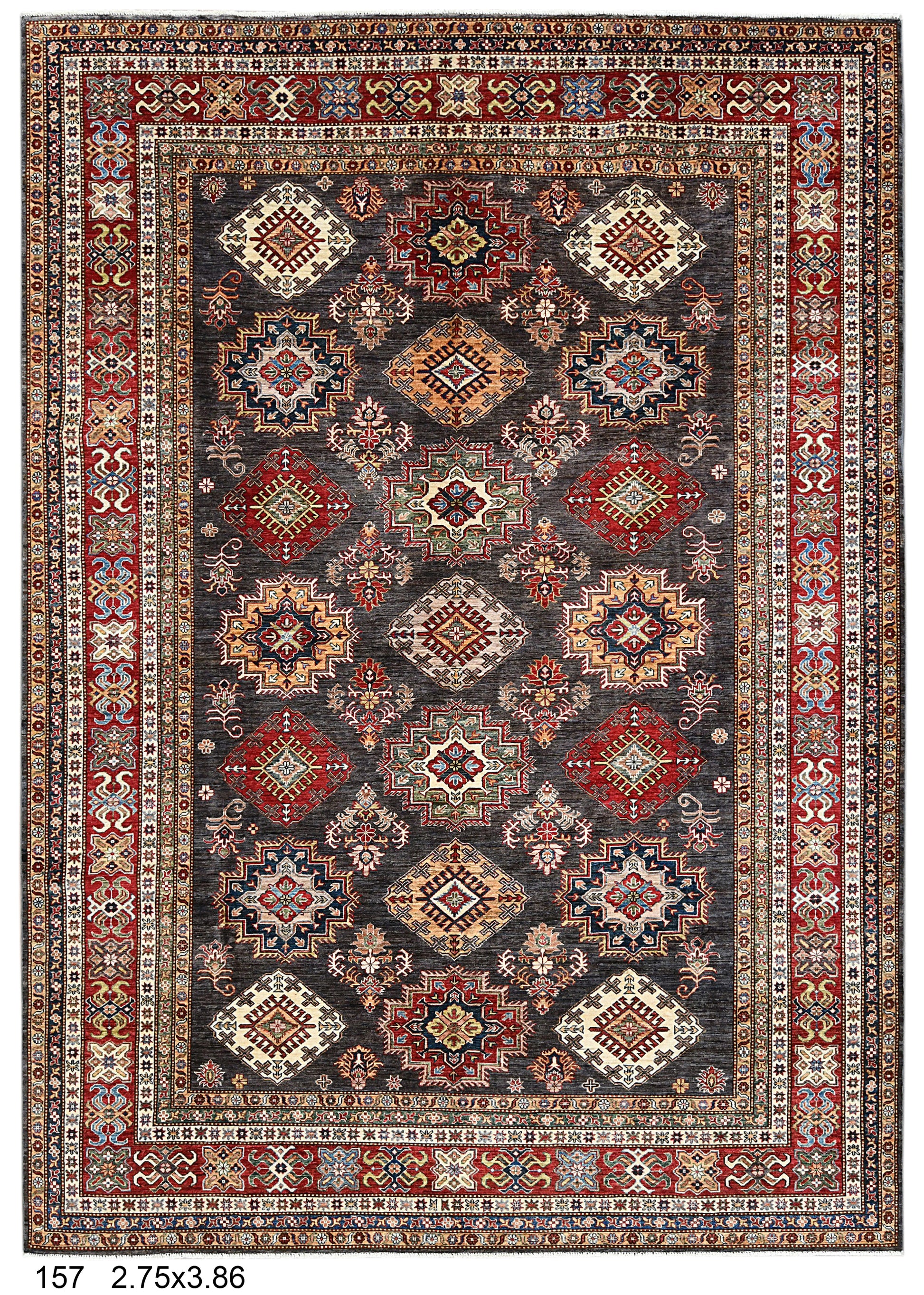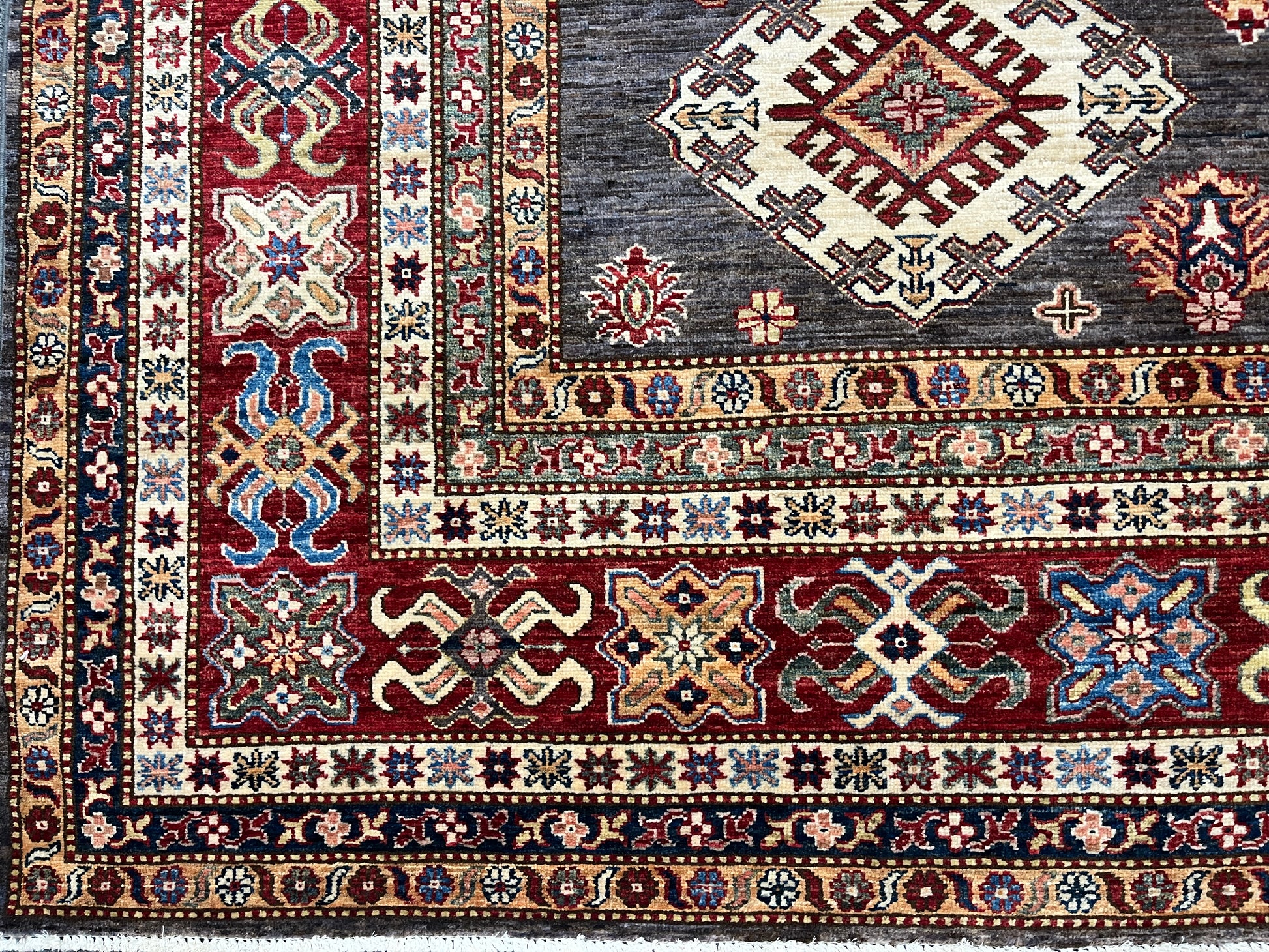 Super Kazak Gray 9X12 Handmade Wool Rug # 14518
