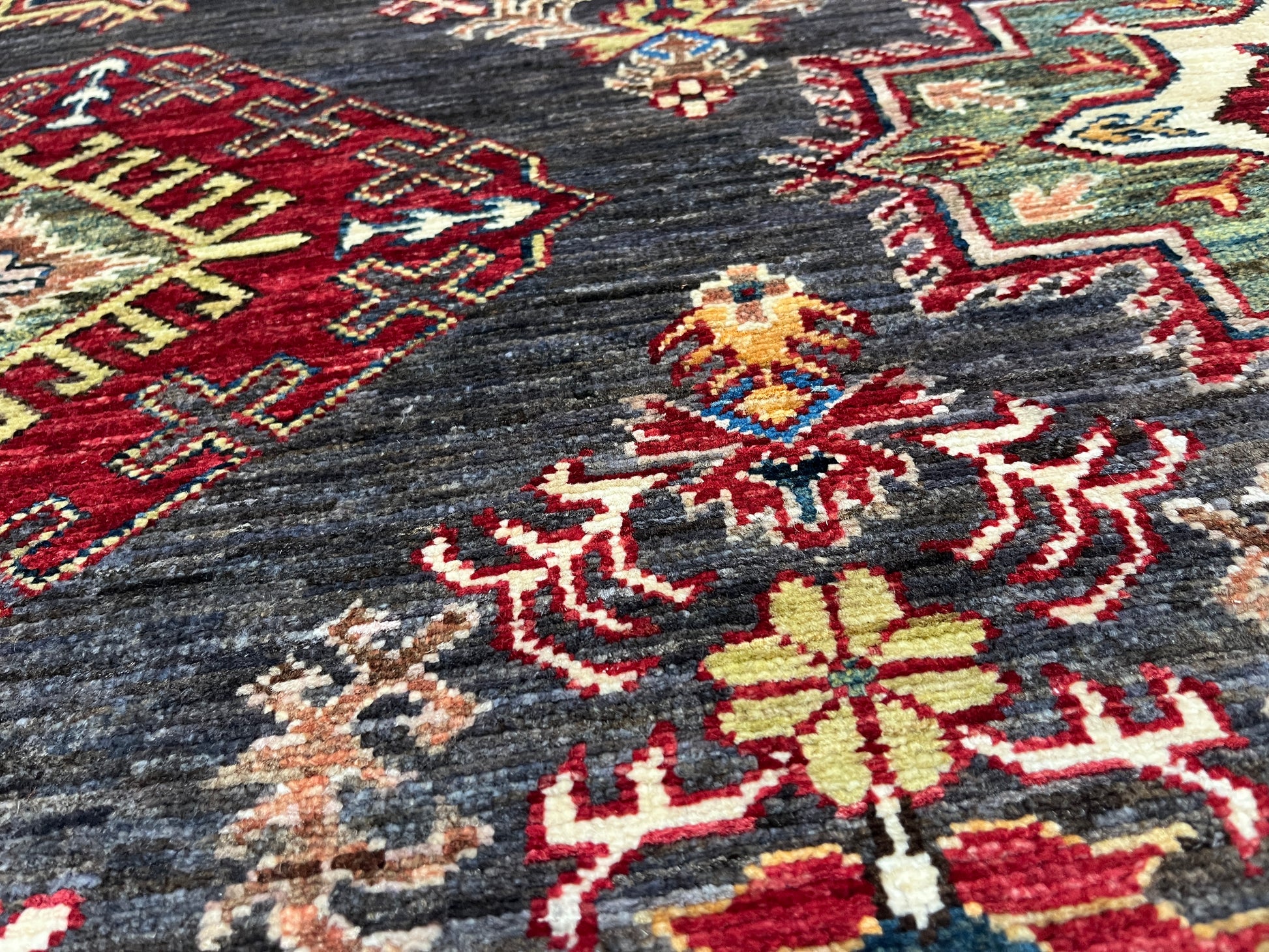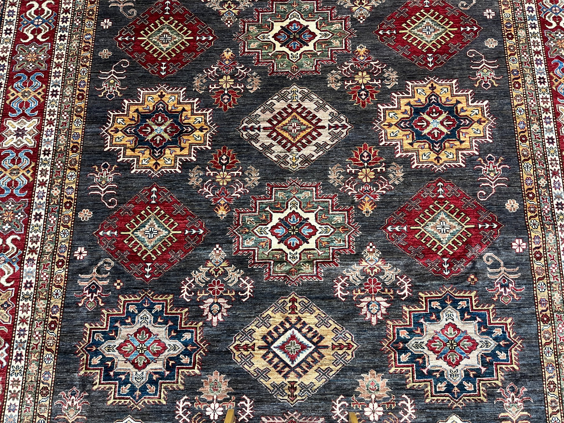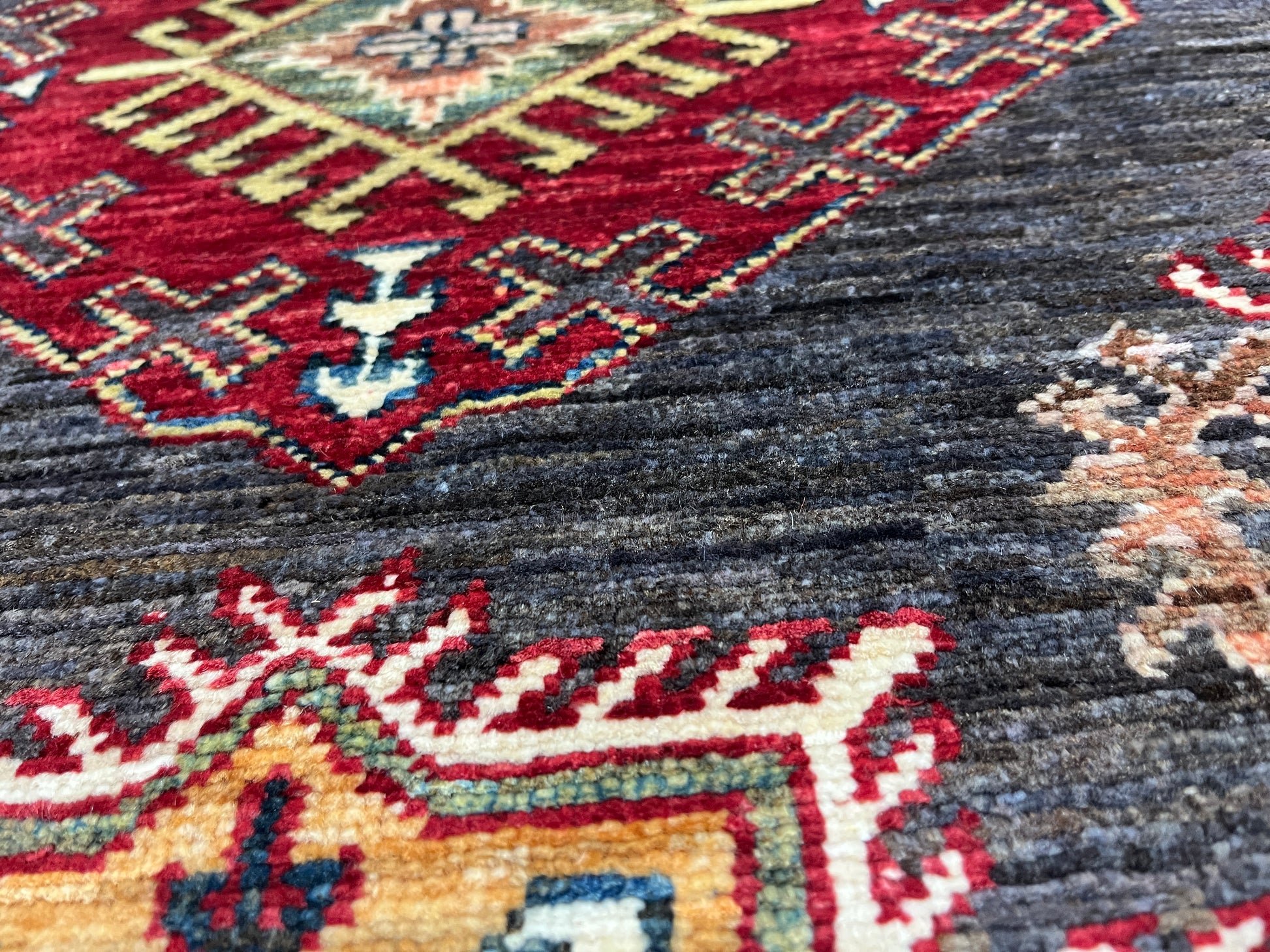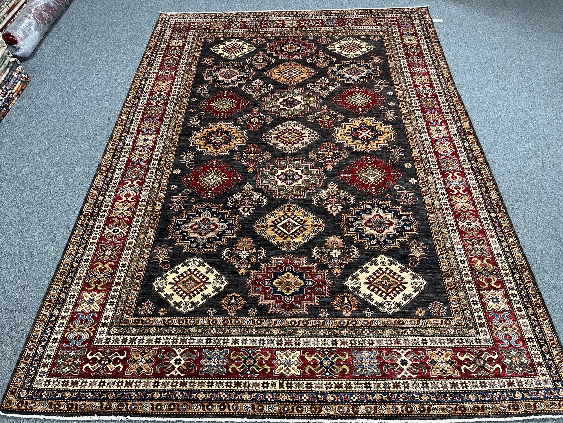 Super Kazak Gray 9X12 Handmade Wool Rug # 14518